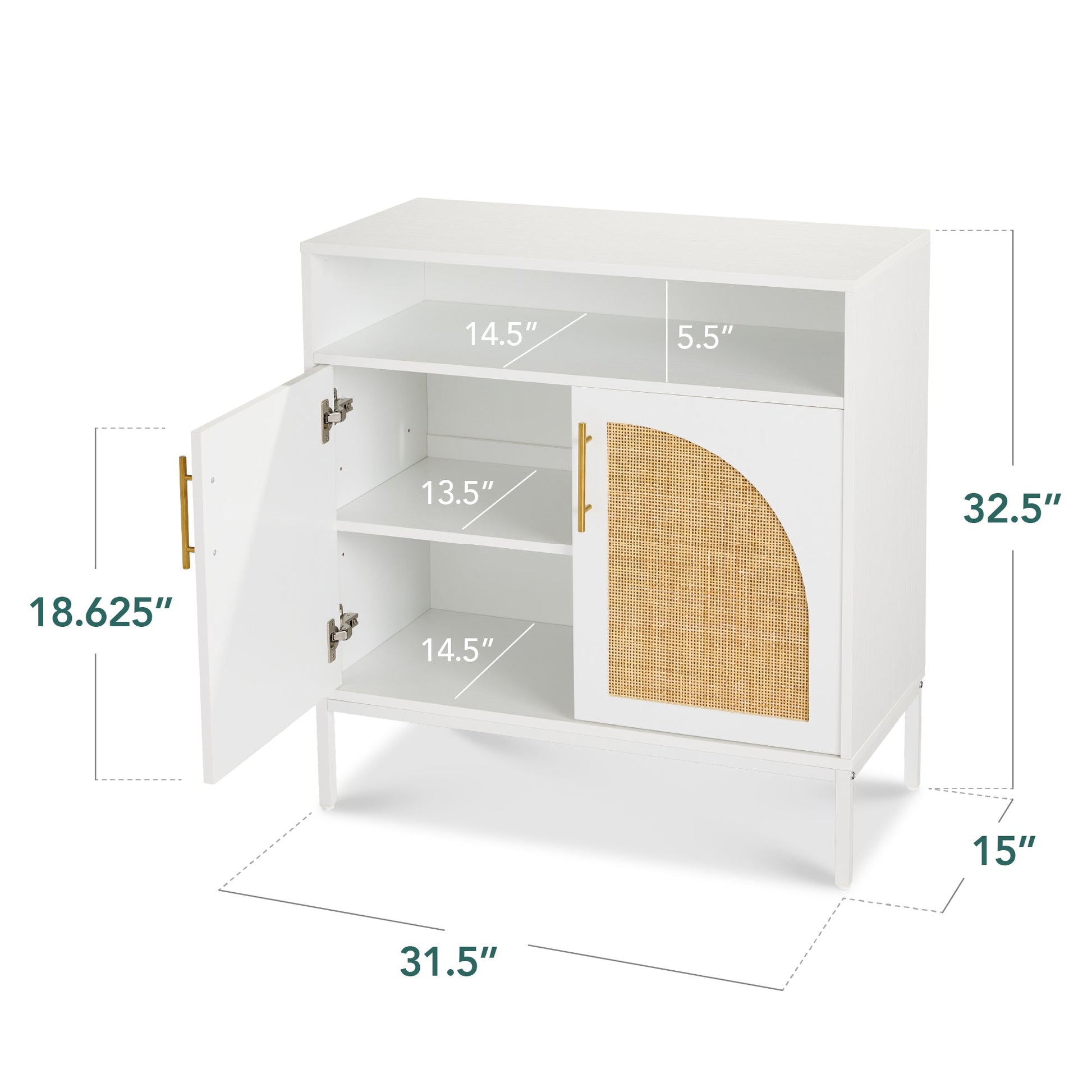 • QUALITY CONSTRUCTION: Crafted from engineered wood with metal legs and natural rattan doors-soft-close hinges and metal handles add both elegance and functionality