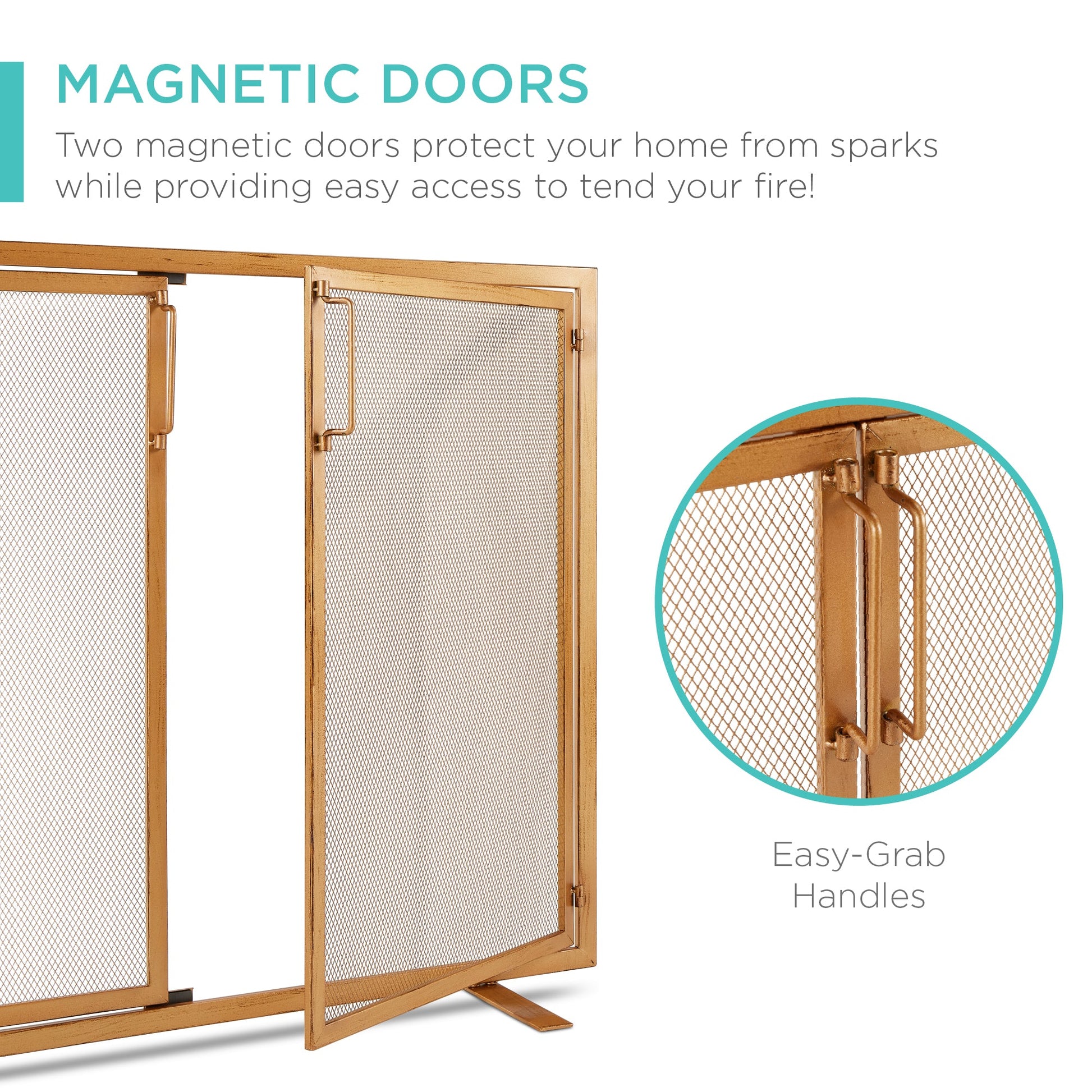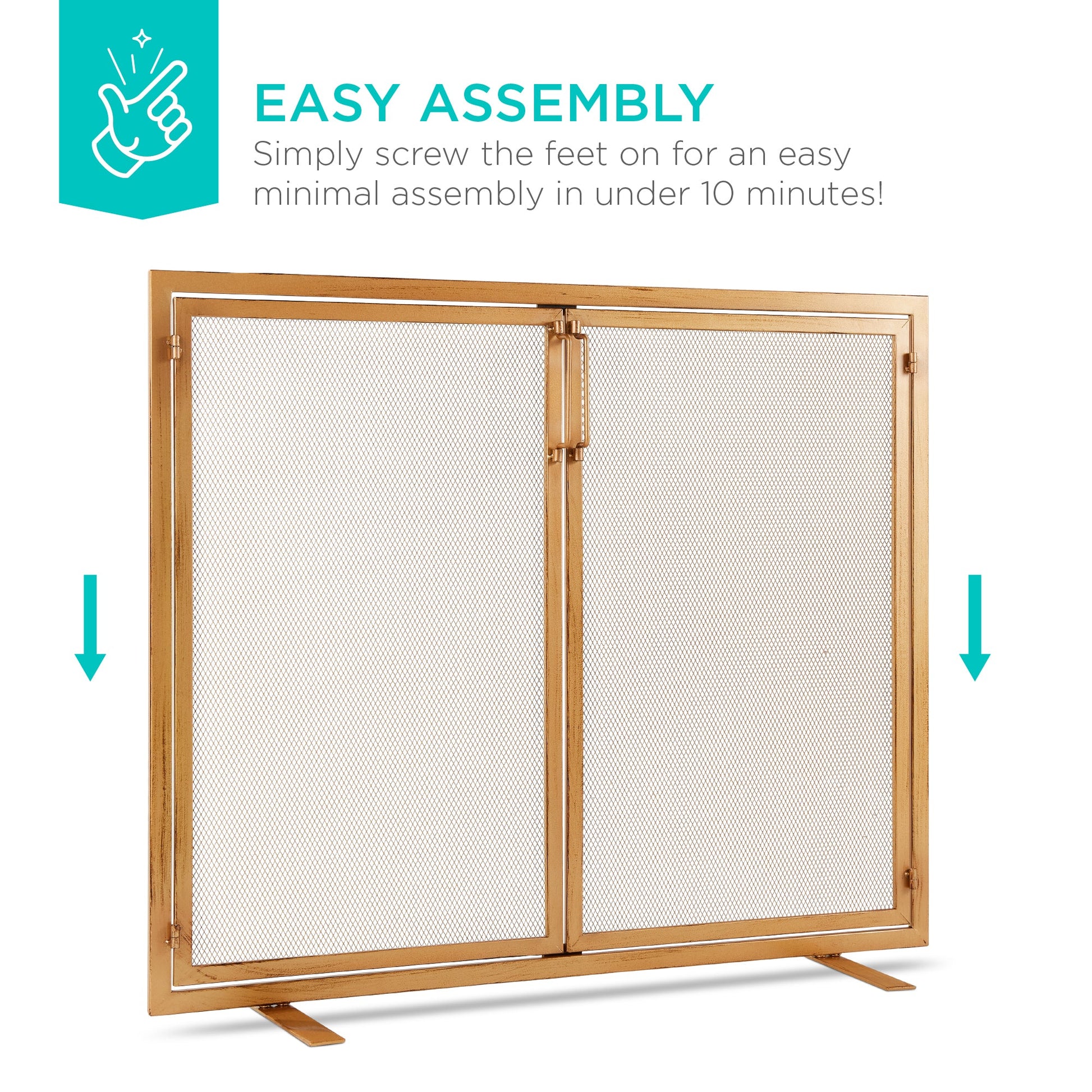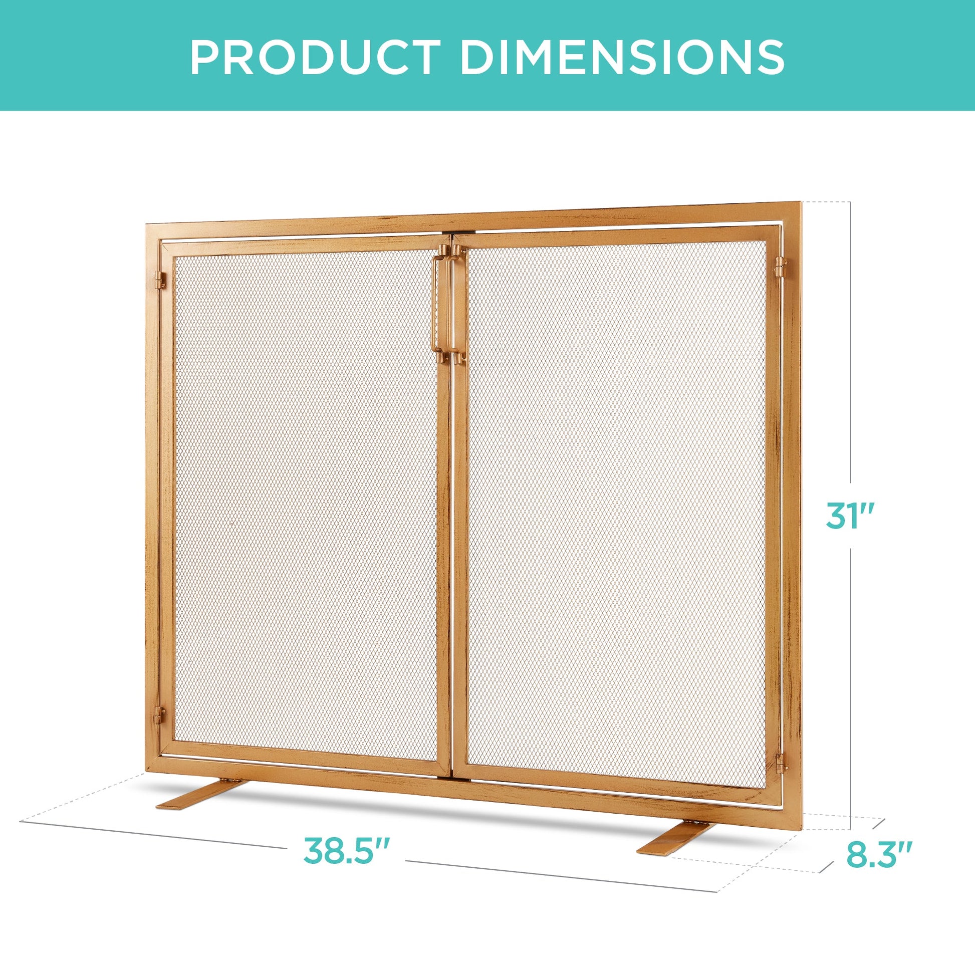 2-Door Wrought Iron Fireplace Screen w/ Magnetic Doors - 38.5x41in