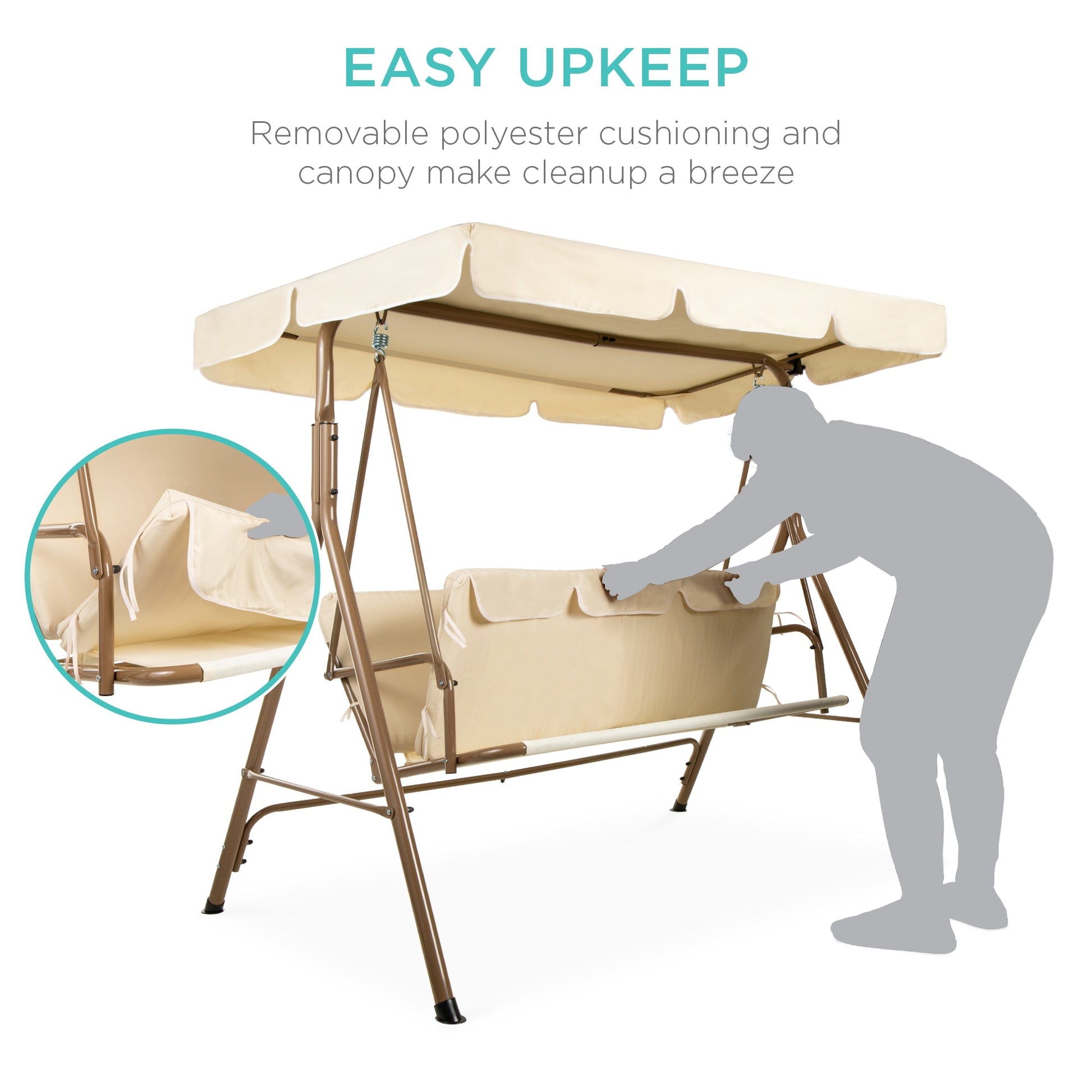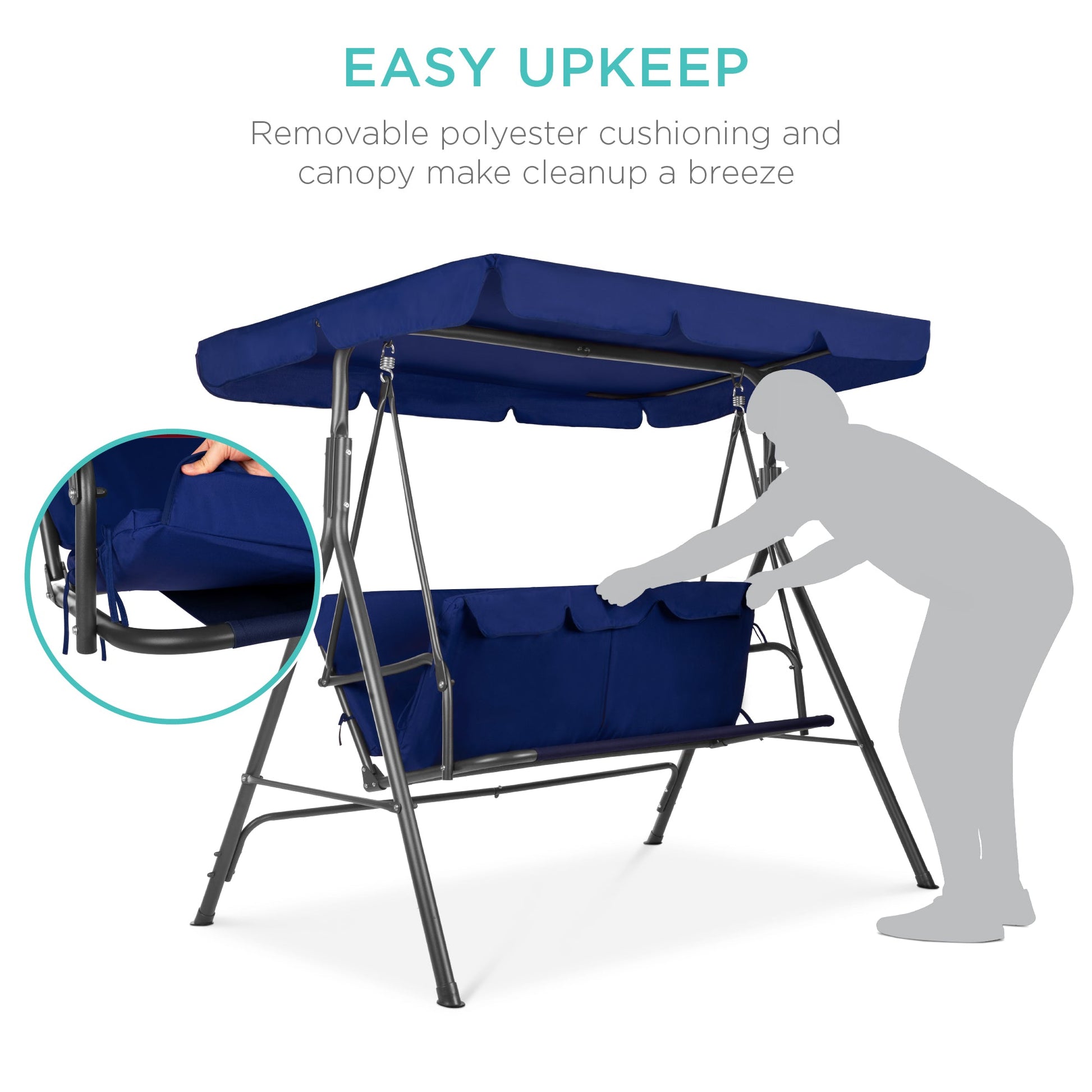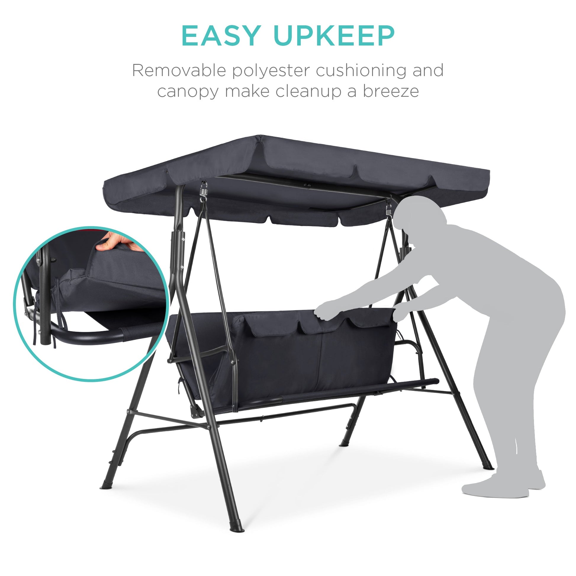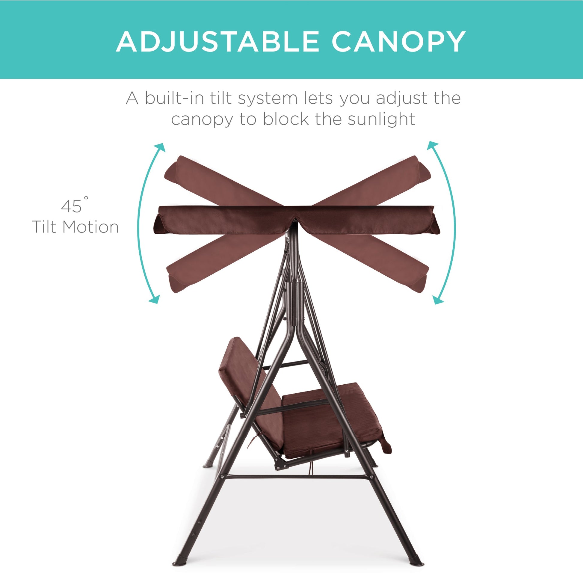 2-Person Outdoor Canopy Swing Glider Furniture w/ Cushions, Steel Frame