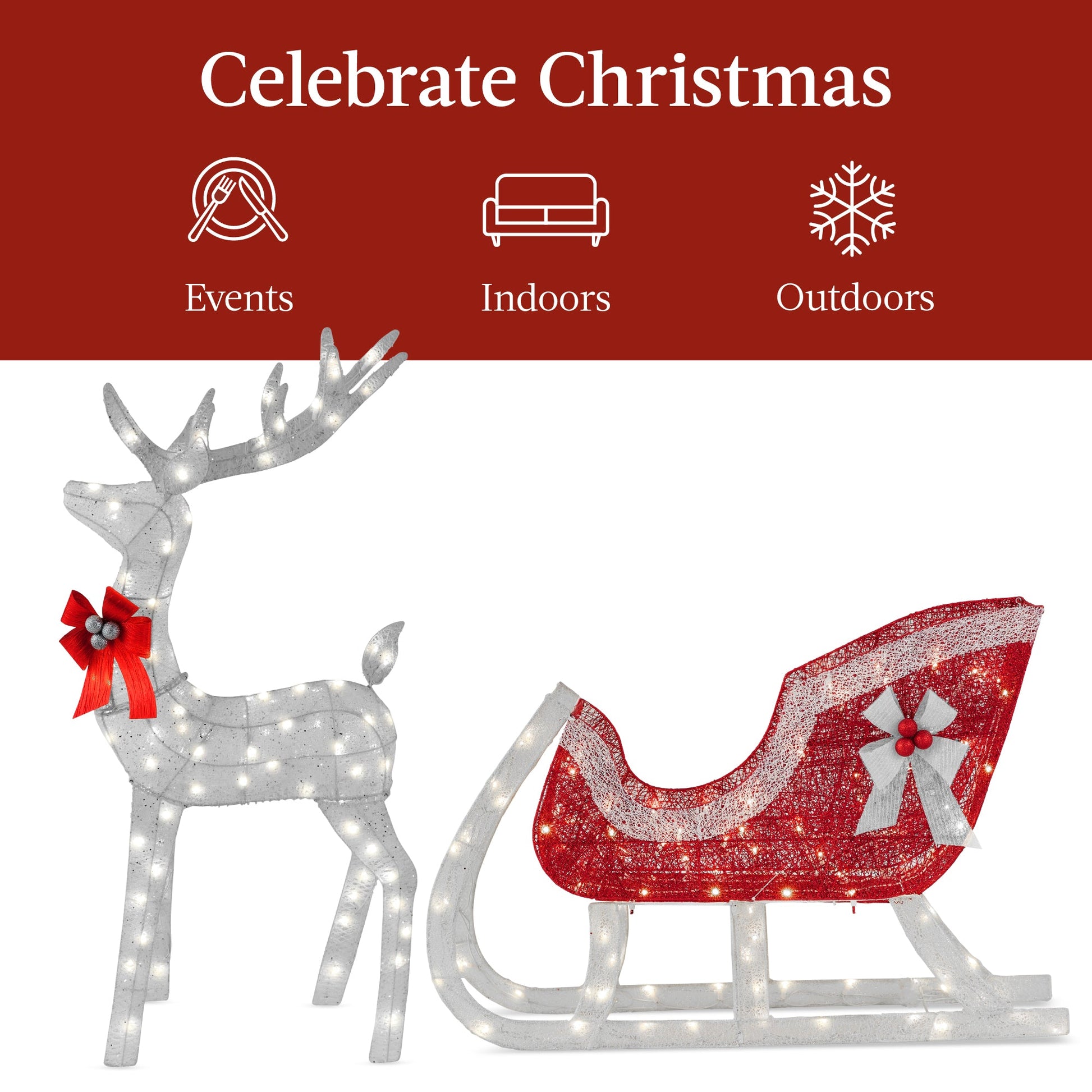 Lighted Christmas Reindeer & Sleigh Outdoor Decor Set w/ LED Lights