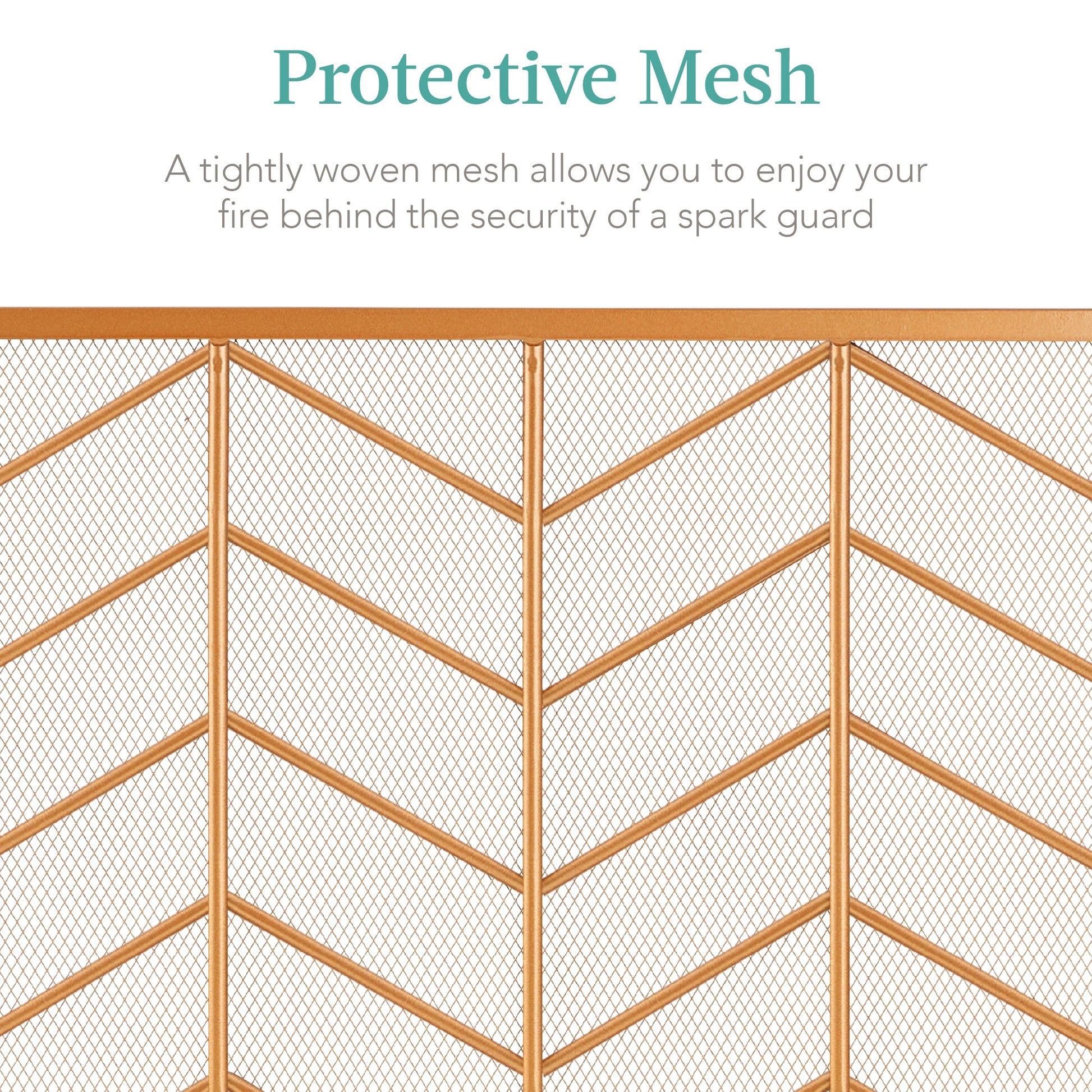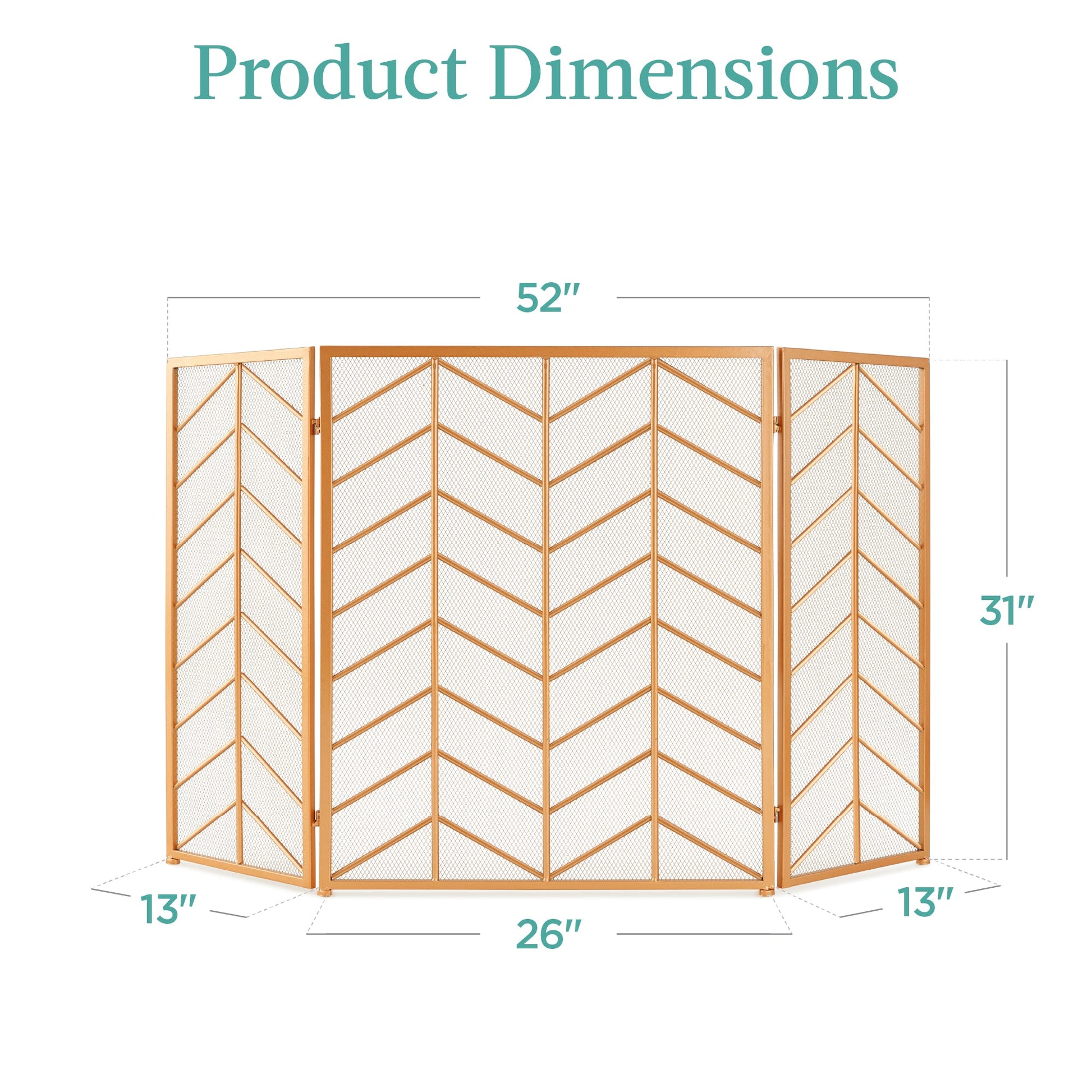 3-Panel Iron Chevron Fireplace Screen w/ Handles - 52x31in