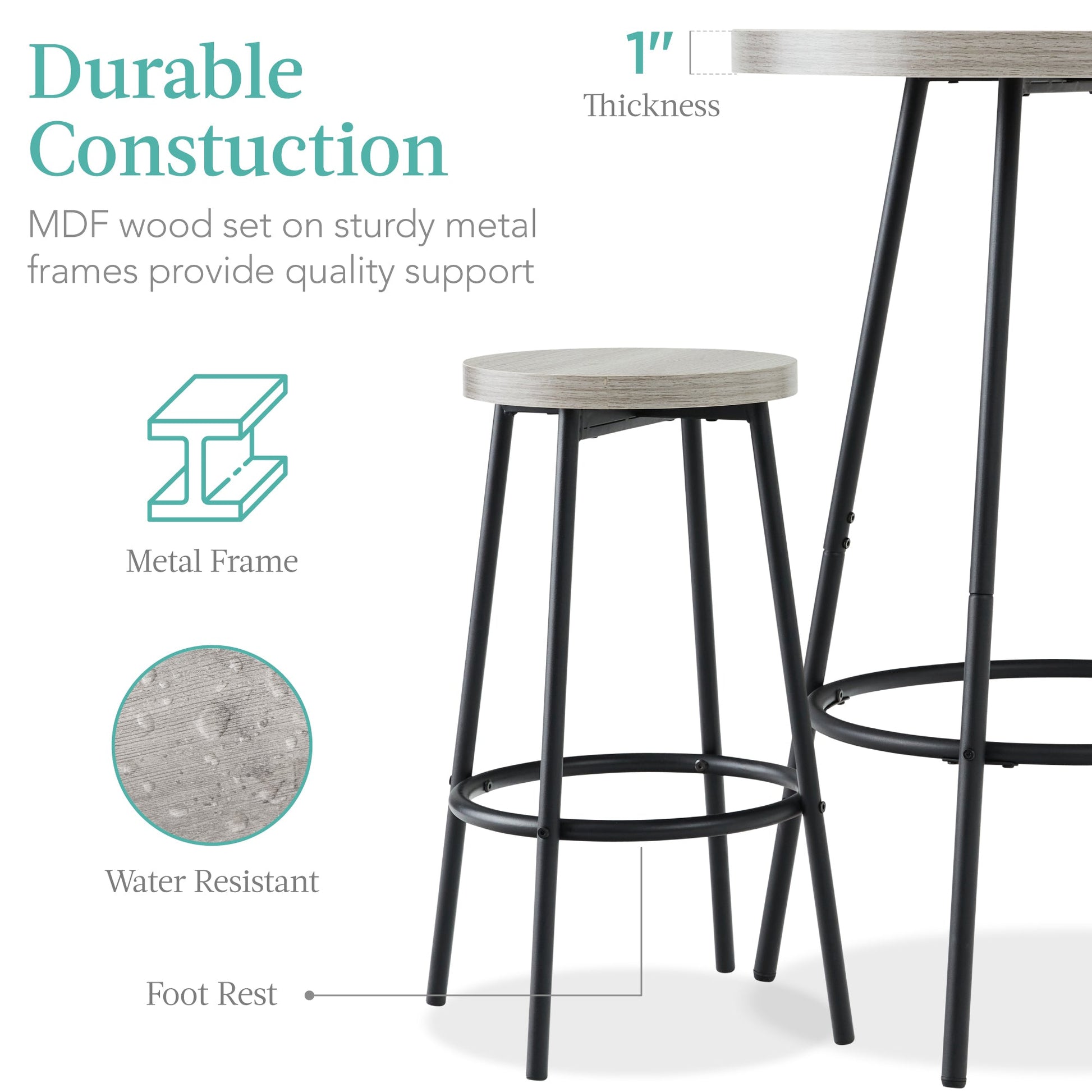 3-Piece Bistro Set Modern Round Counter Height Dining Set w/ 2 Stools
