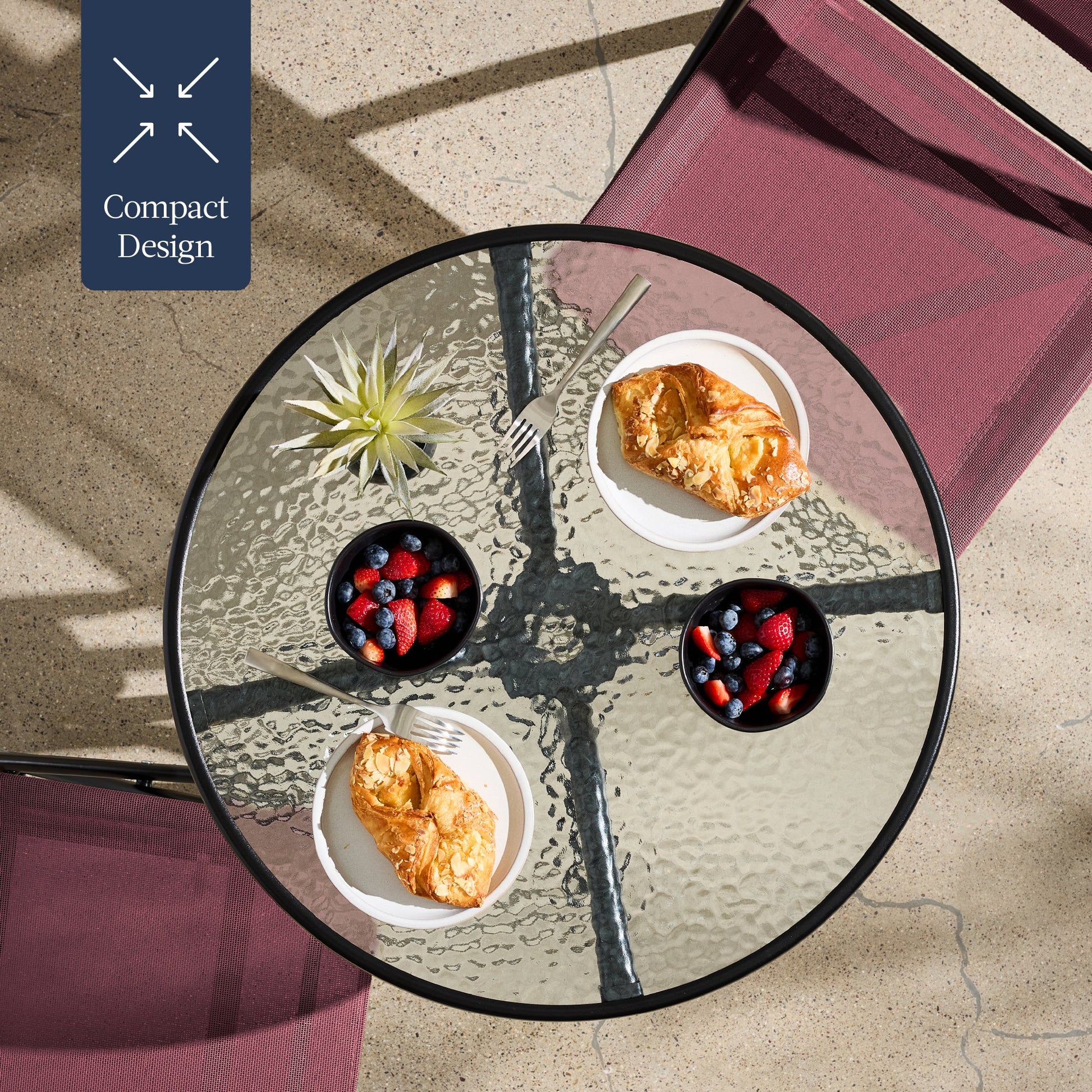 3-Piece Bistro Set w/ Glass Table, 2 Foldable Chairs
