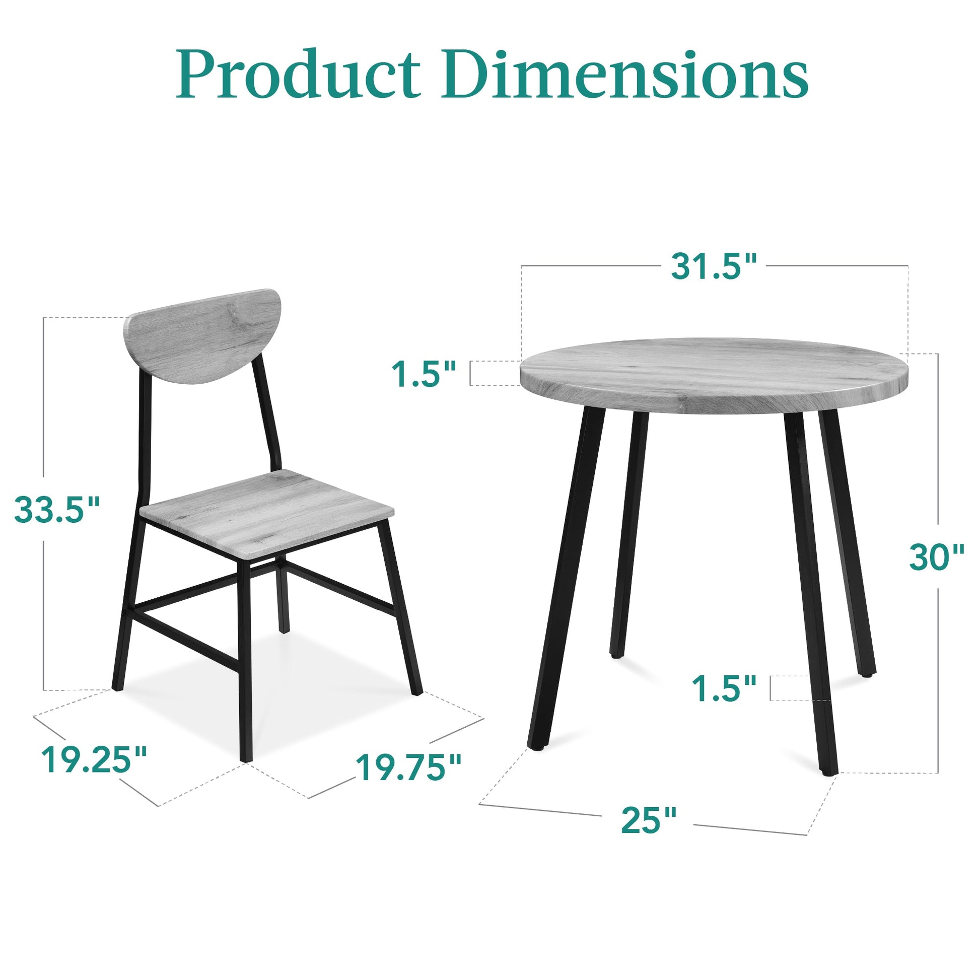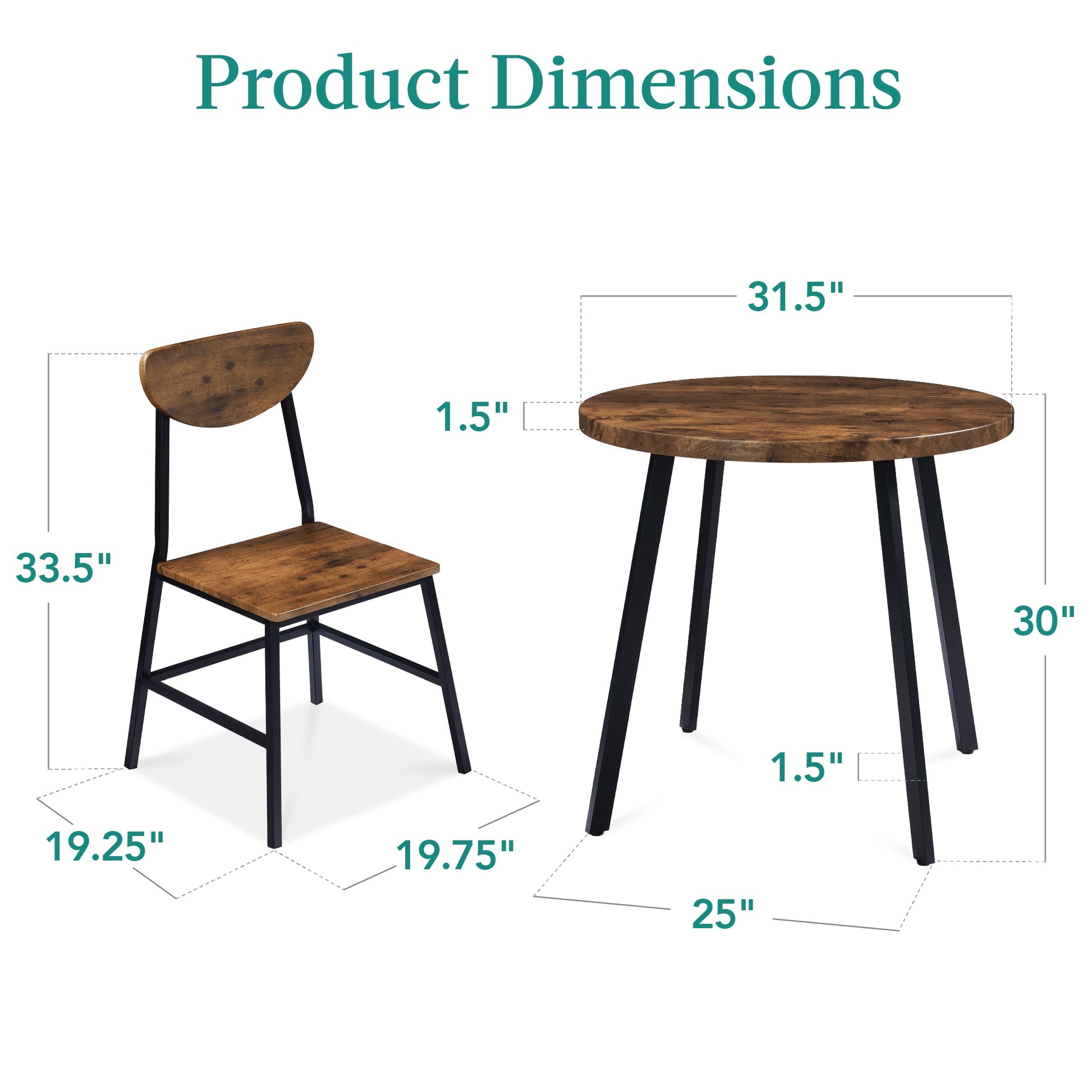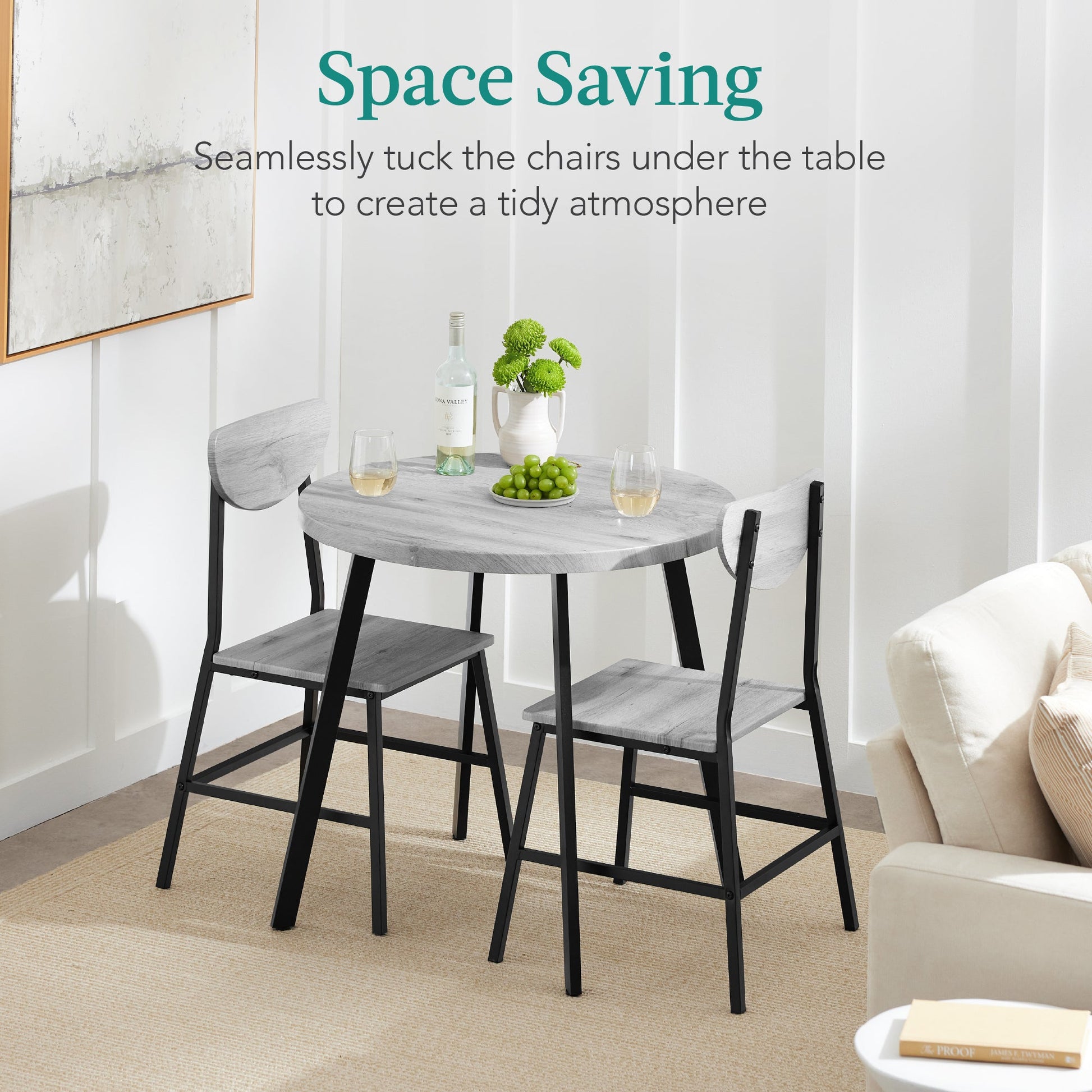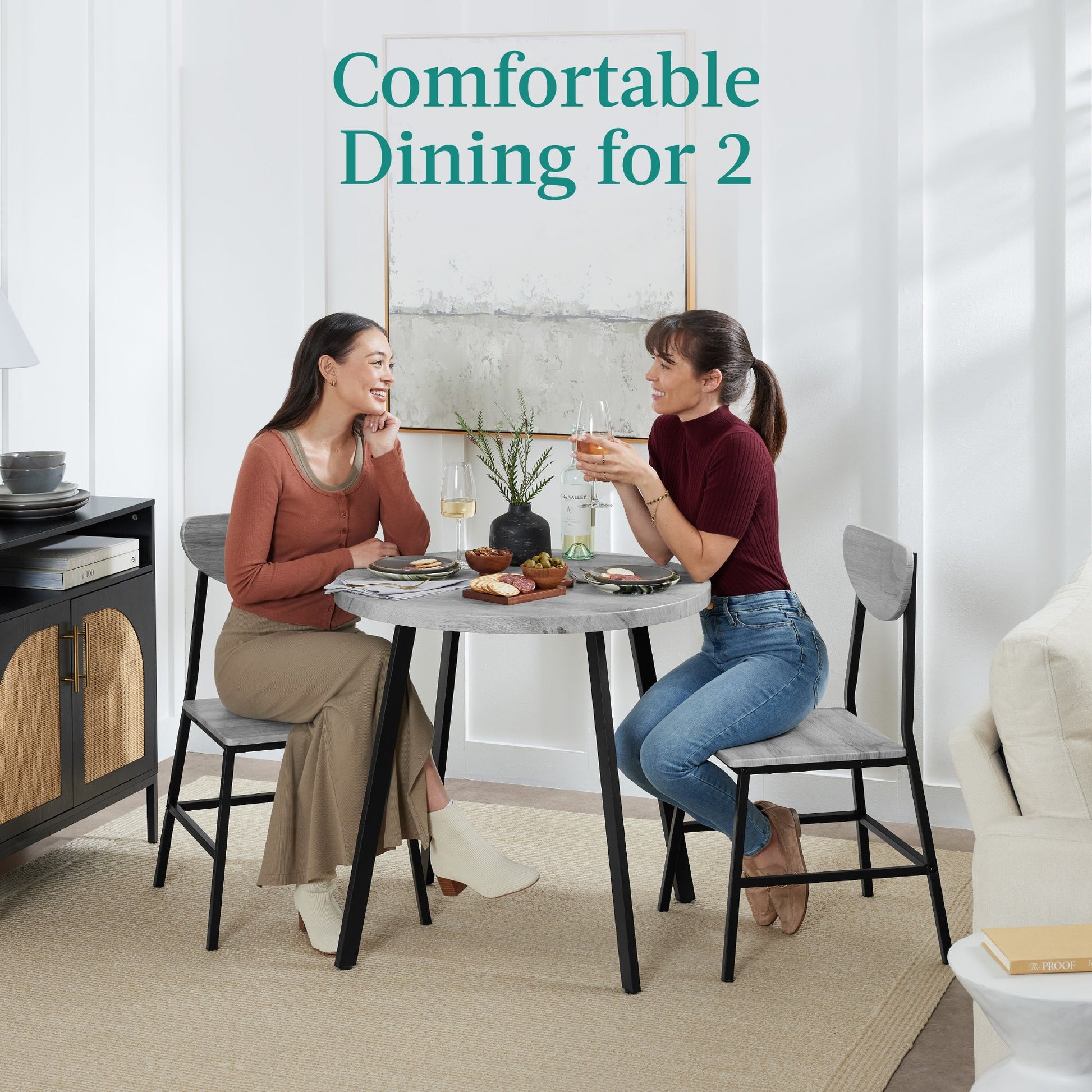 3-Piece Mid-Century Modern Round Dining Set w/ 2 Chairs