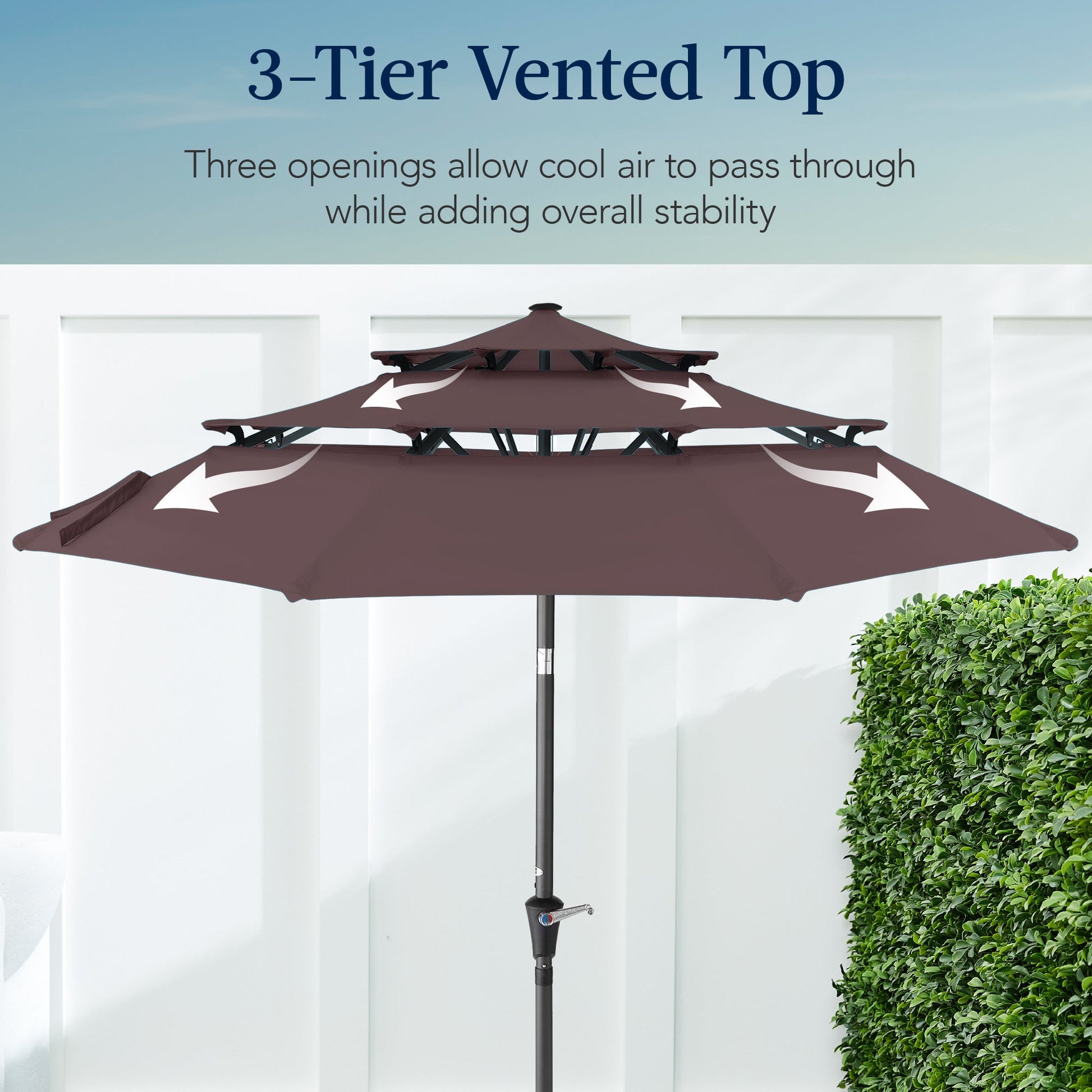 3-Tier Patio Umbrella w/ Tilt Adjustment, Crank - 10ft