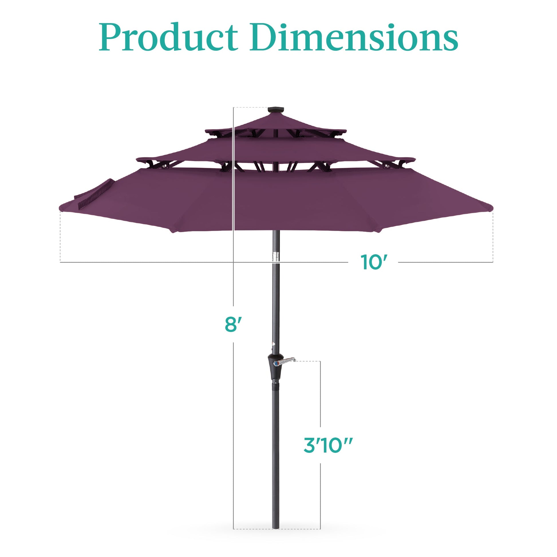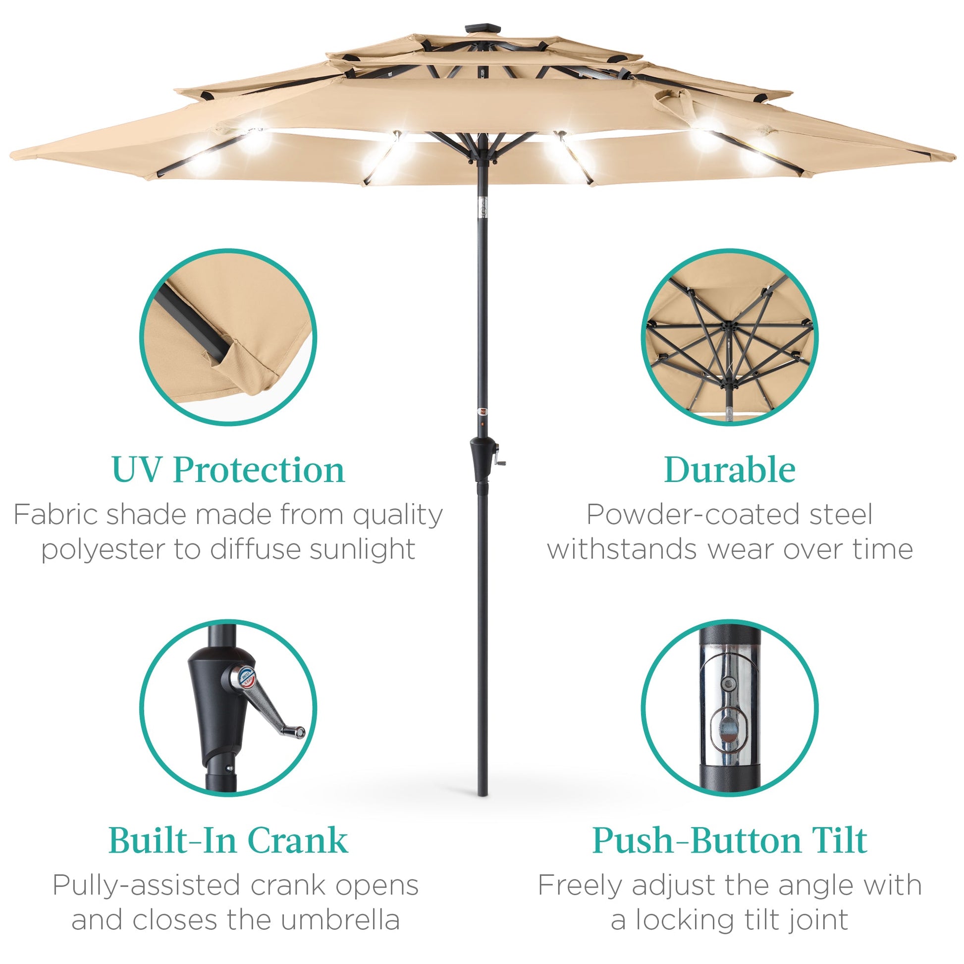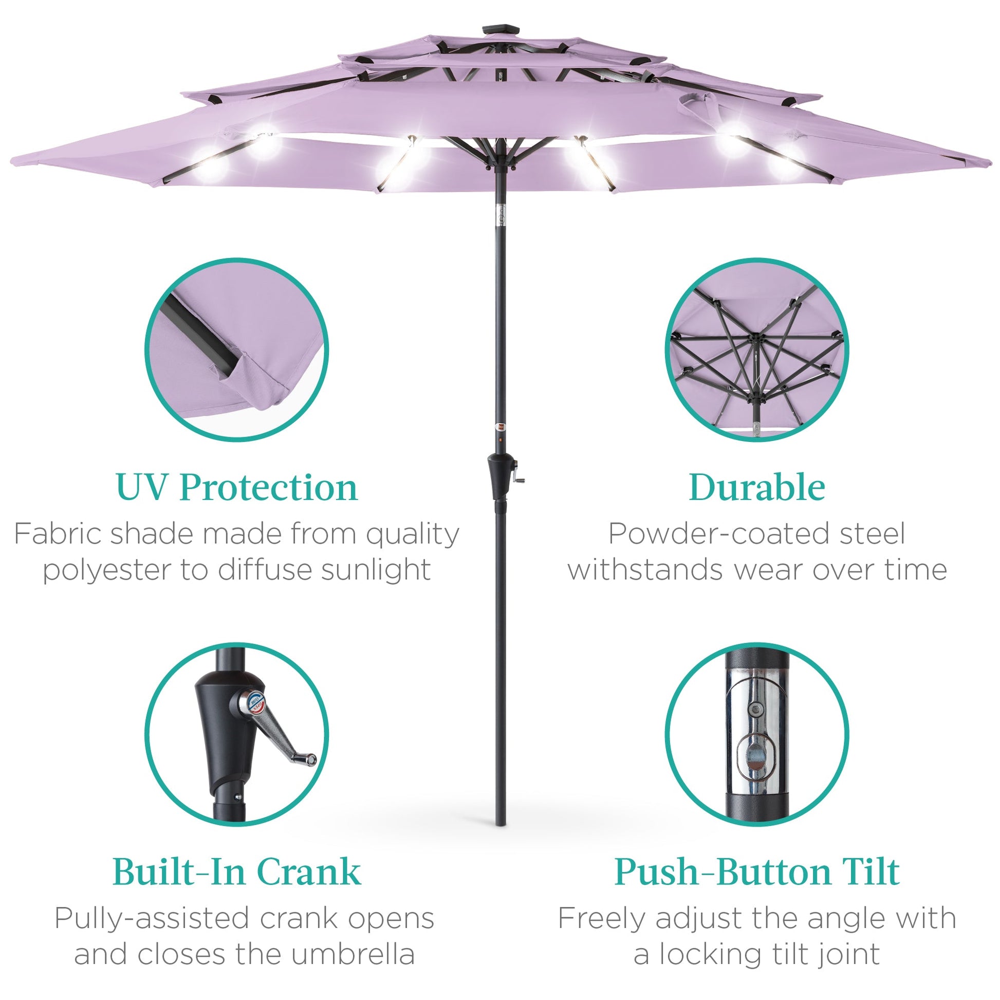 3-Tier Solar Patio Umbrella w/ LED Lights, Tilt Adjustment, Crank - 10ft