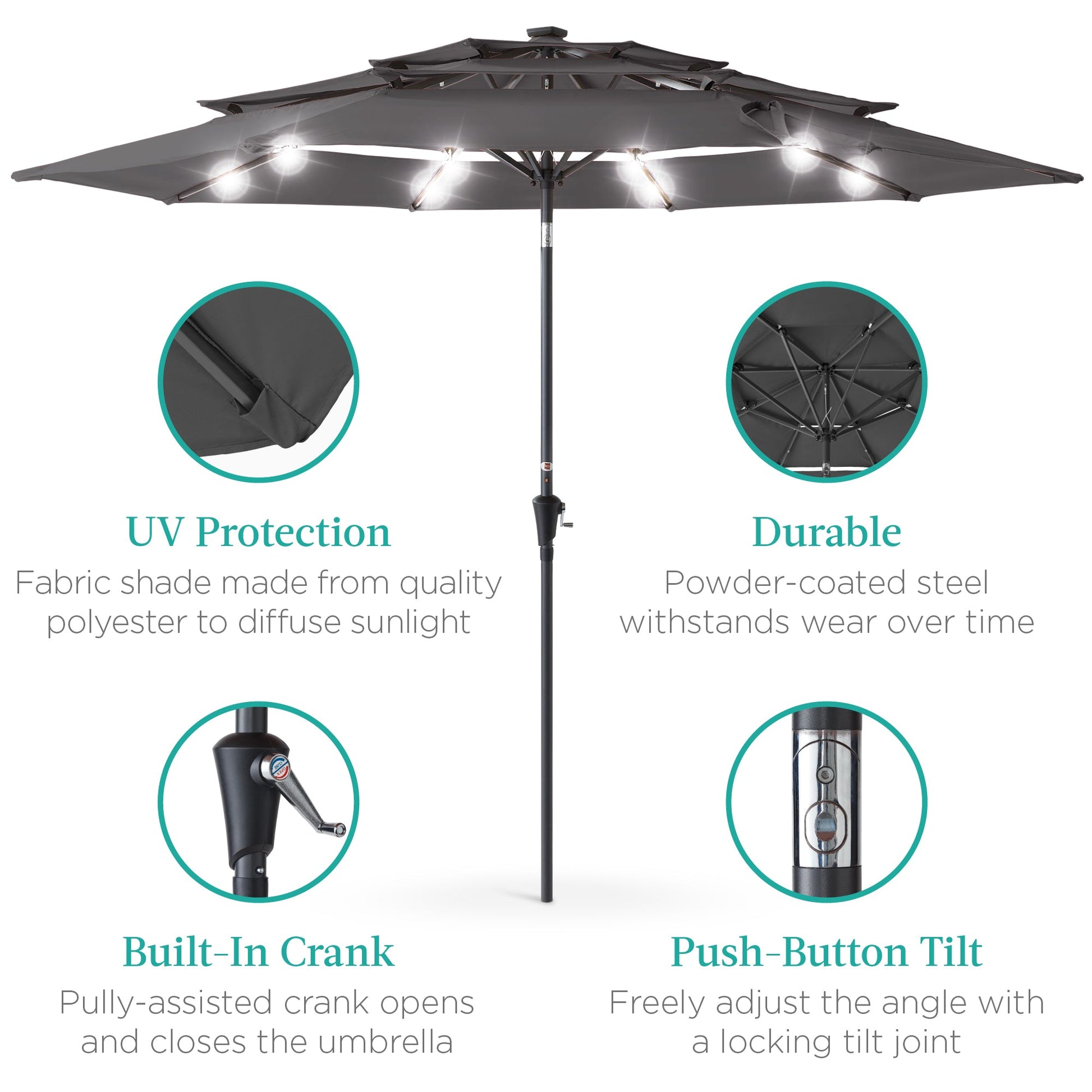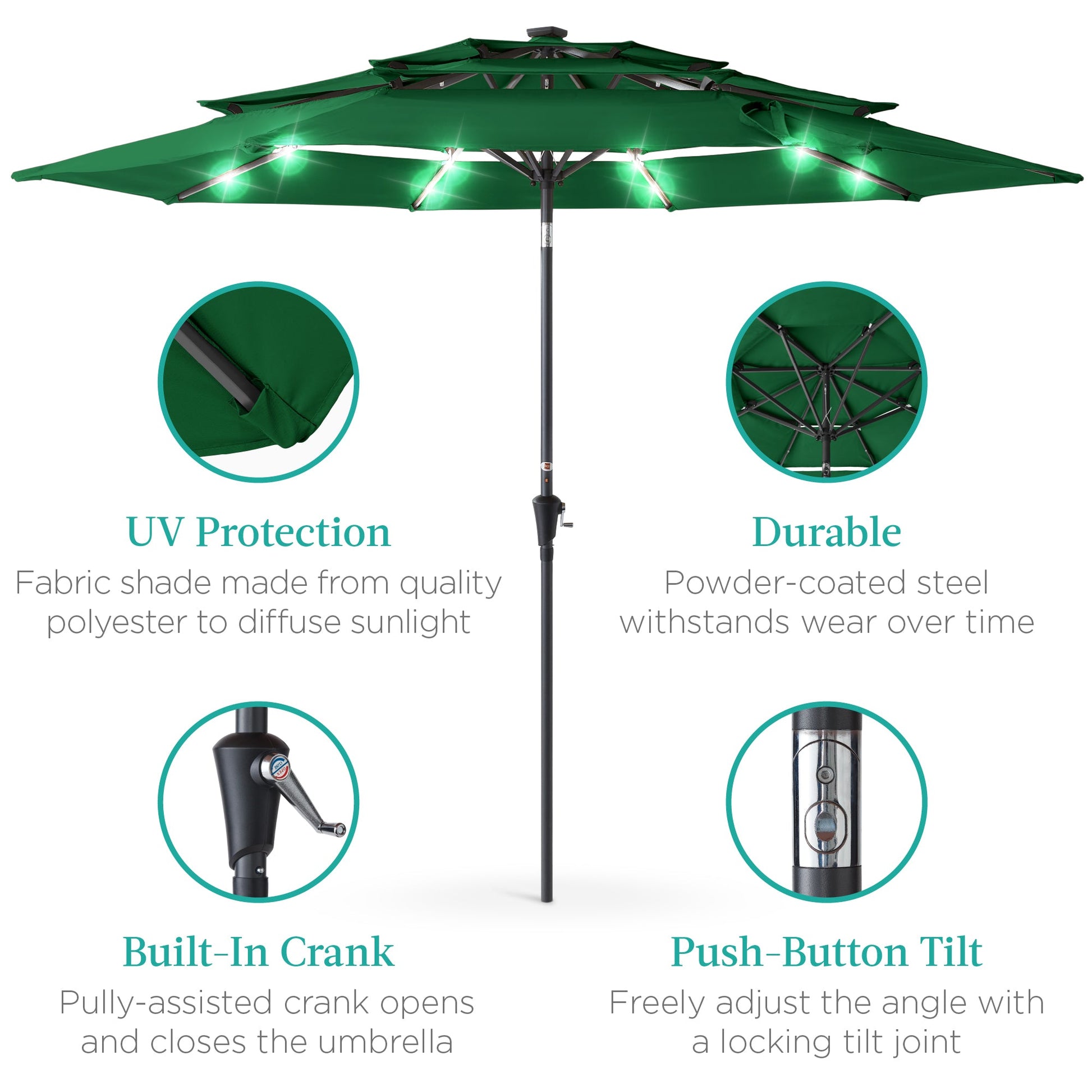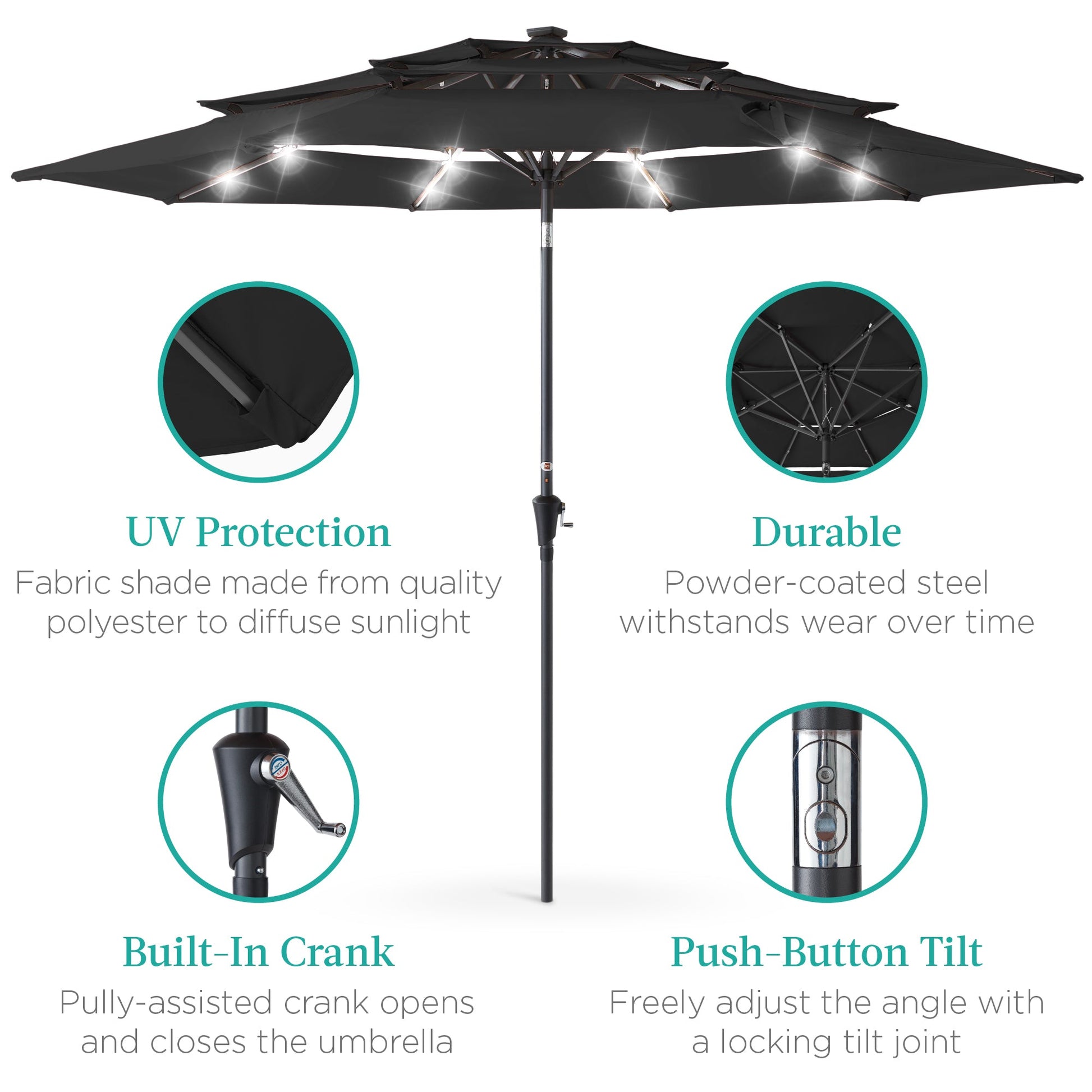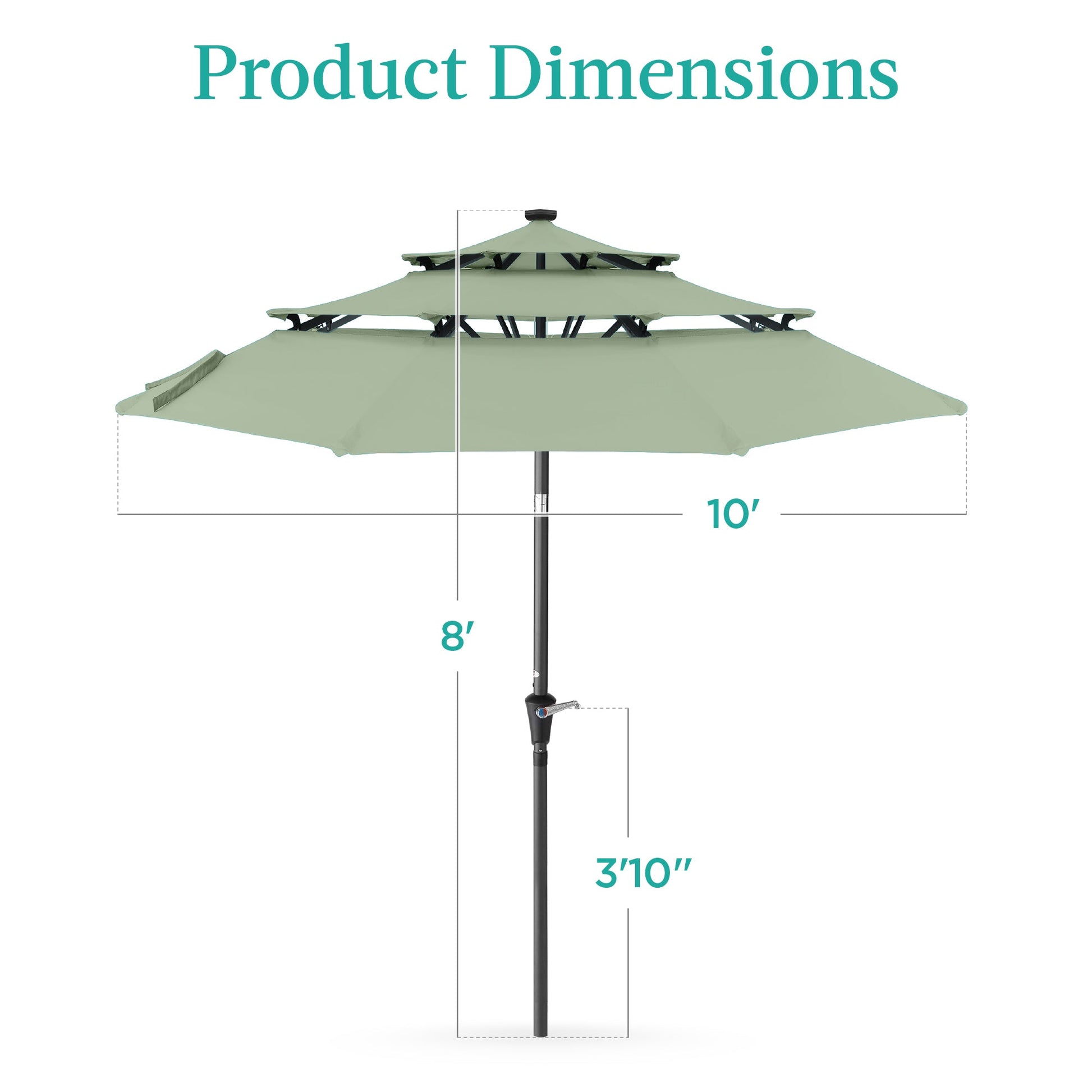 3-Tier Solar Patio Umbrella w/ LED Lights, Tilt Adjustment, Crank - 10ft