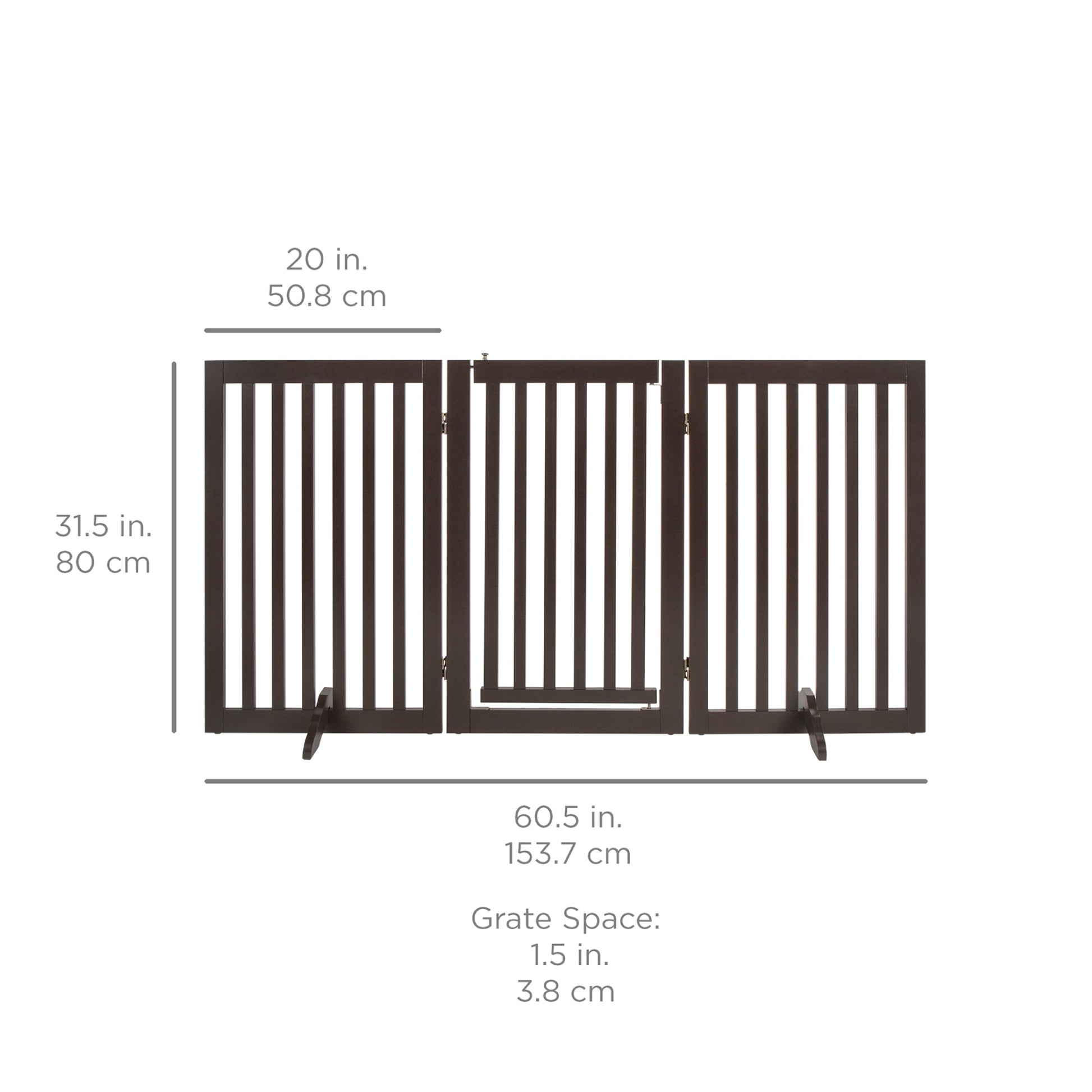 31.5in 3-Panel Freestanding Wooden Pet Gate w/ Door, Support Feet