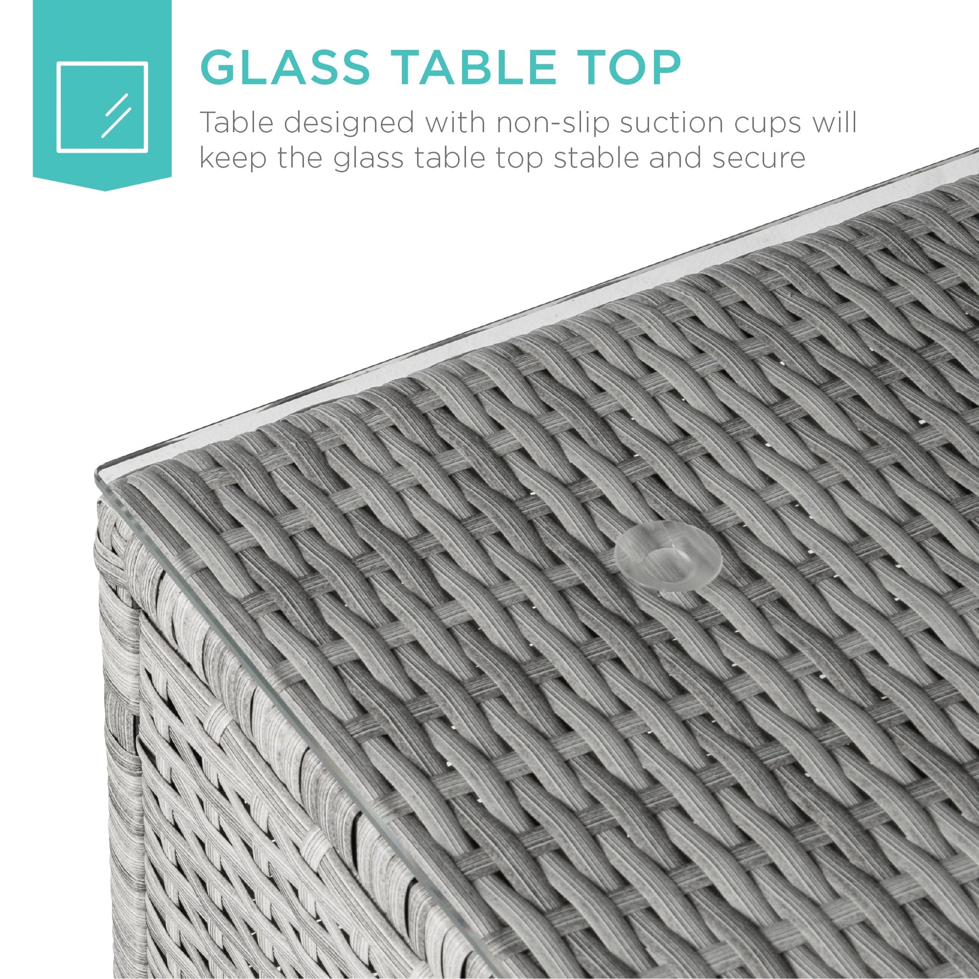 • GLASS TABLE TOP: The coffee table has a tempered glass top that is held in place by non-slip suction cups in each corner; use it as a convenient surface to rest snacks, beverages, or decor