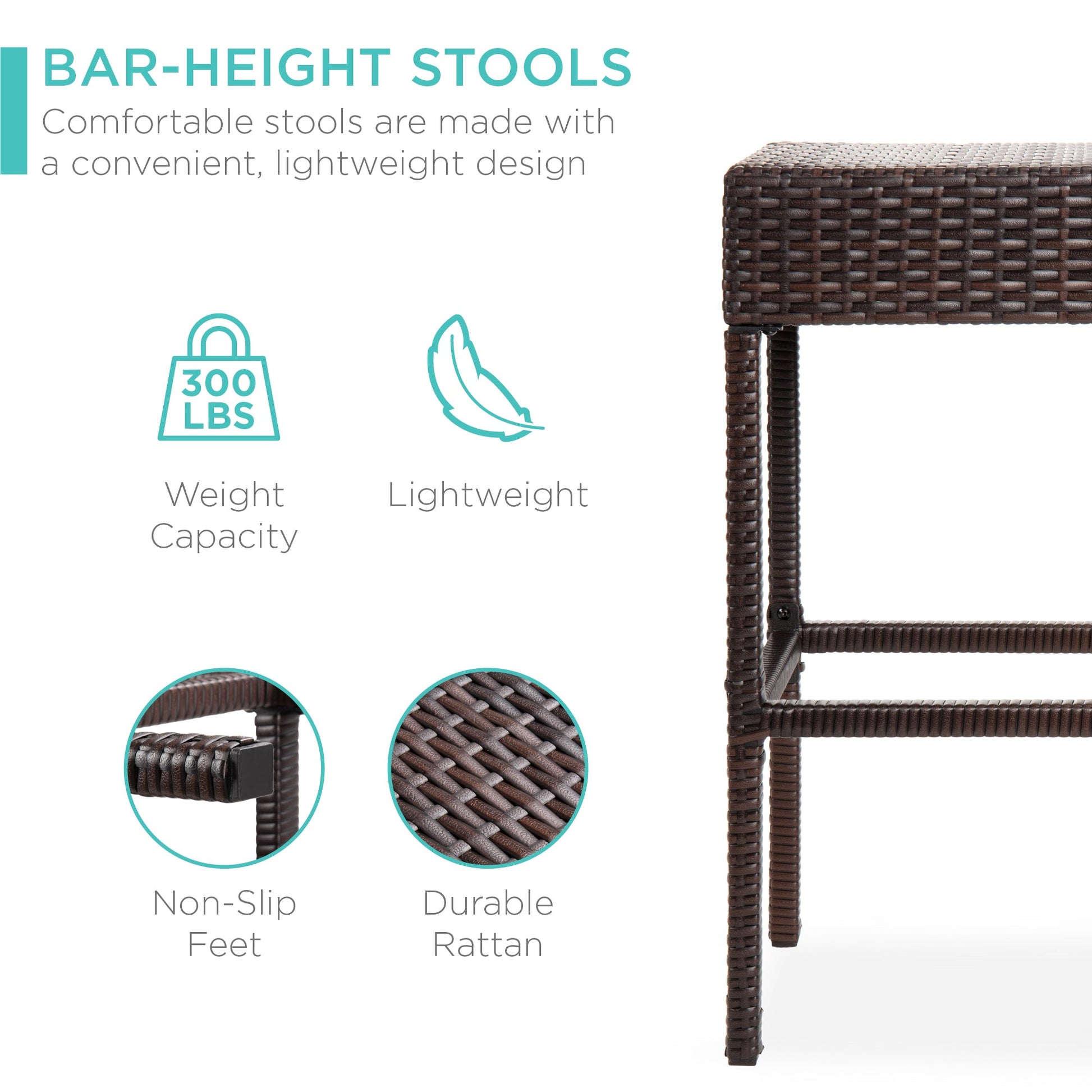 5-Piece Wicker Bar Set w/ 4 Stools, Built-In Bottle Opener, Hidden Storage