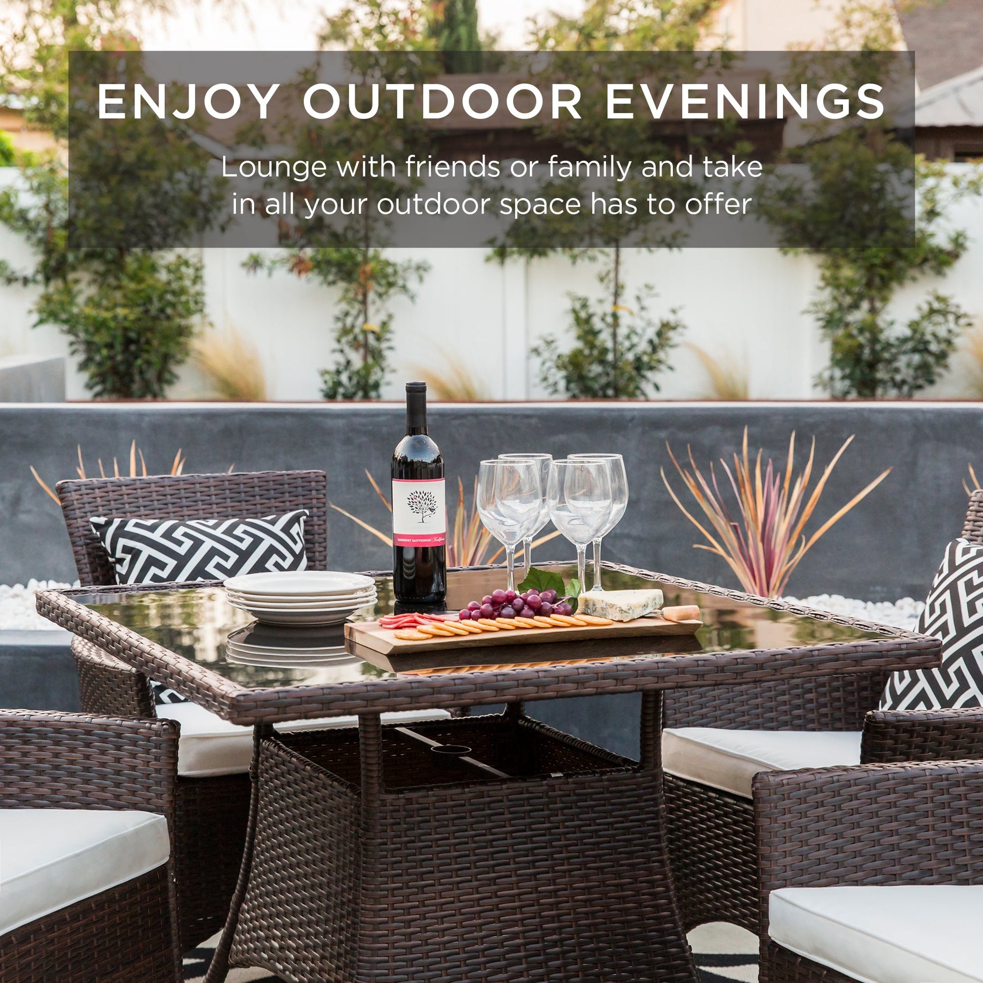 5-Piece Wicker Patio Dining Table Set w/ 4 Chairs