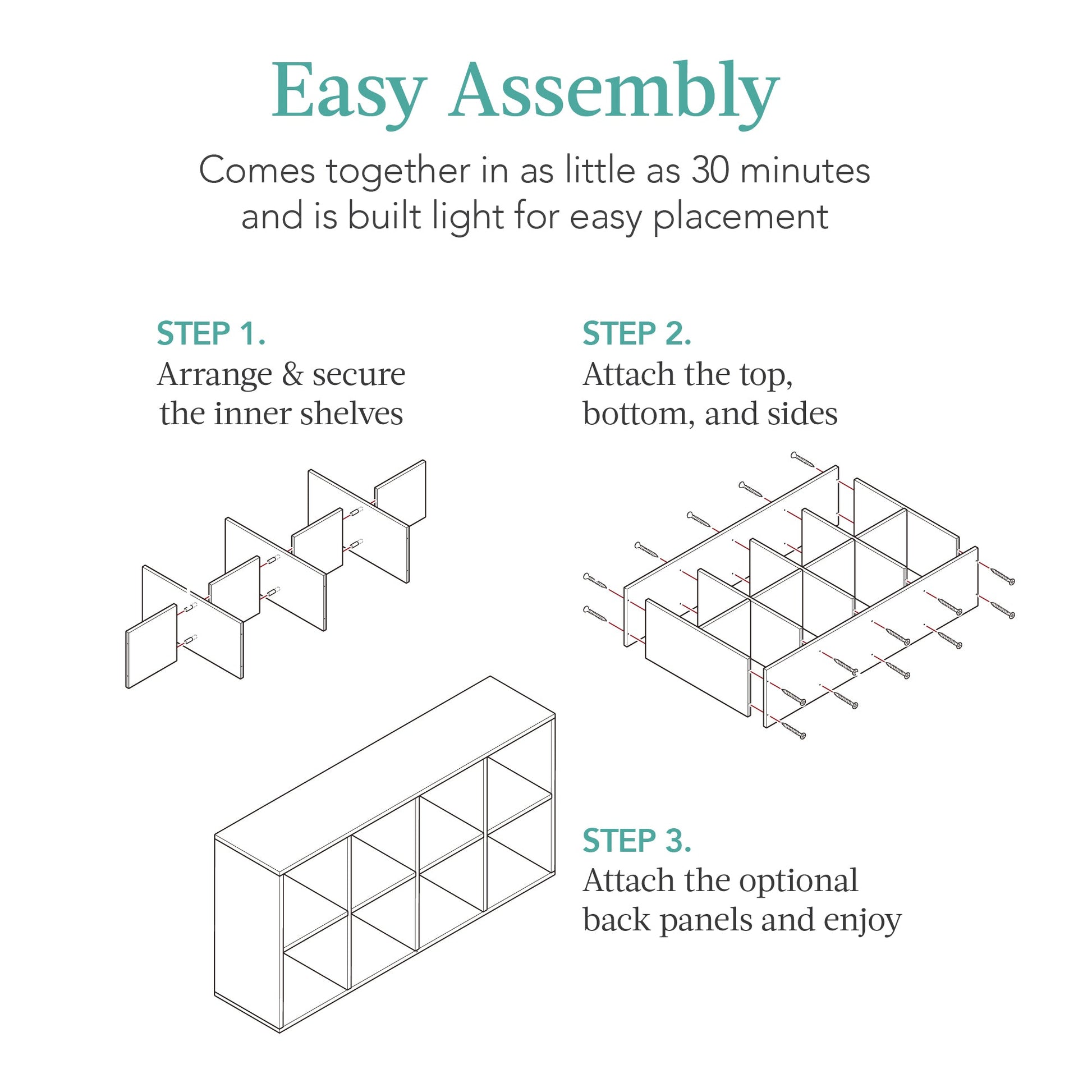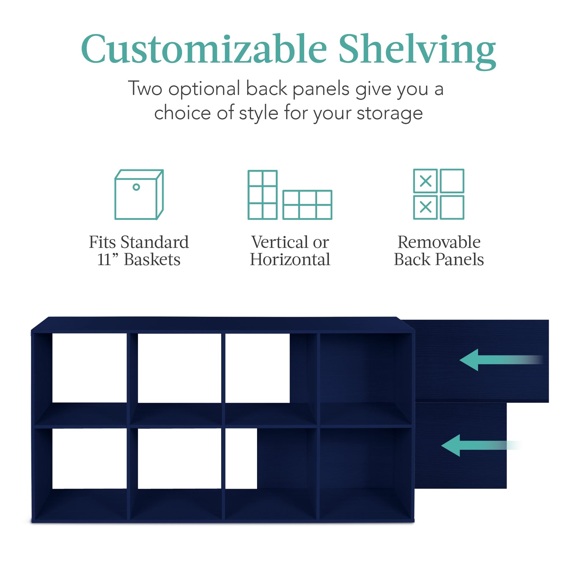 8-Cube Bookshelf, 11in Storage Display w/ Removable Panels, Customizable