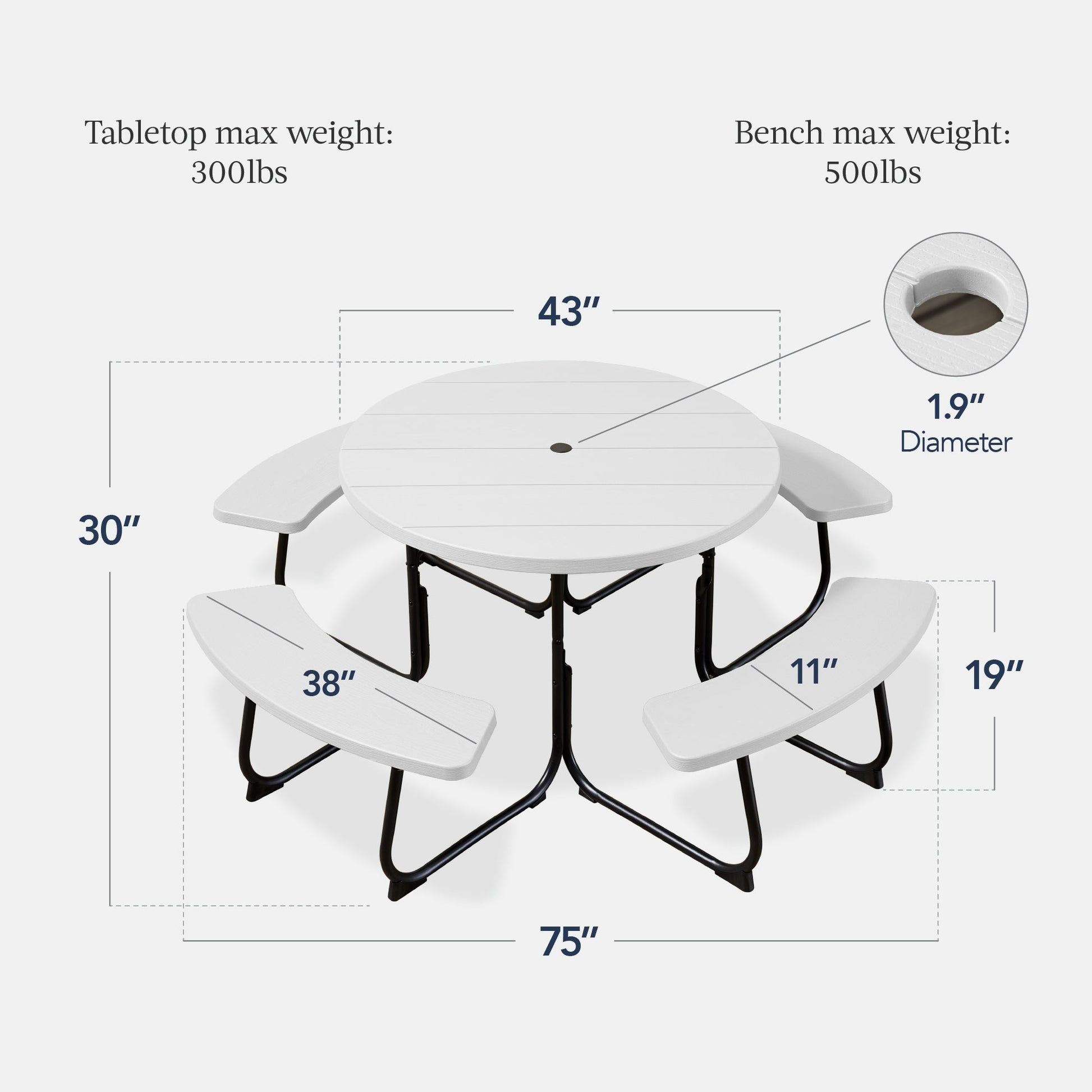8-Person Circular Picnic Table w/ Umbrella Hole, 4 Benches