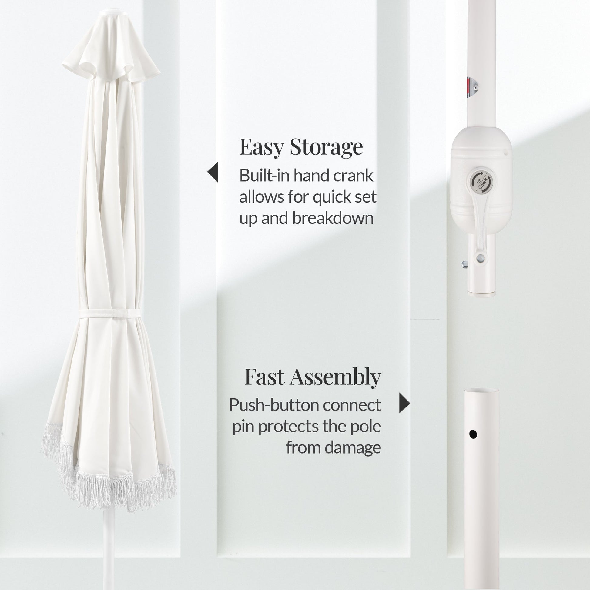 9ft Boho Fringe Umbrella Tilt, UPF50+, Steel Pole
