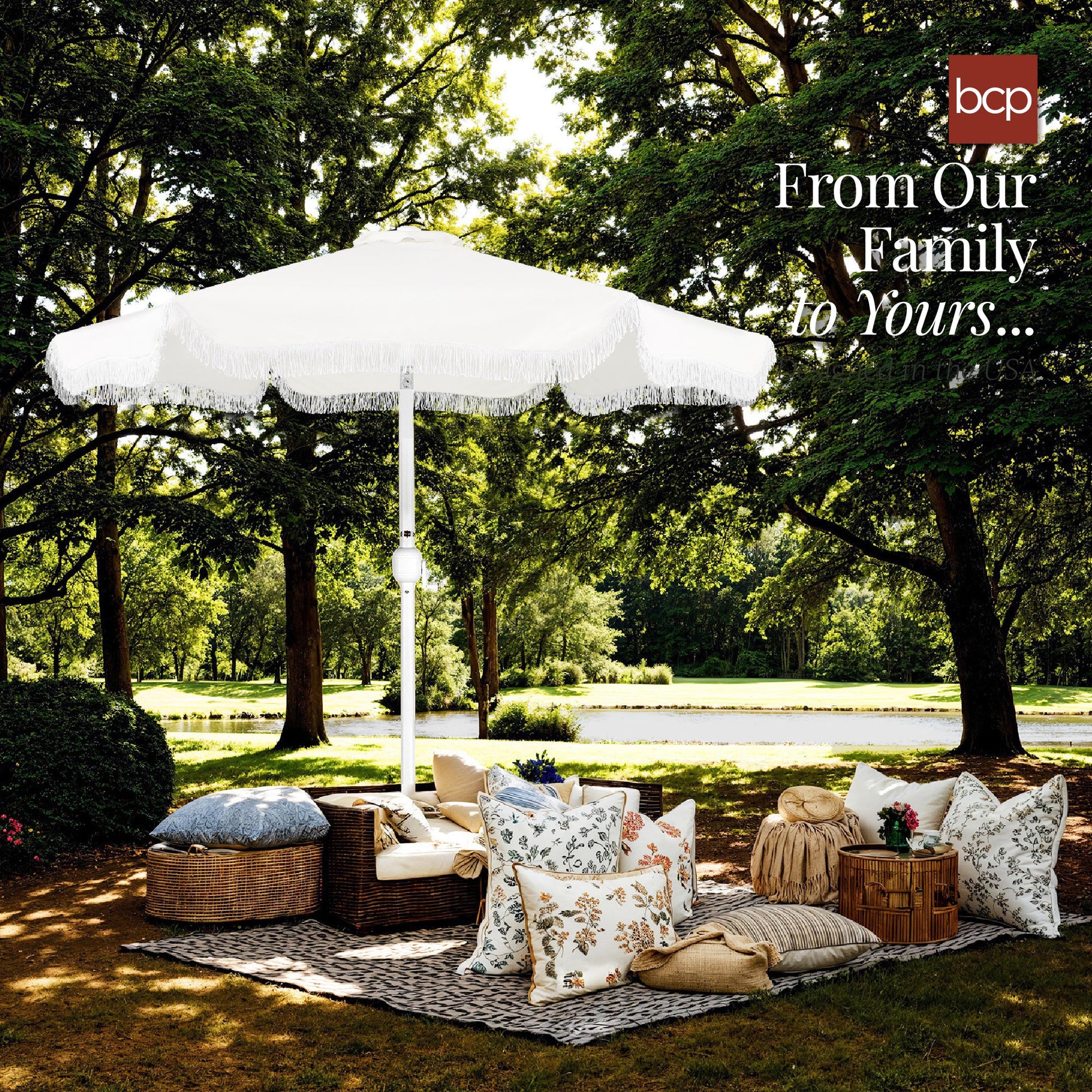 • CHIC BOHO FRINGE DESIGN: Add a touch of elegance to any patio, deck, or backyard with this 9ft market umbrella featuring stylish tassel fringe-perfect for tea parties, bridal showers, or a cozy boho retreat