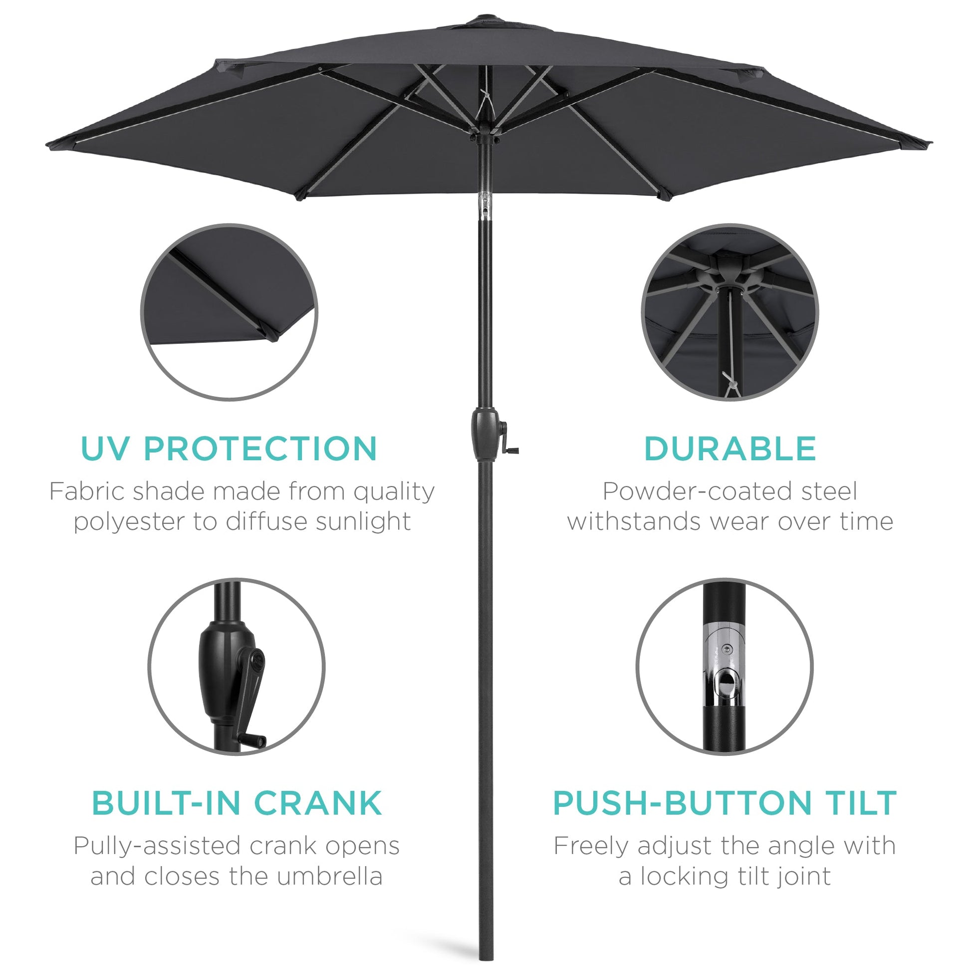Outdoor Market Patio Umbrella w/ Push Button Tilt, Crank Lift - 7.5ft