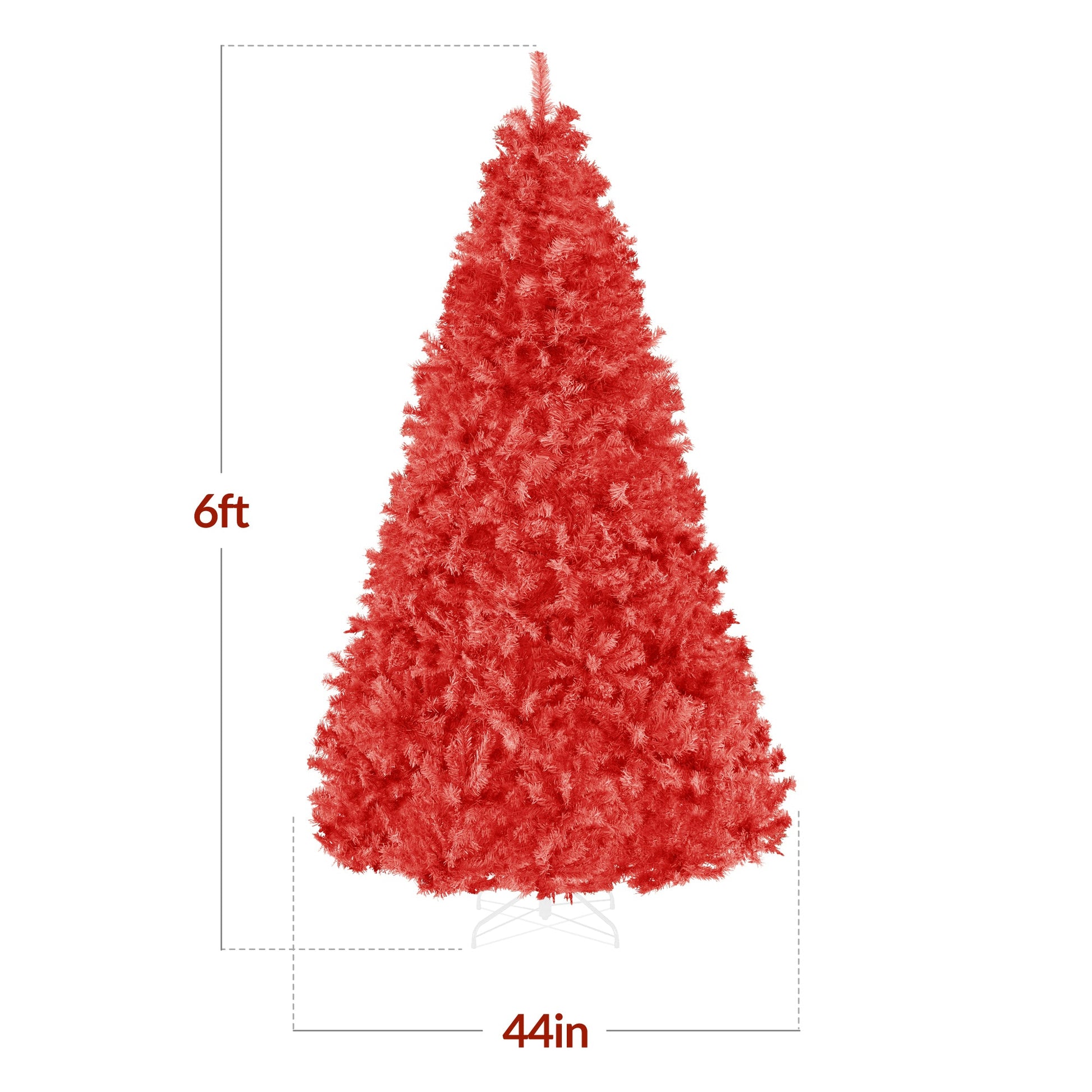 Artificial Red Christmas Tree, Unlit Pine Design w/Easy Assembly