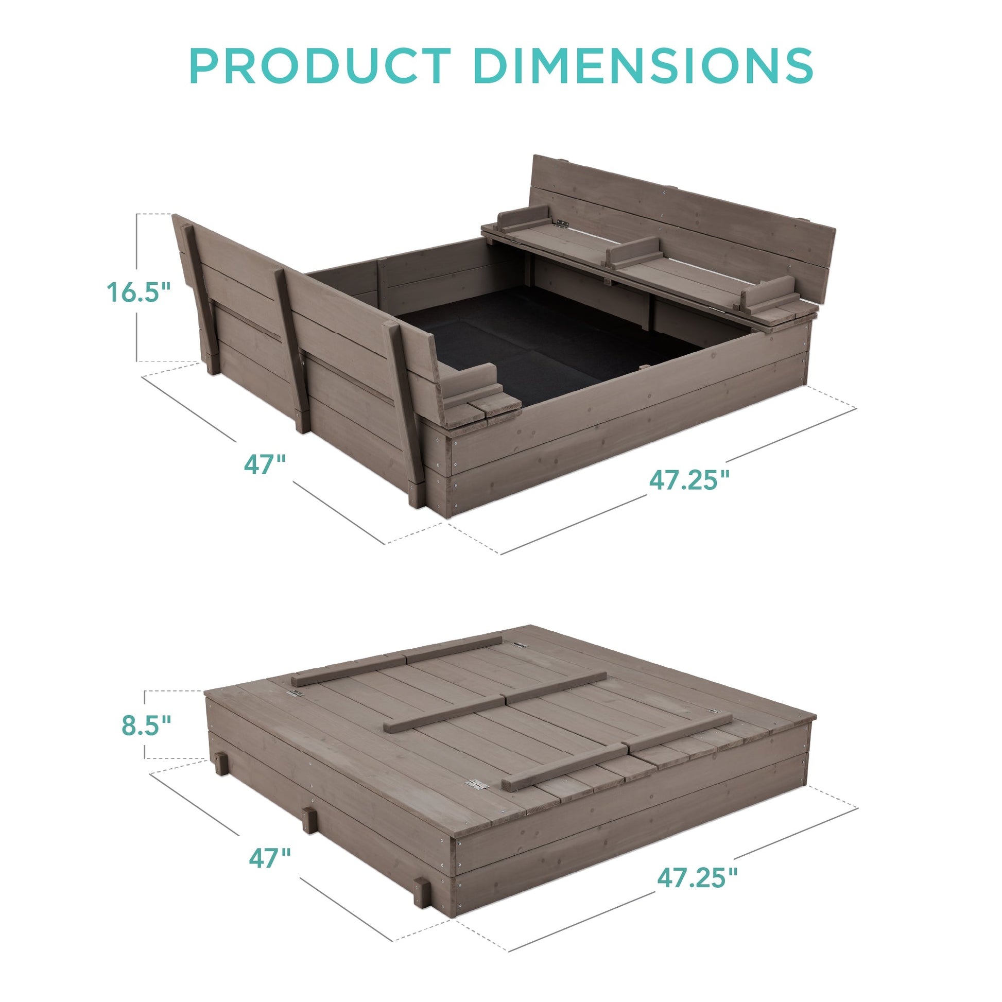 Kids Cedar Sandbox w/ Sand Screen, 2 Benches - 47x47in