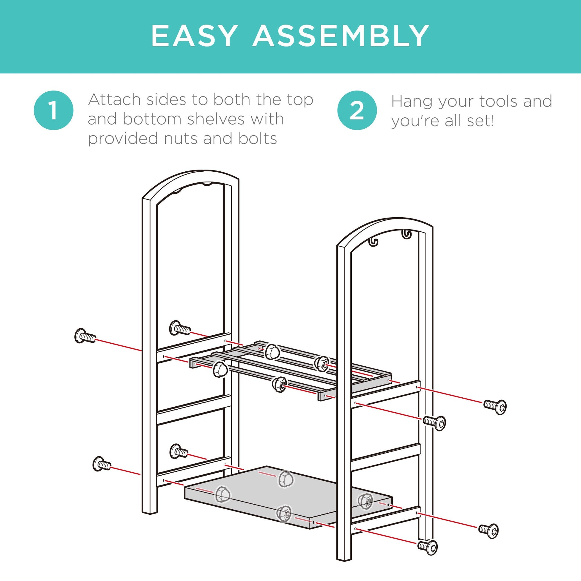 • EASY ASSEMBLY: Put the storage rack together with minimal effort by simply attaching each self to the sides before hanging your tools