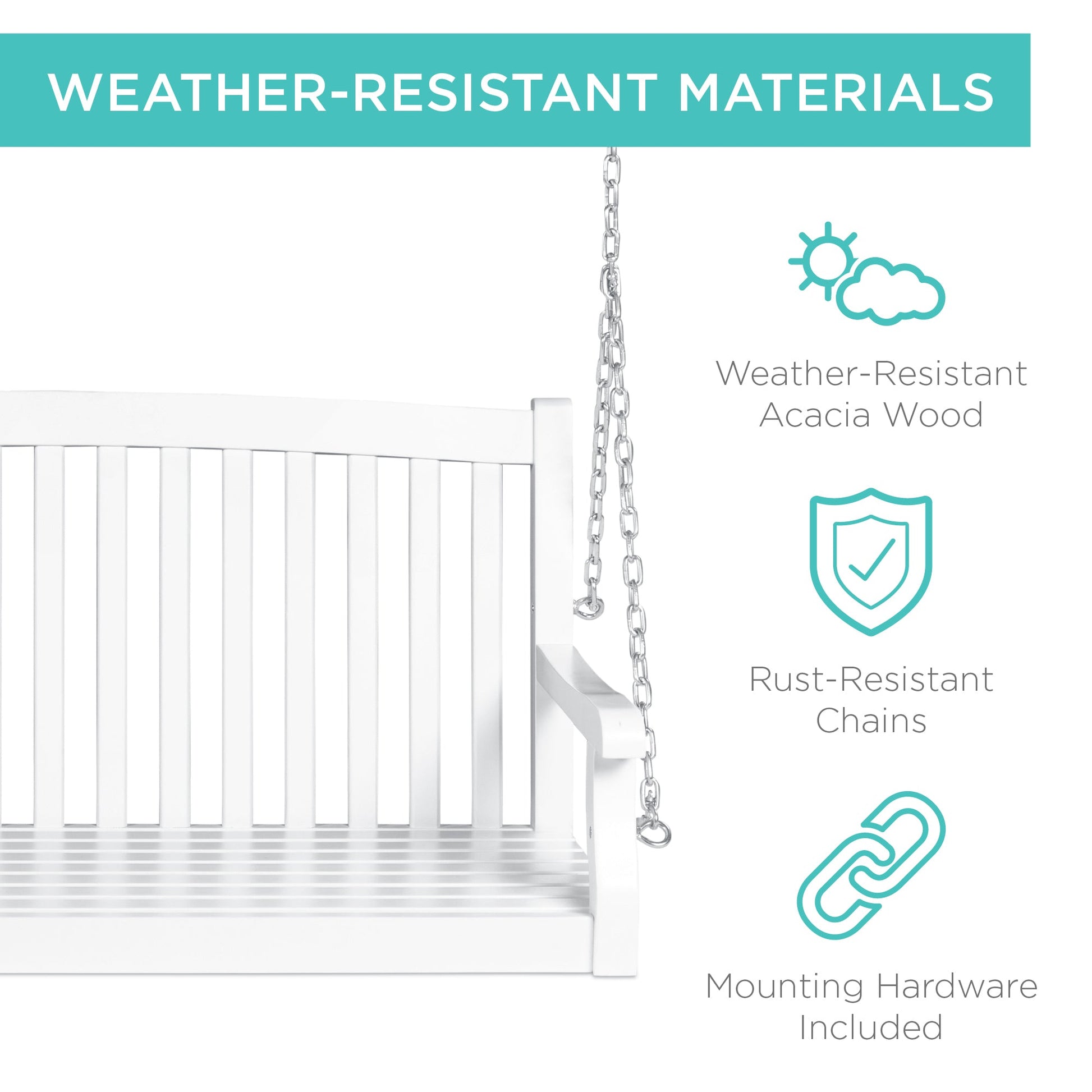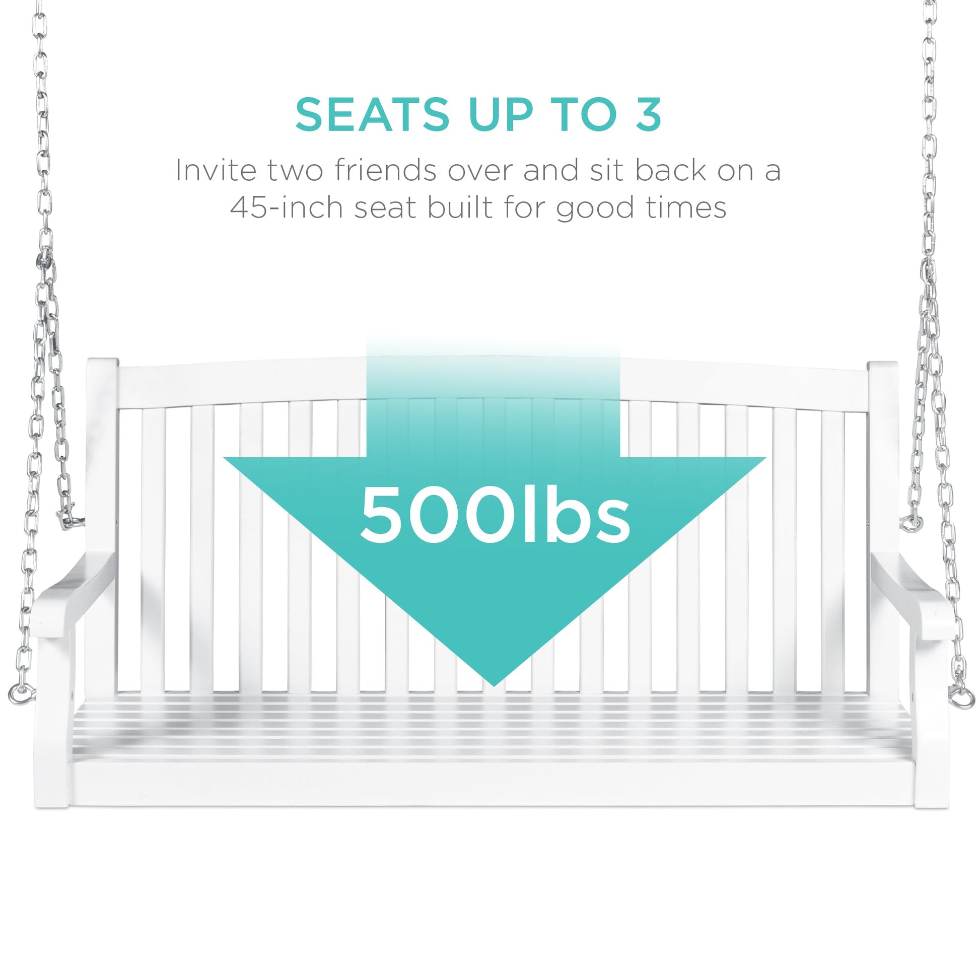 Wooden Curved Back Hanging Porch Swing Bench w/ Mounting Chains - 48in
