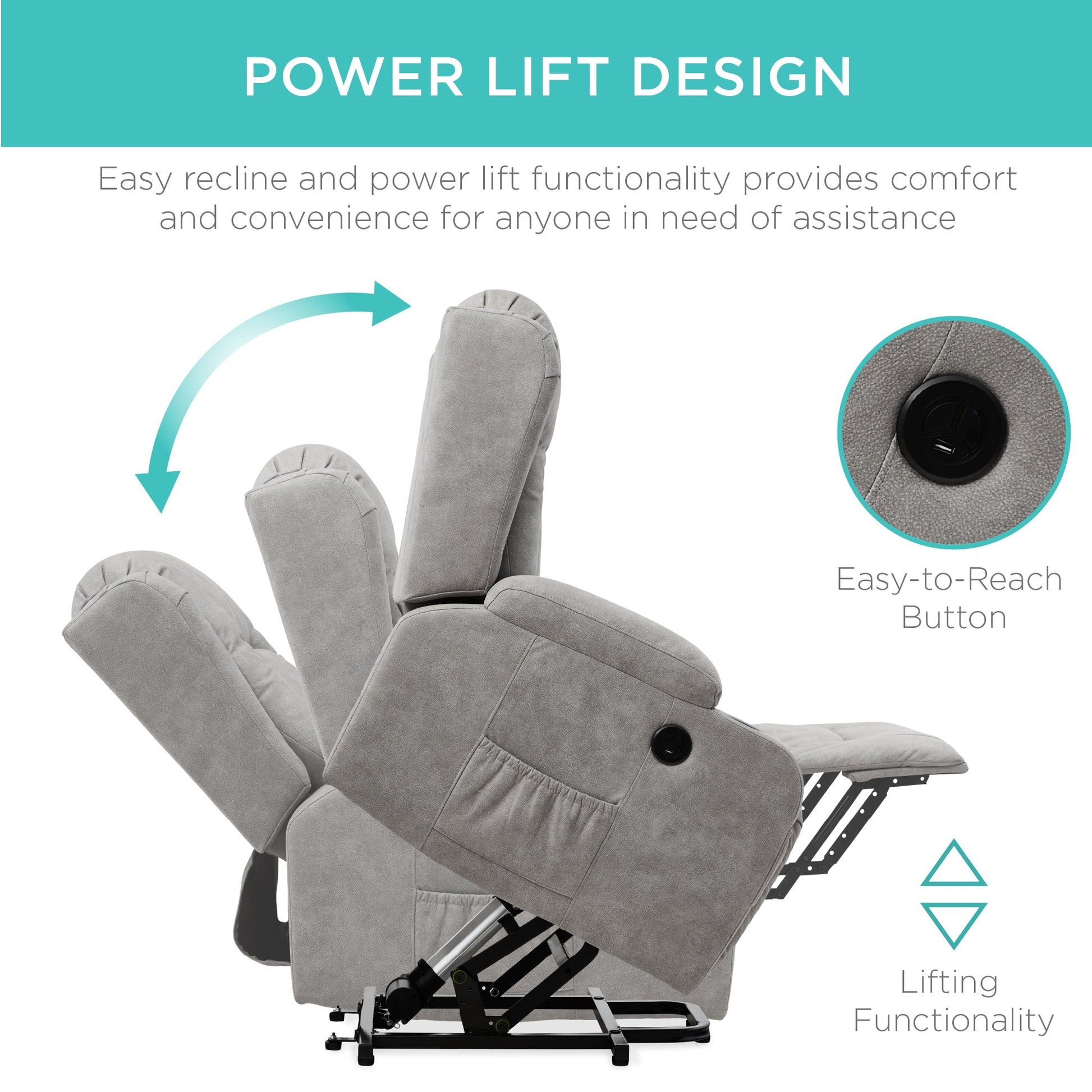 Electric Power Lift Recliner Massage Chair w/ Heat, USB Port, Cupholders
