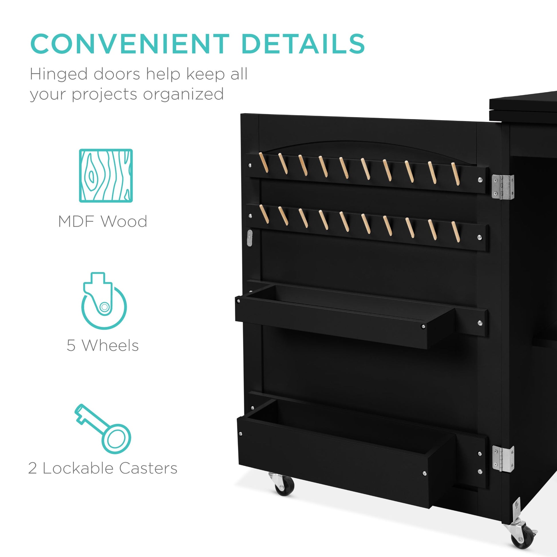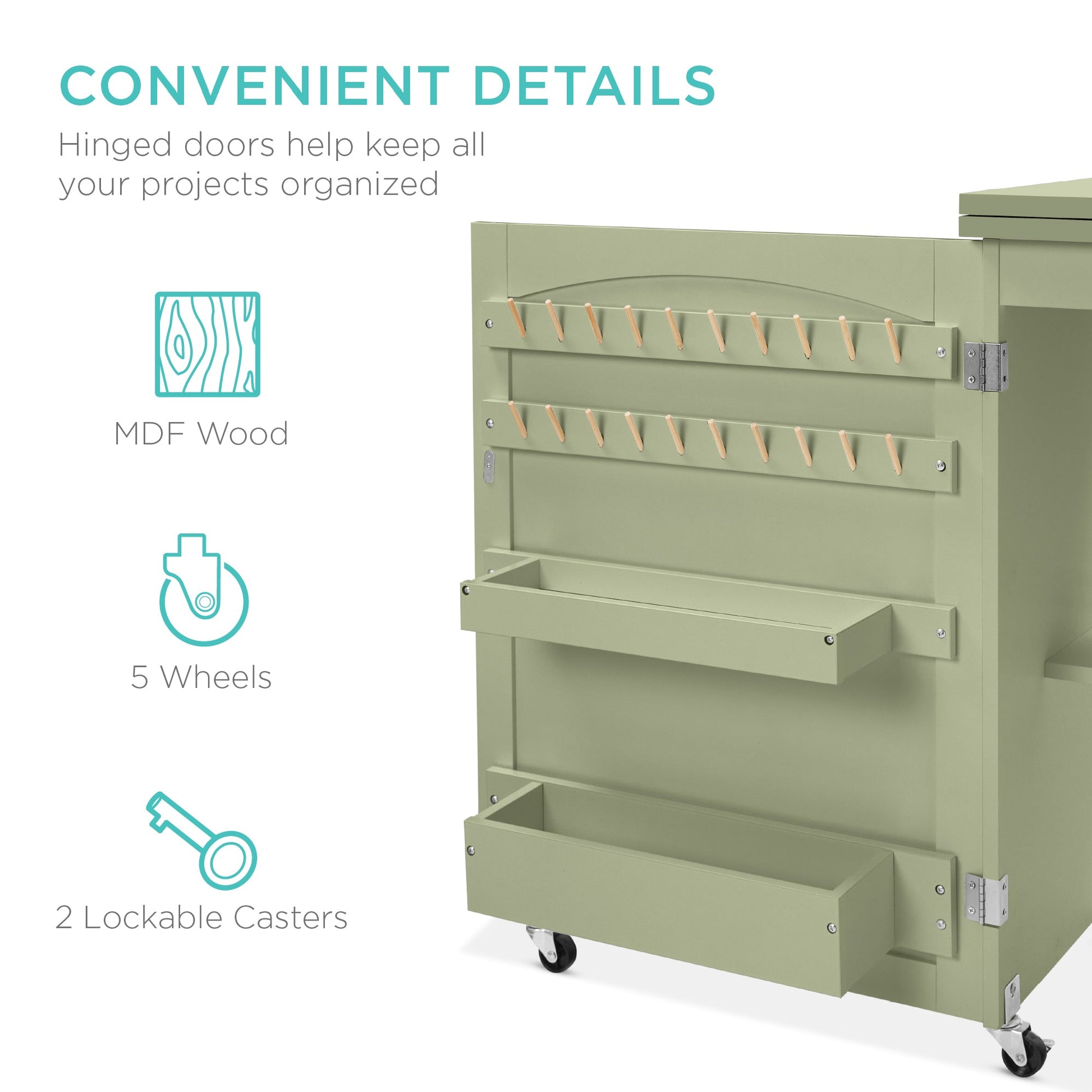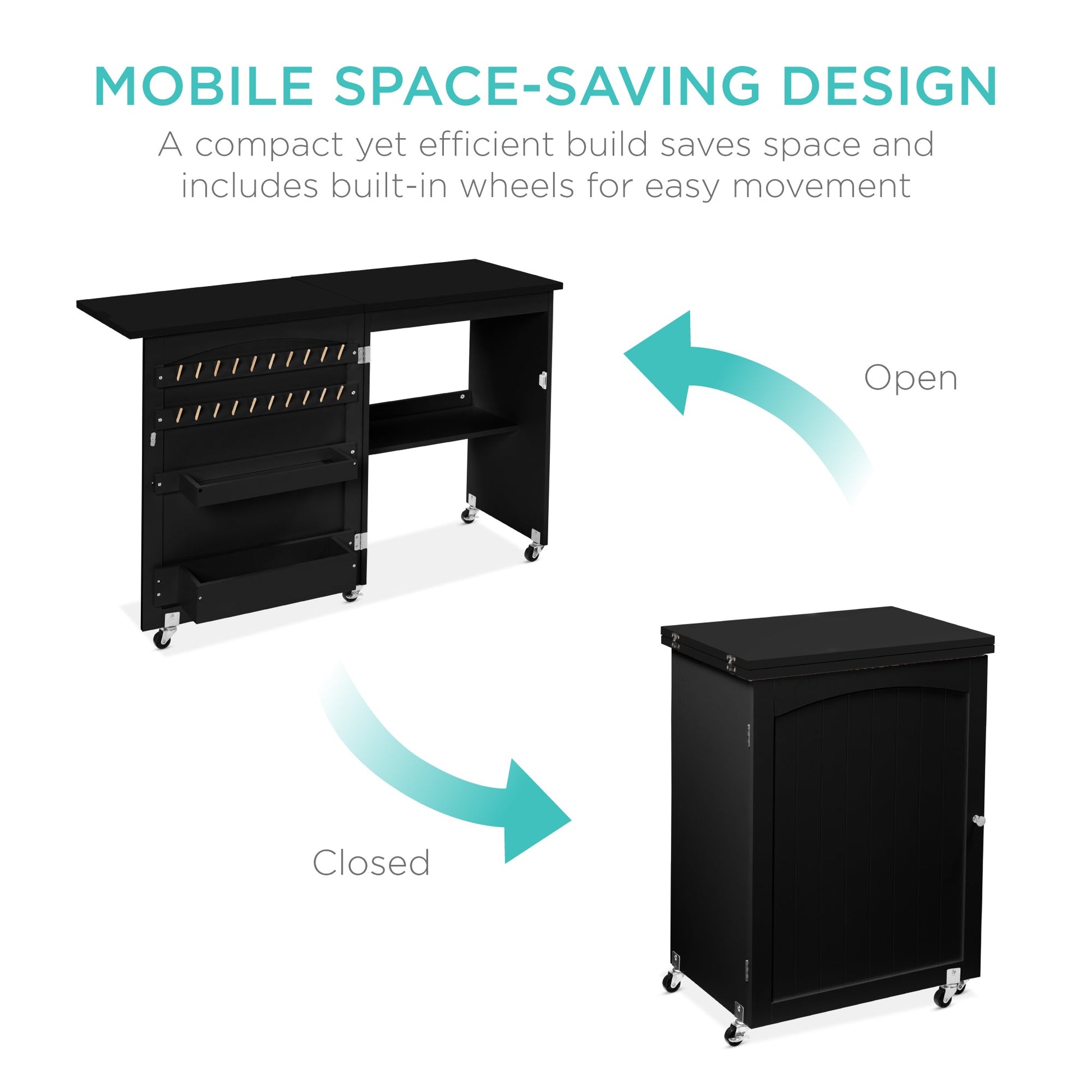 Folding Sewing Table Multipurpose Craft Station & Side Table w/ Wheels