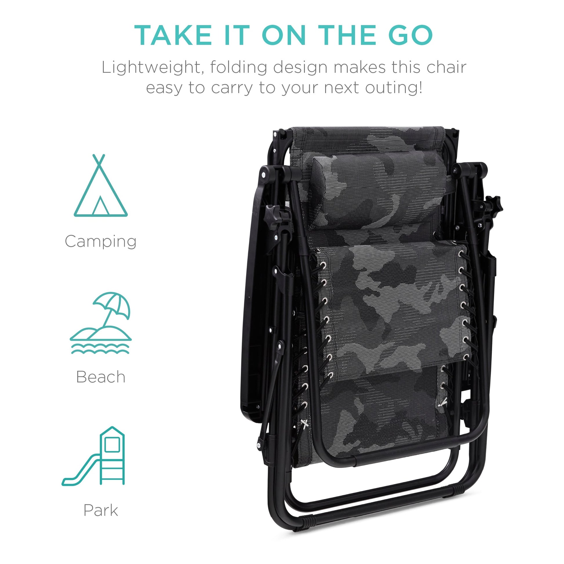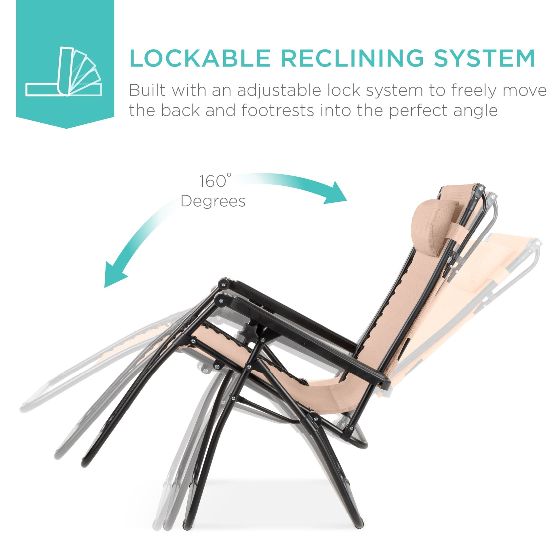 Folding Zero Gravity Recliner Patio Lounge Chair w/ Canopy, Side Tray