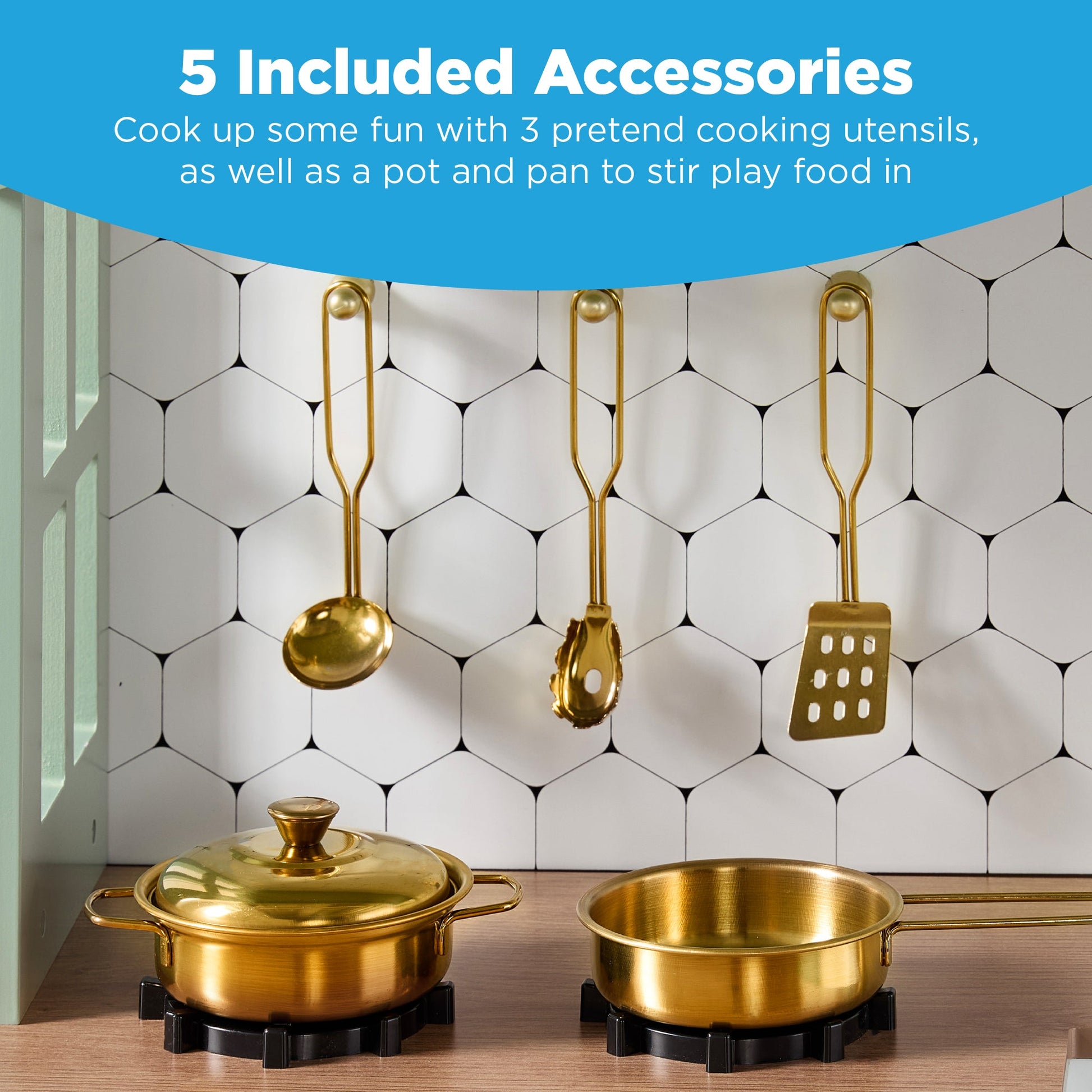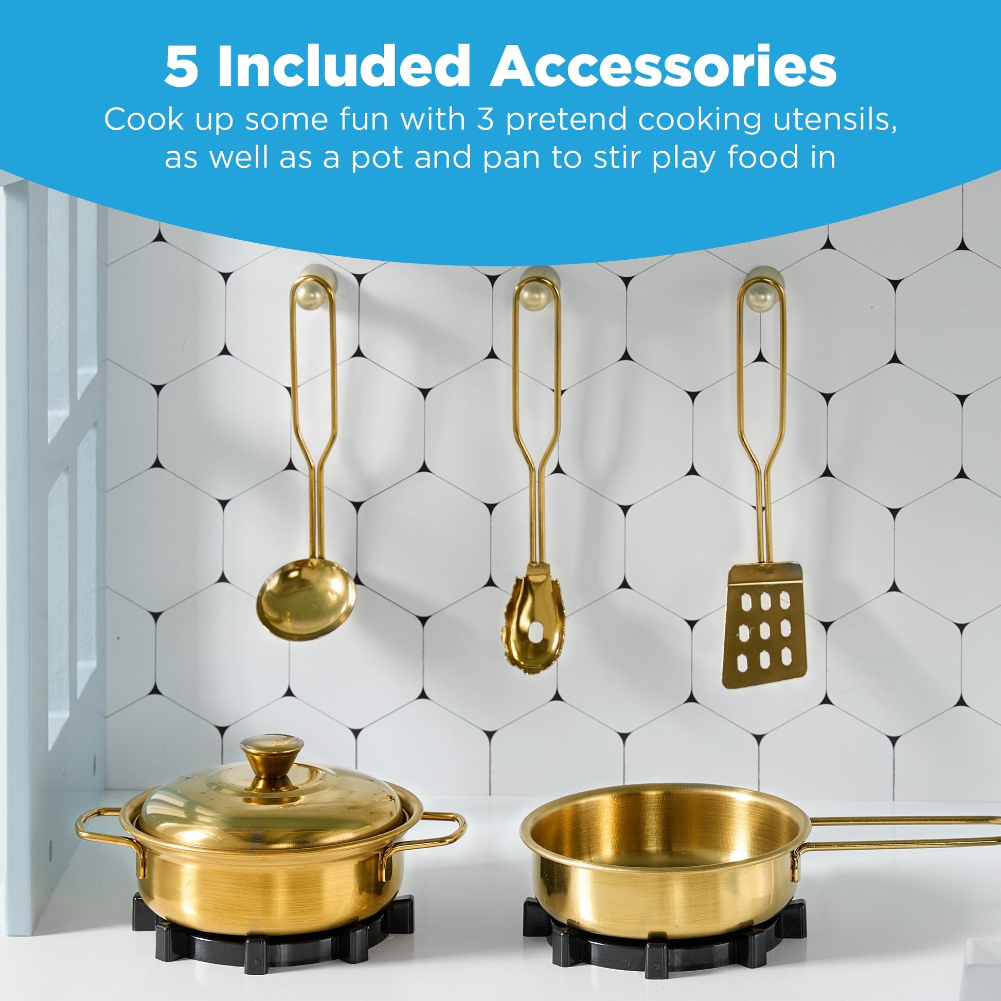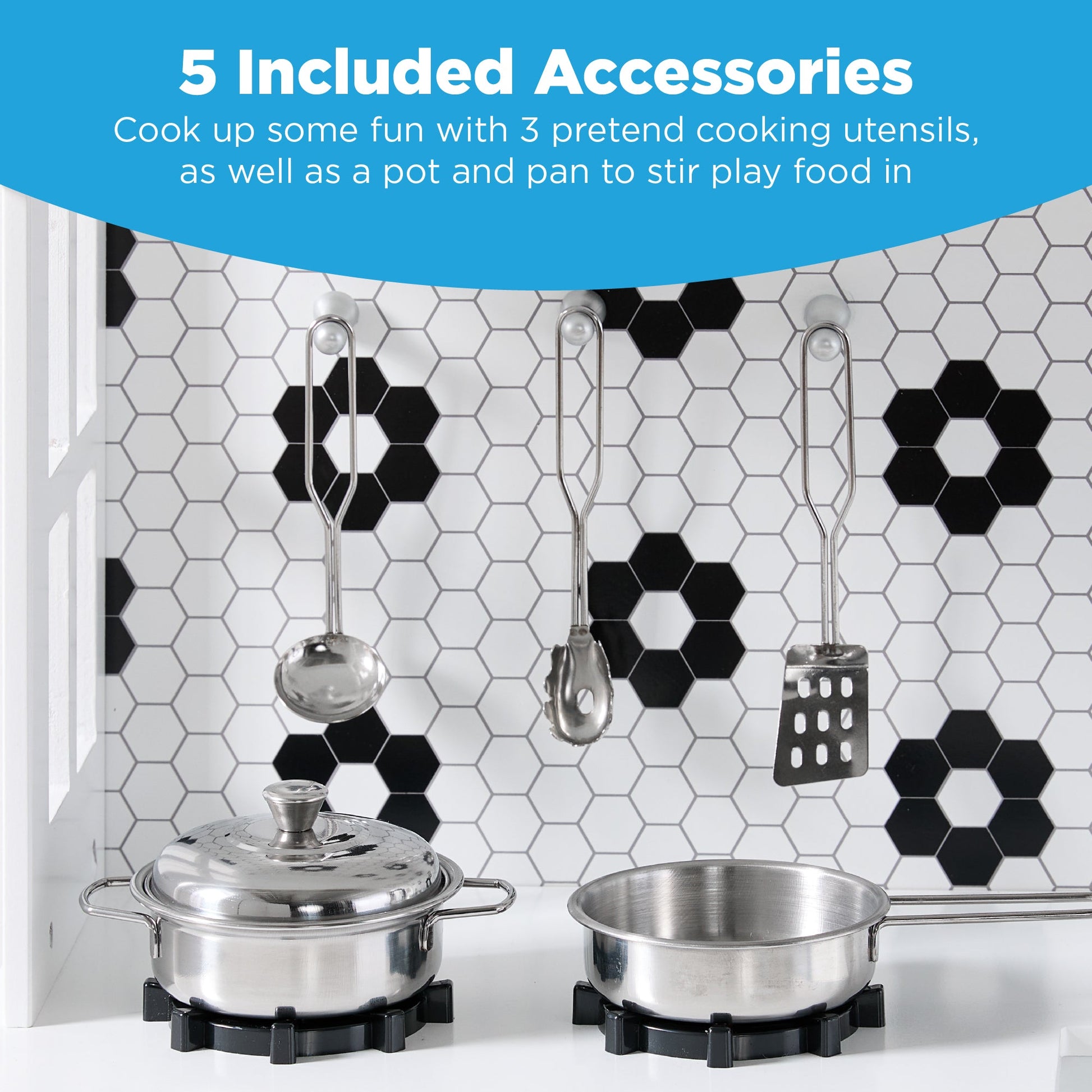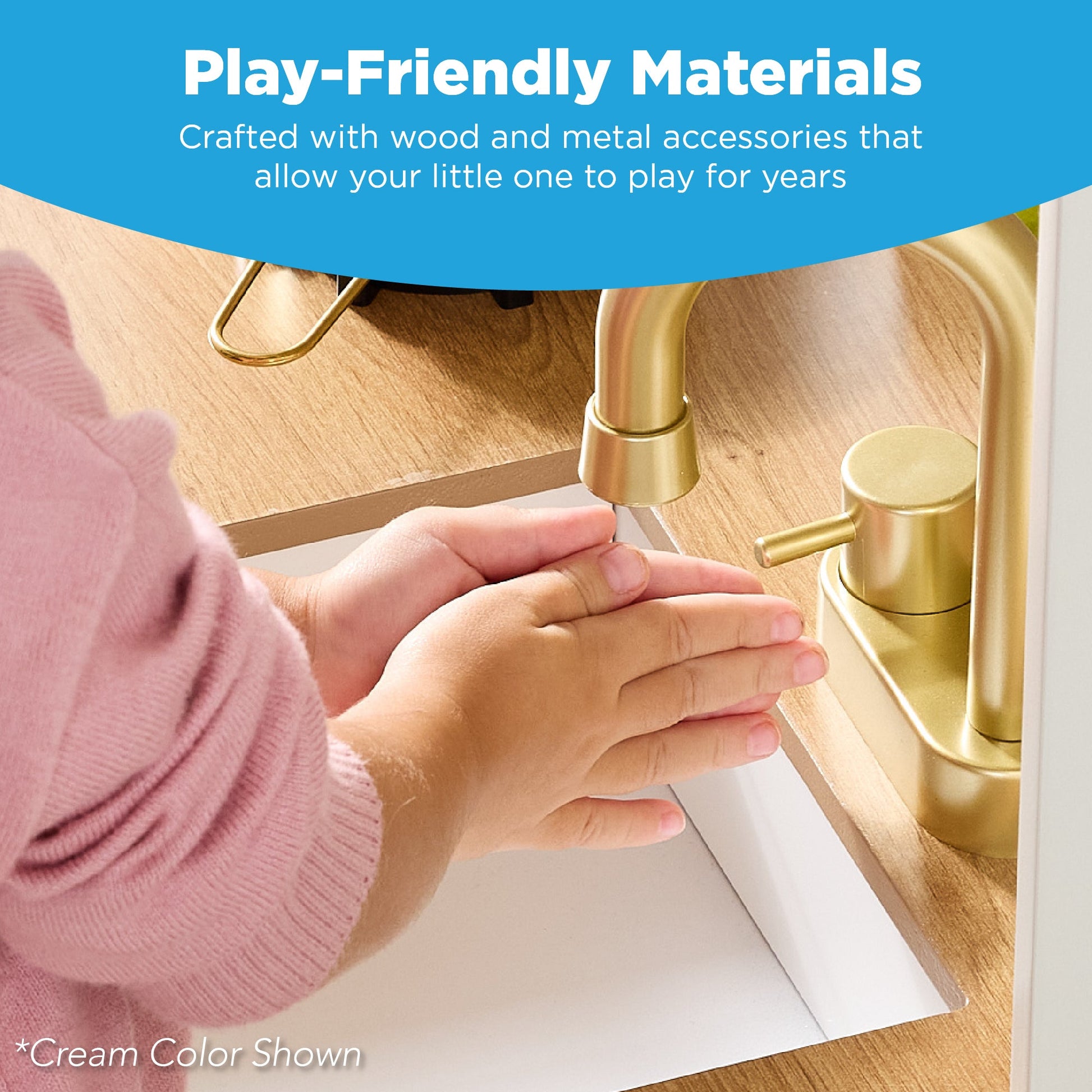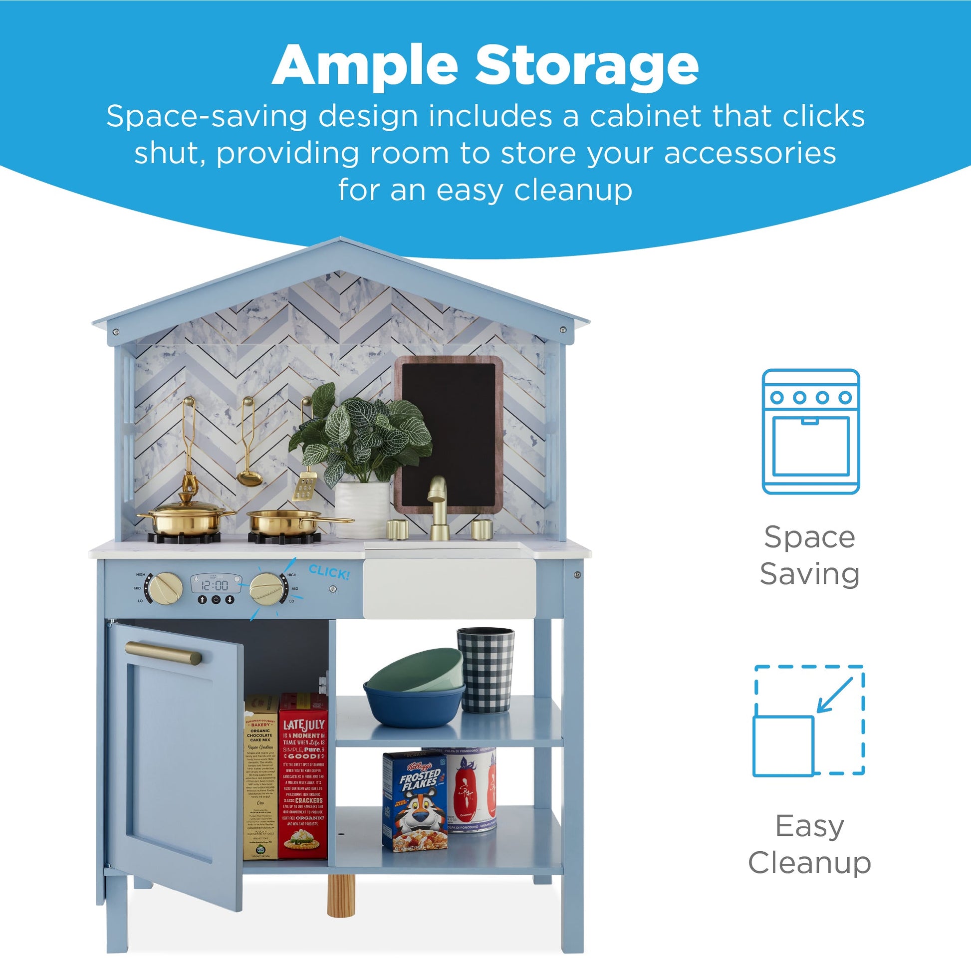 Pretend Play Wooden Farmhouse Kitchen Set w/ Storage, 5 Accessories