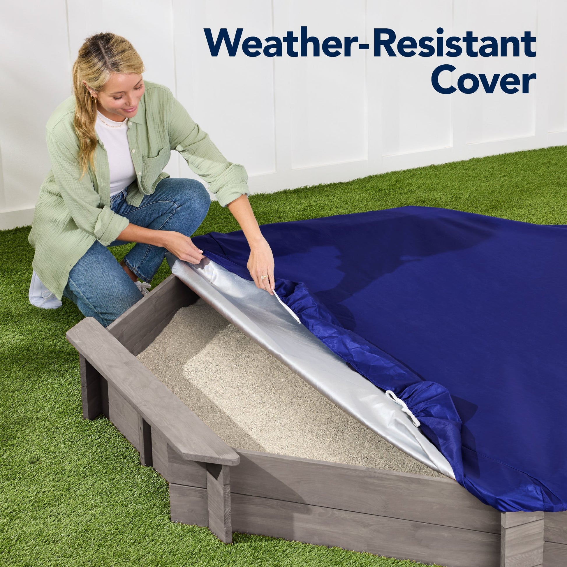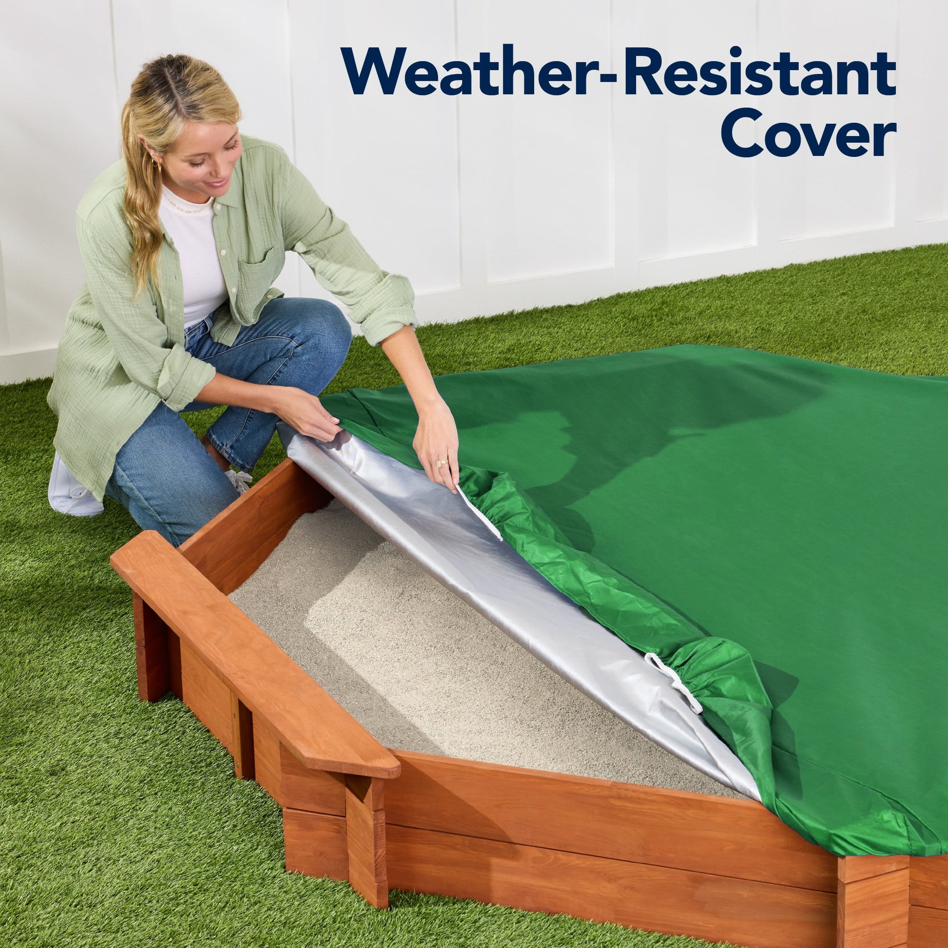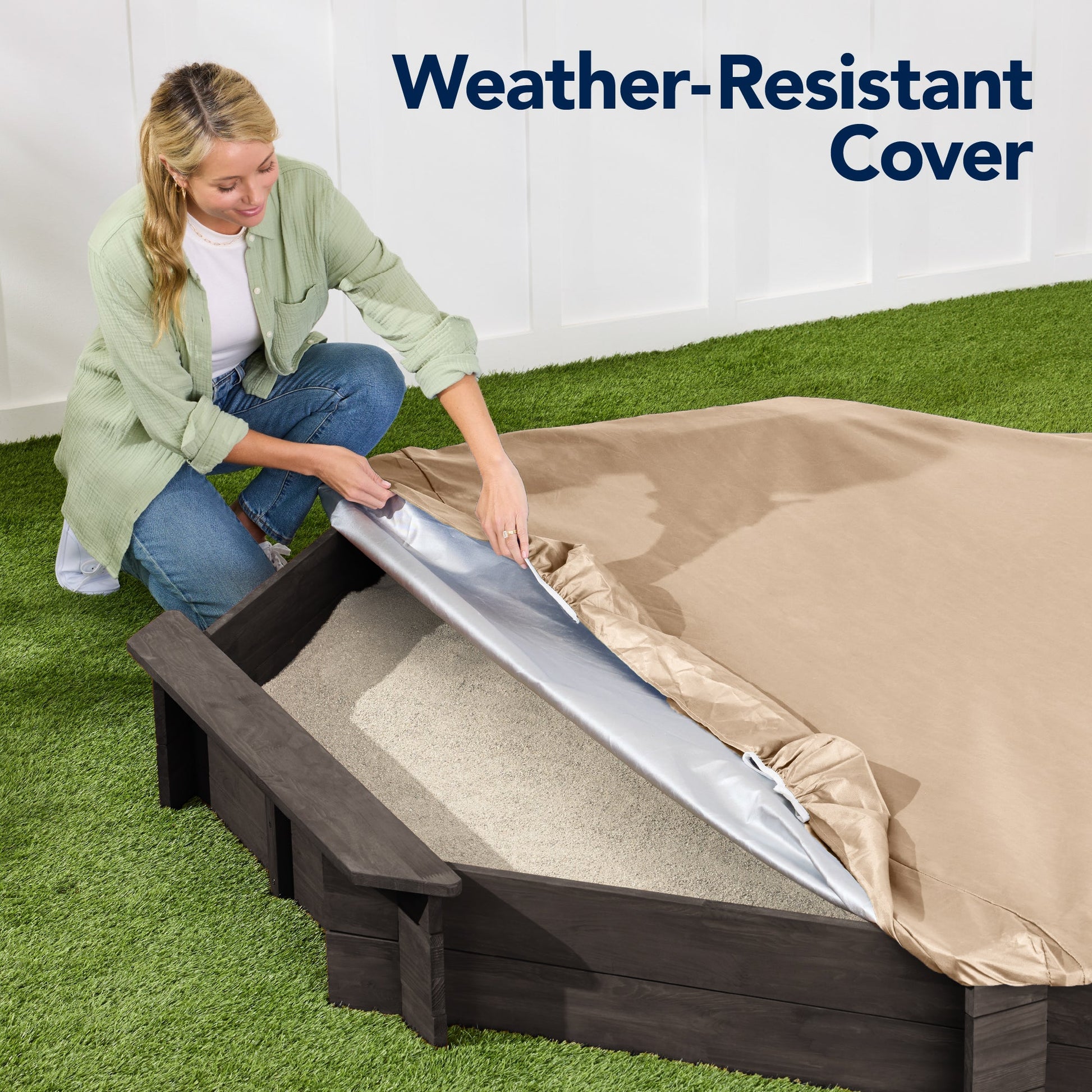 Kid's Wooden Octagonal Sandbox w/ Sand Cover, 4 Reinforced Benches, 8 Seats