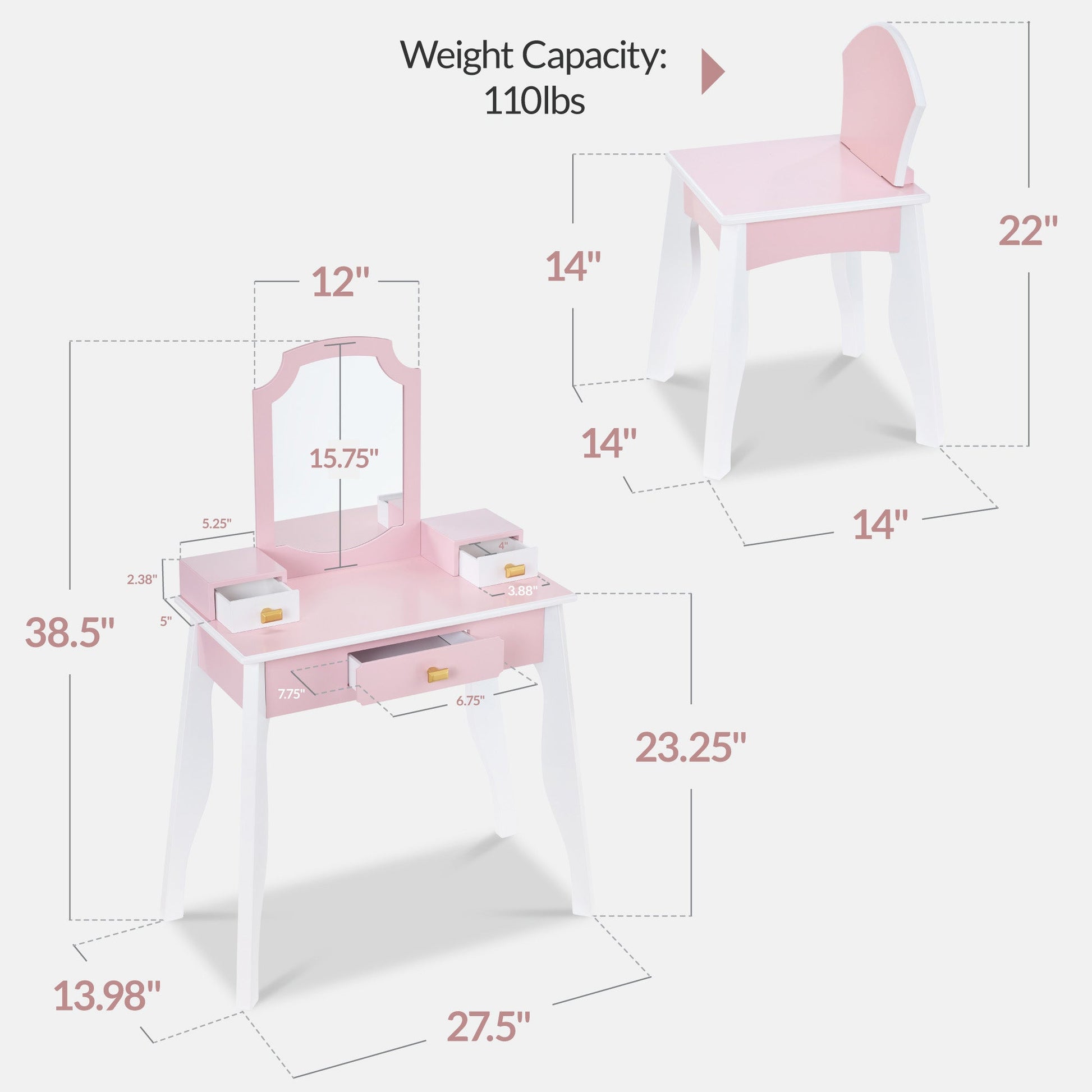 Kids Wooden Pretend Play Vanity and Chair Set w/ Mirror