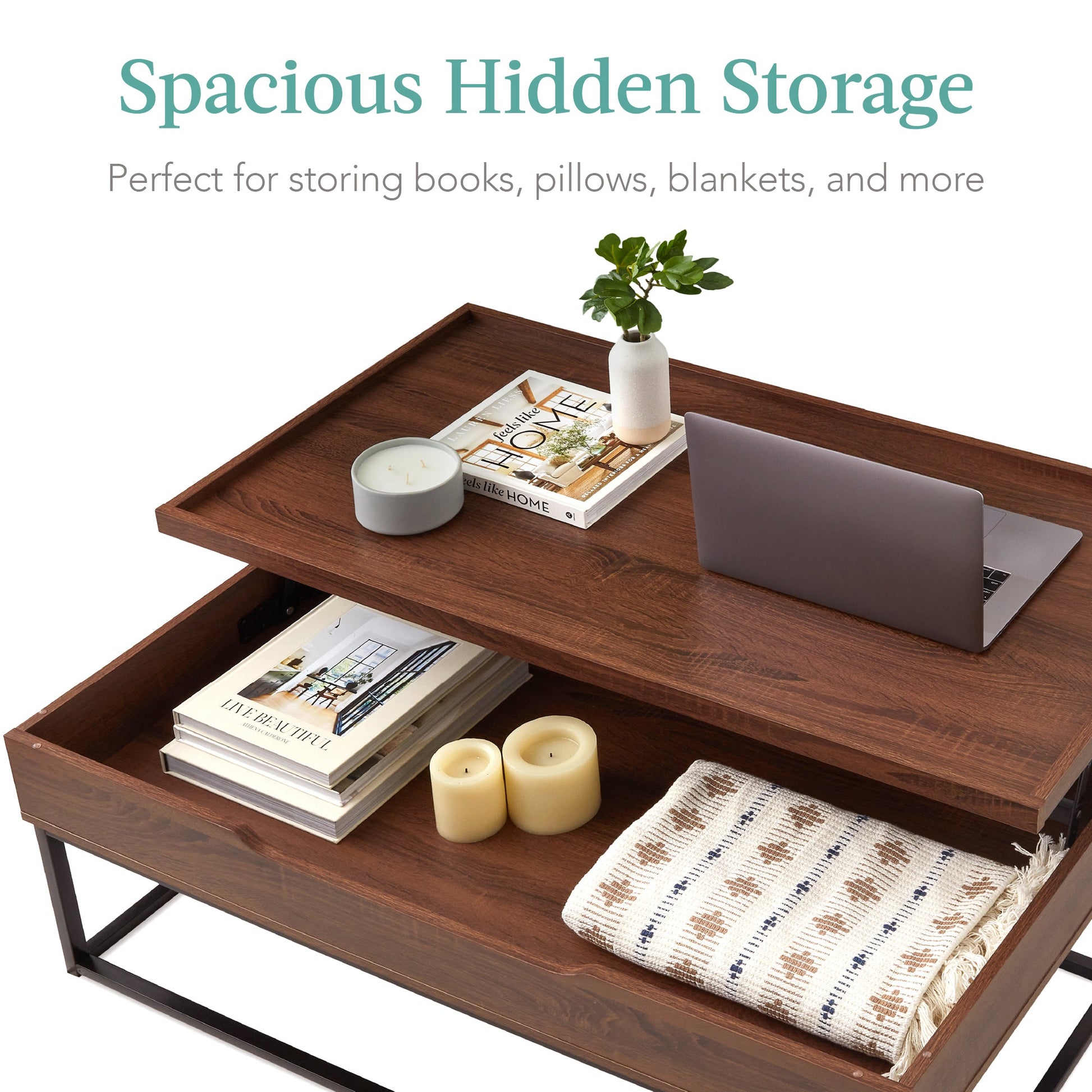 Lift Top Coffee Table w/ Tray Edge Tabletop, Wood-Grain Finish - 44in