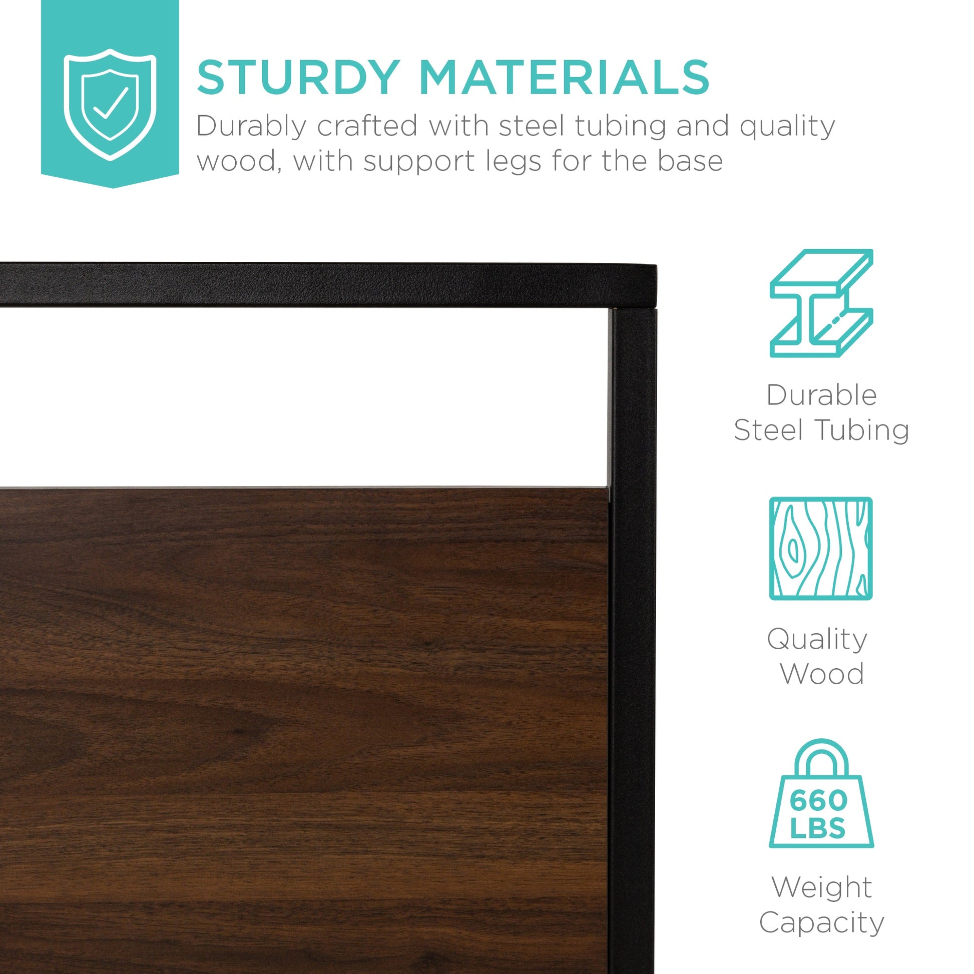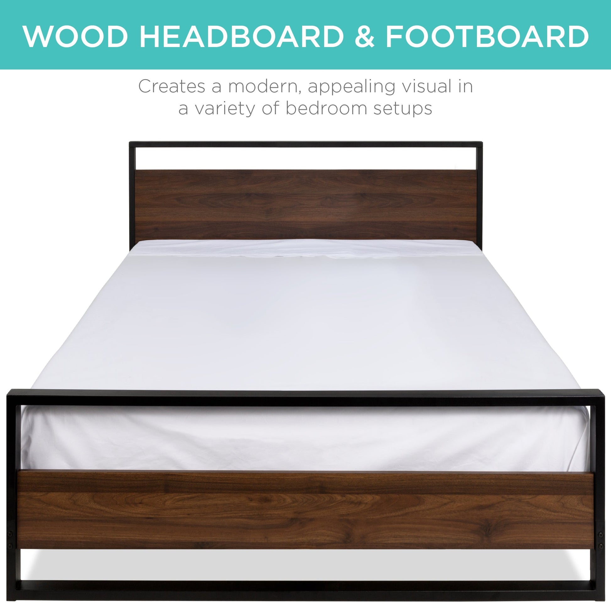 Metal Wood Platform Queen Bed Frame w/ Wooden Slats
