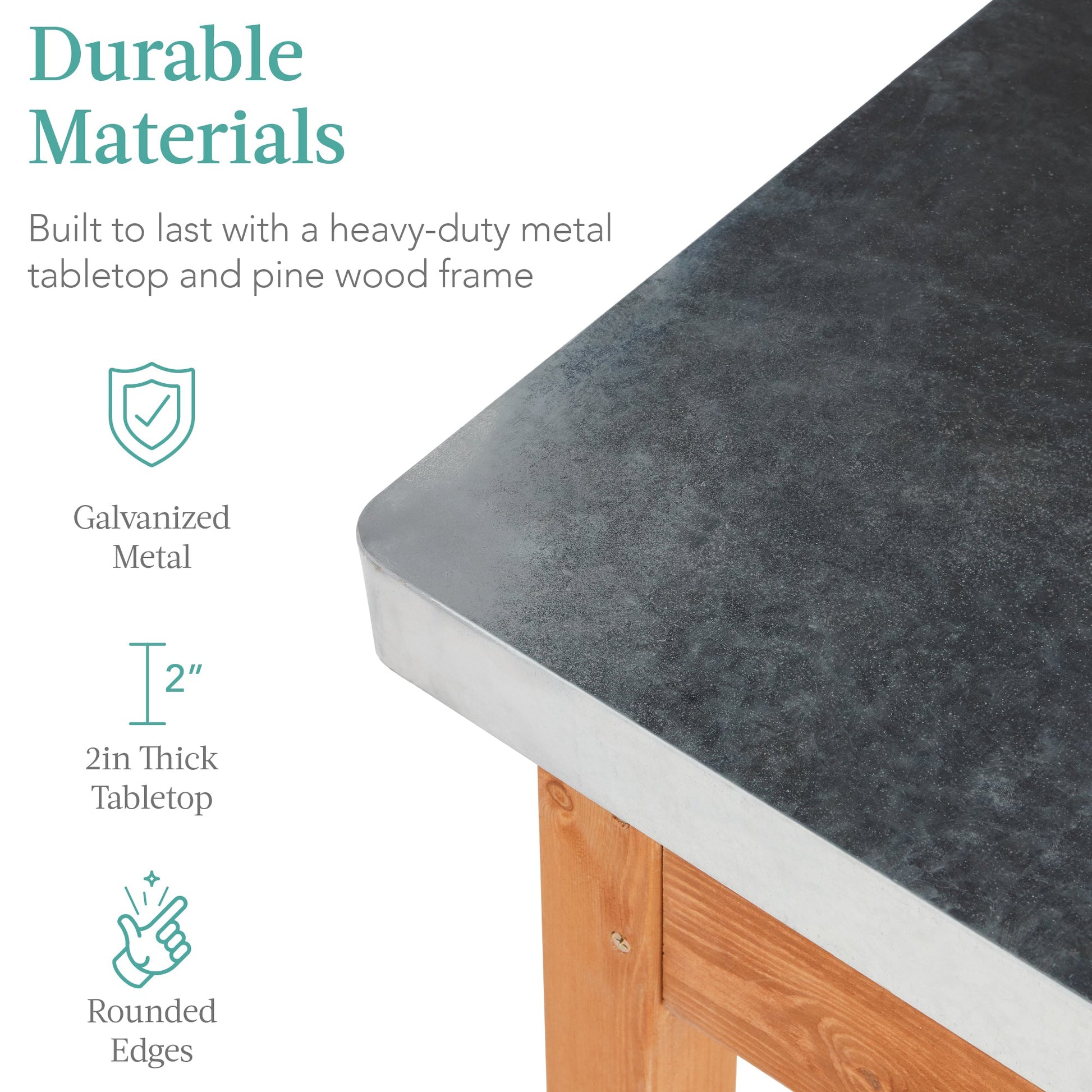Mobile Outdoor Table and Storage Cabinet w/ 4 Wheels, Stainless Steel Top