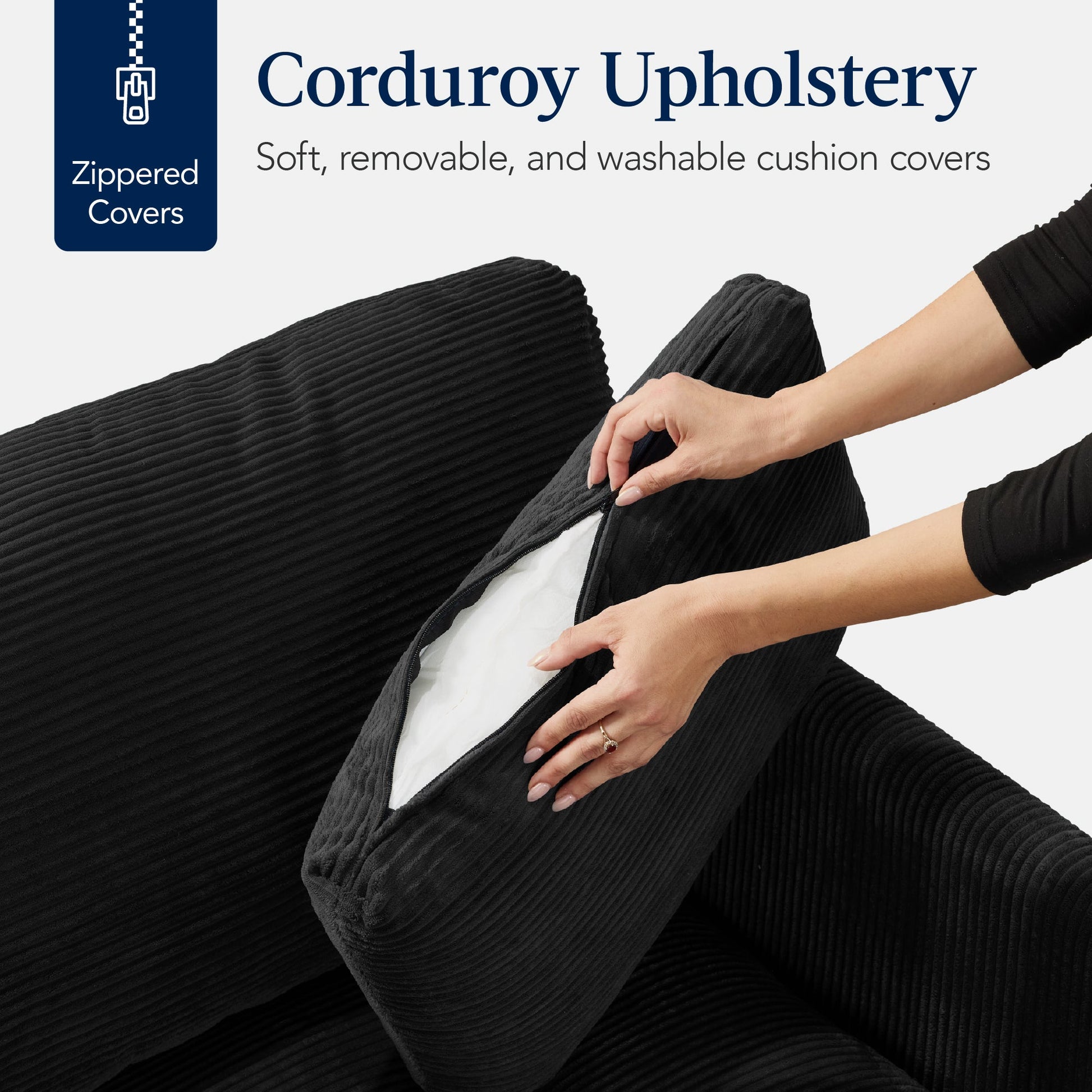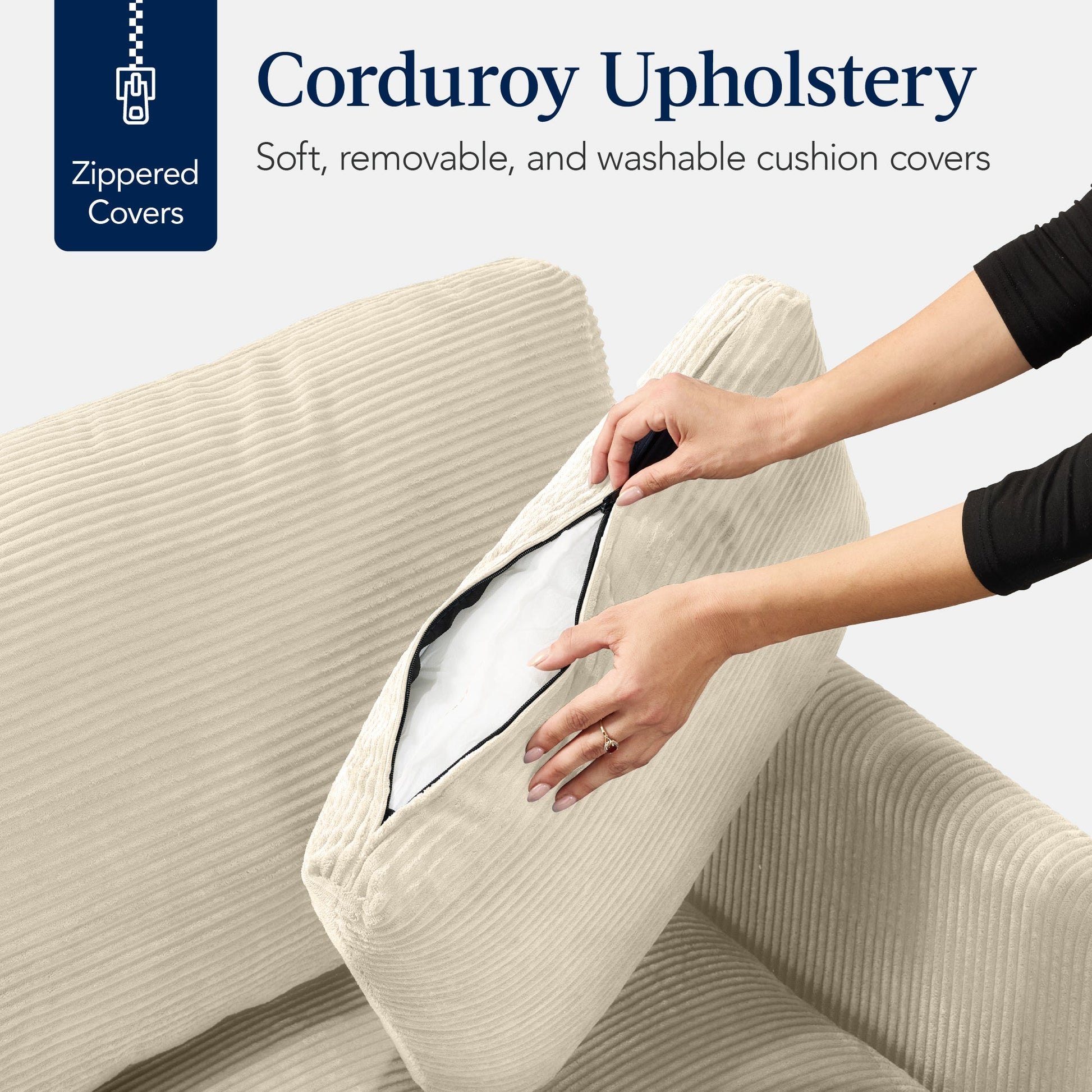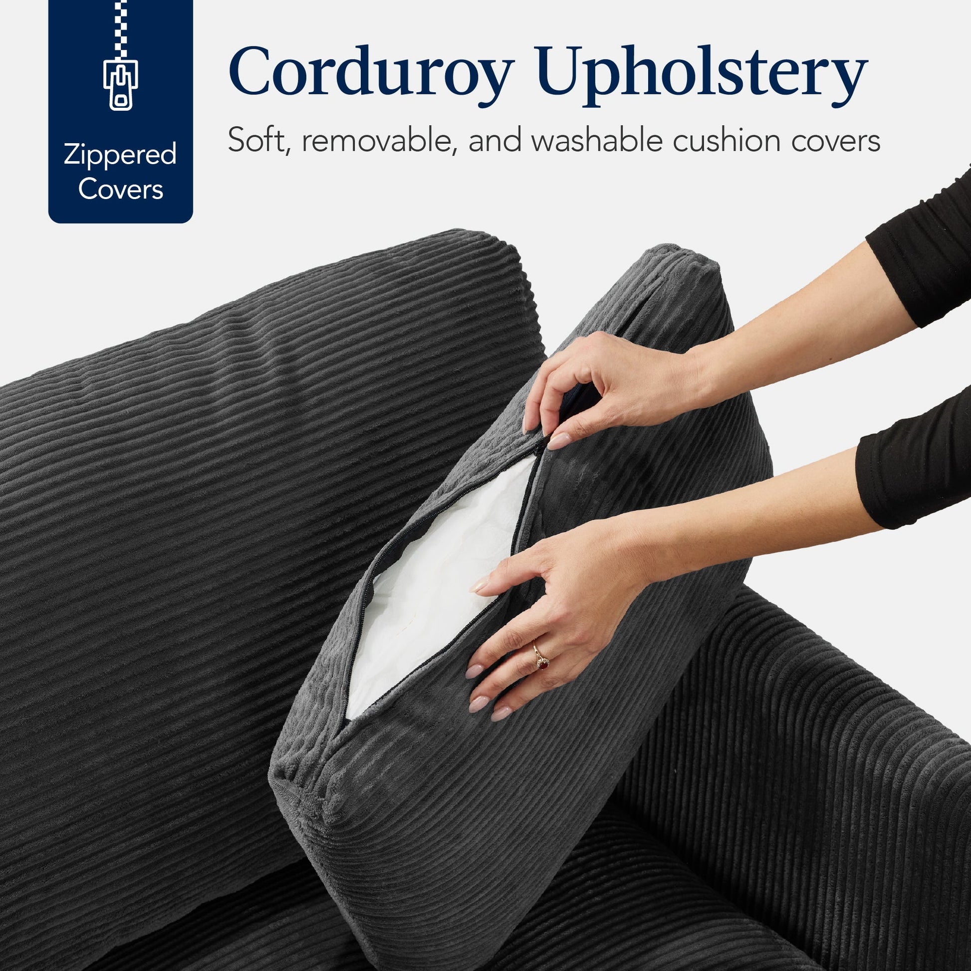 QUALITY CRAFTMANSHIP: Crafted with a solid wood frame and legs, and soft and cozy corduroy material, this couch's elevated materials enhance its quality and texture while providing an inviting feeling and a contemporary style