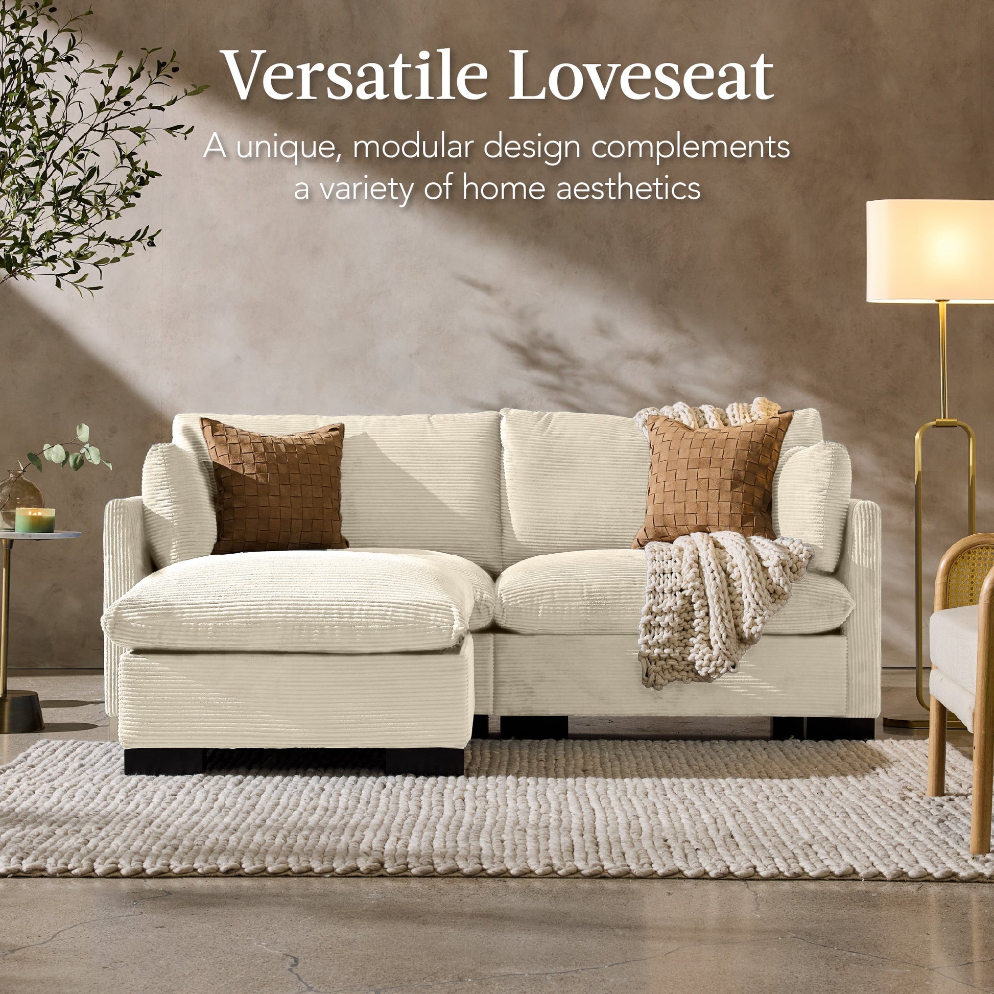 OVERSIZED LOVESEAT SOFA WITH OTTOMAN: This 82-inch modular ultrasoft corduroy sofa comfortably seats up to three people with a 600-pound weight capacity-featuring a solid wood frame and matching legs for added durability