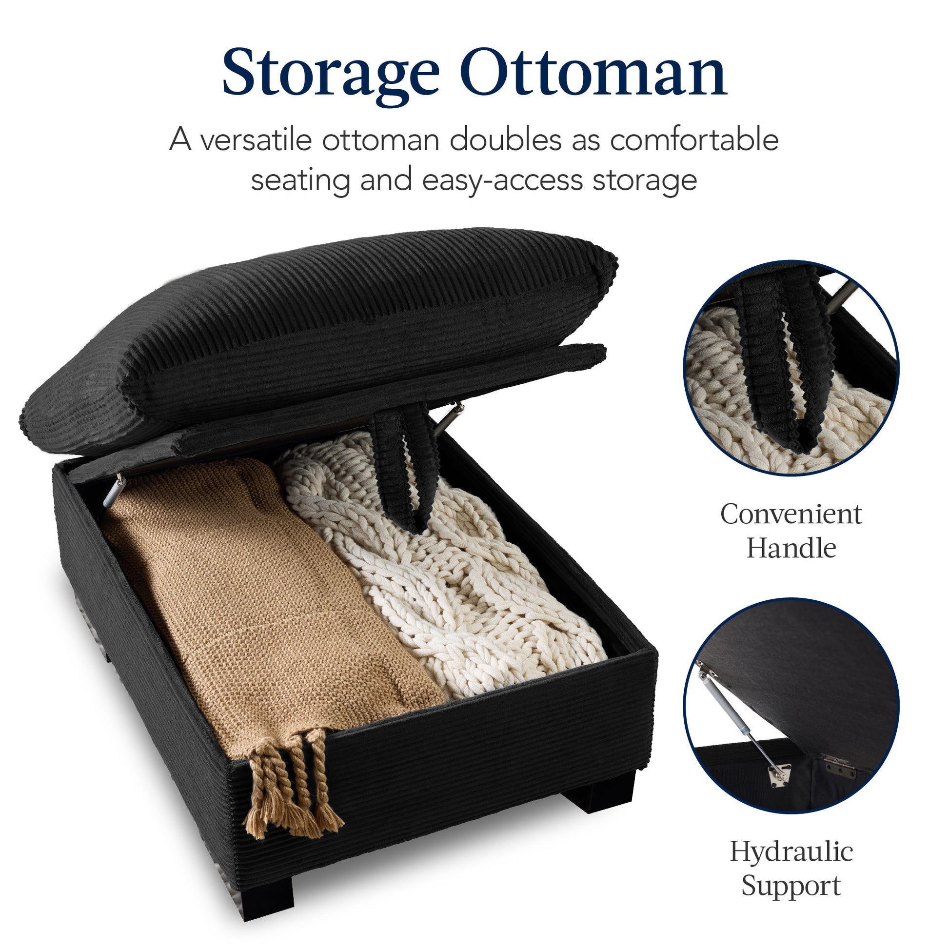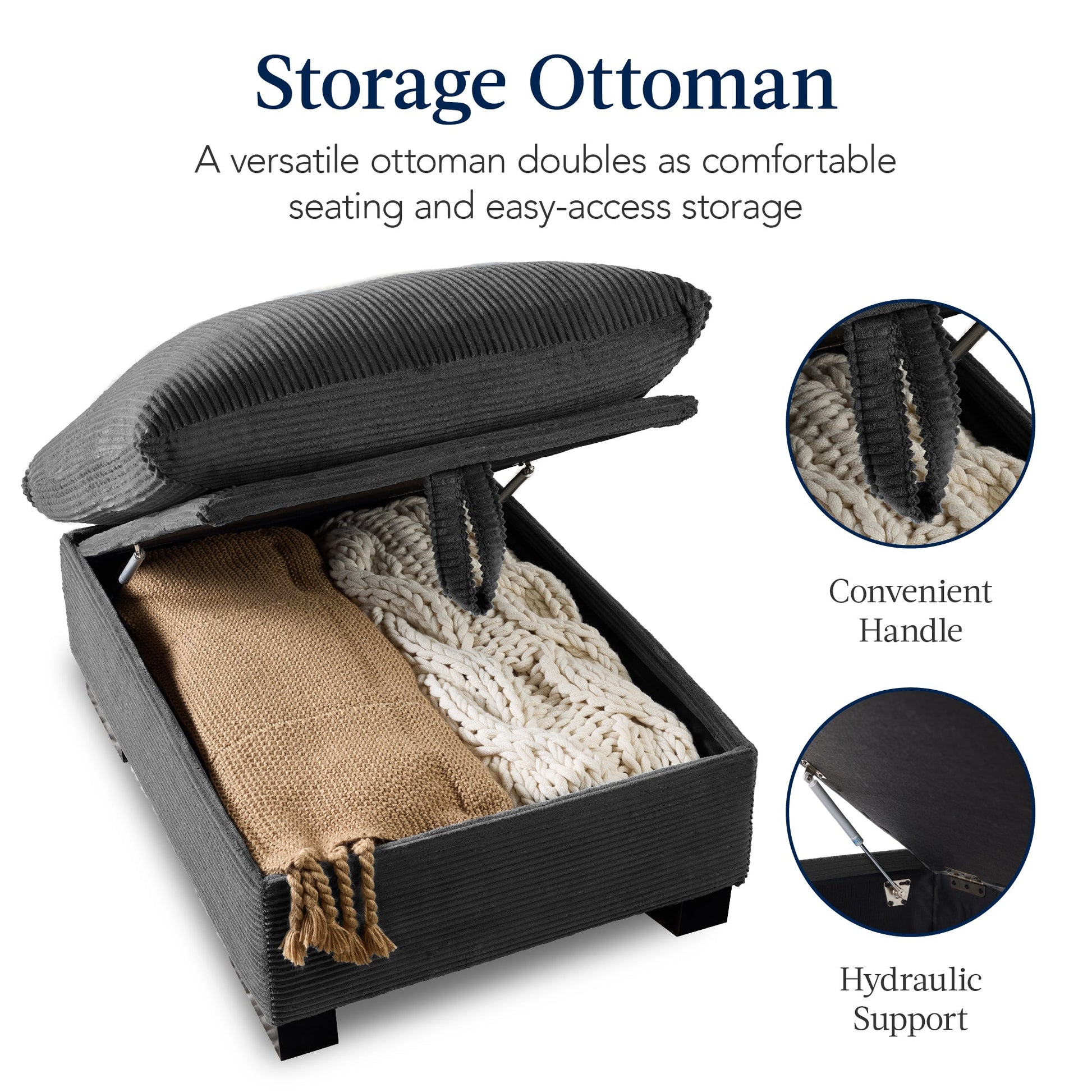 OTTOMAN WITH STORAGE: The matching comfy pillowtop large ottoman has a 300-pound weight capacity, perfect for lounging and relaxation, and provides convenient storage for blankets, magazines, and other essentials to keep your living room tidy