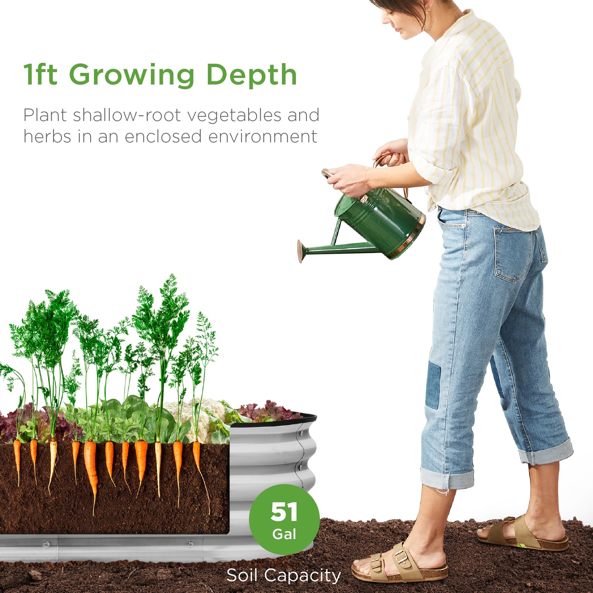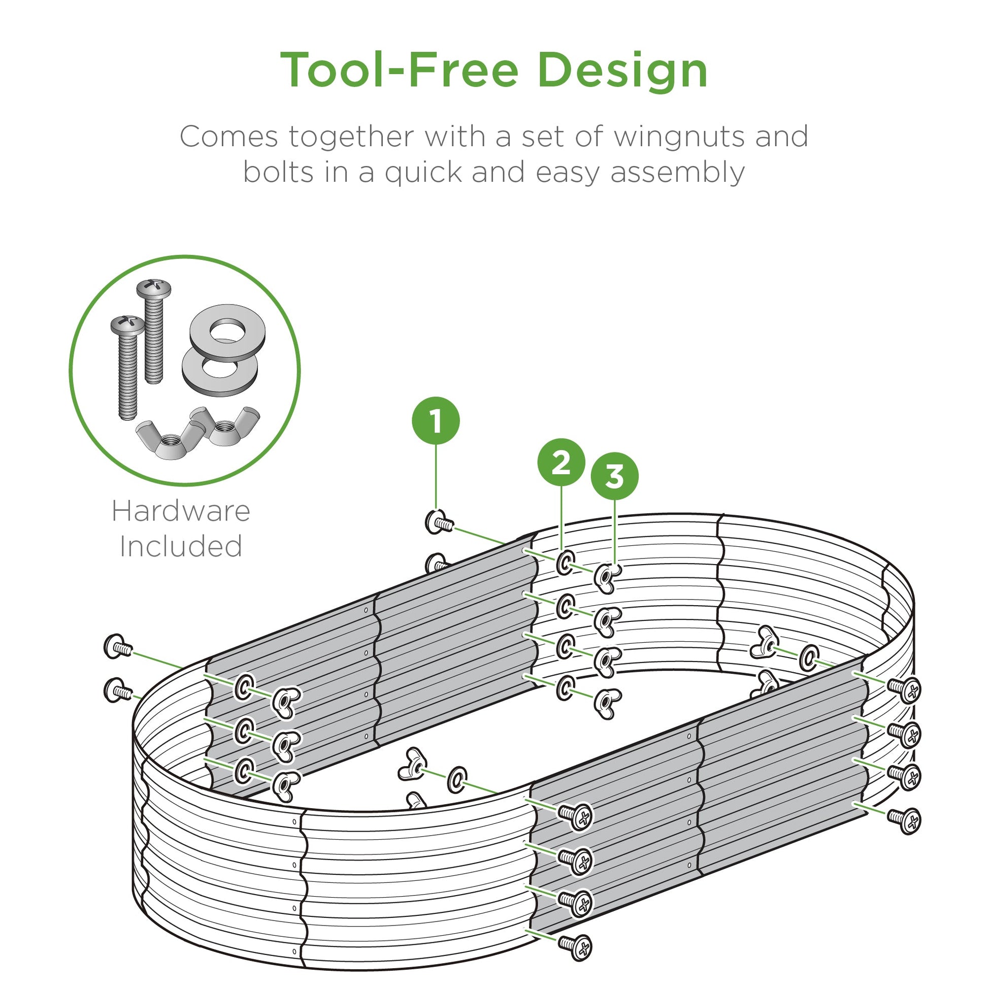 Outdoor Raised Metal Oval Garden Bed, Planter Box - 4x2x1ft