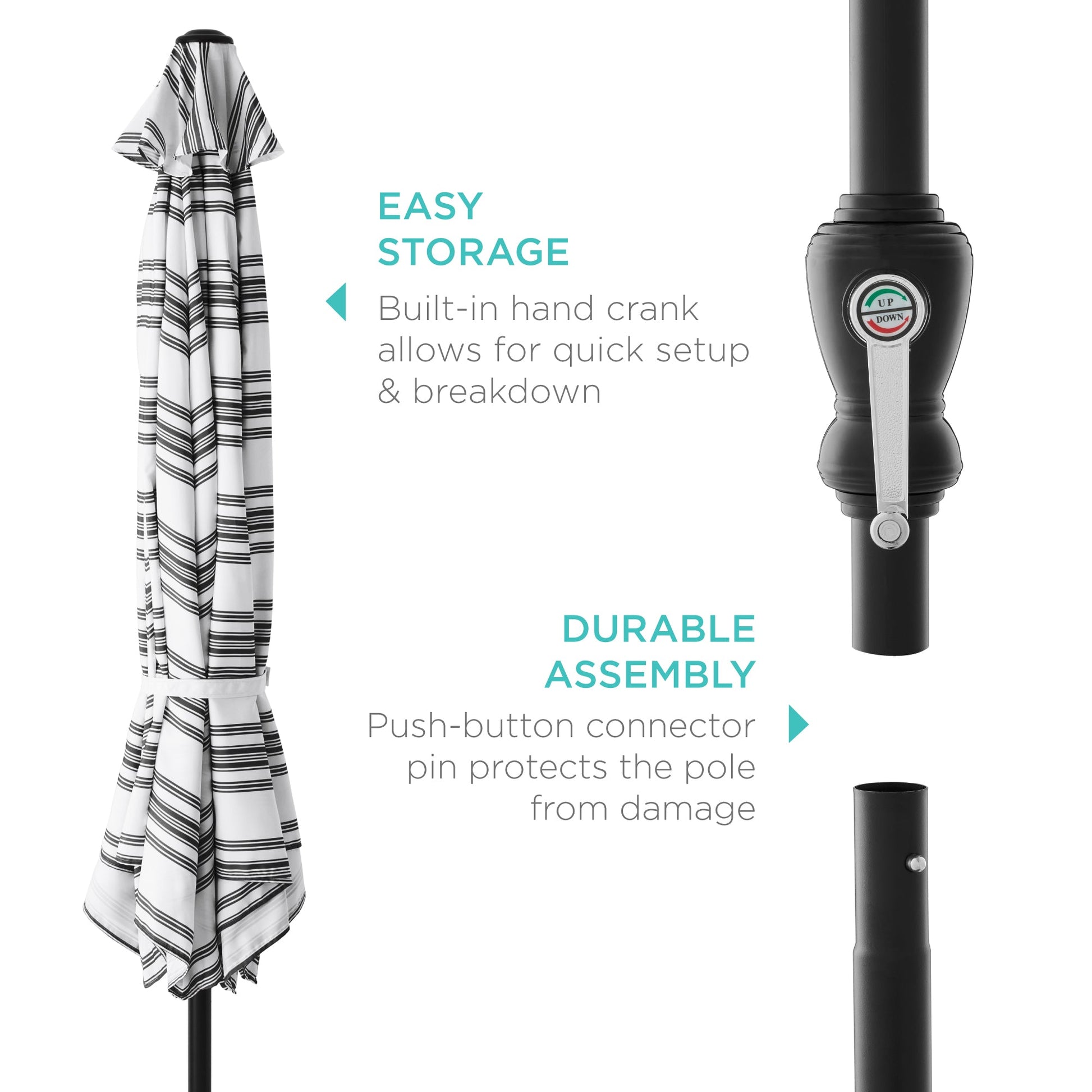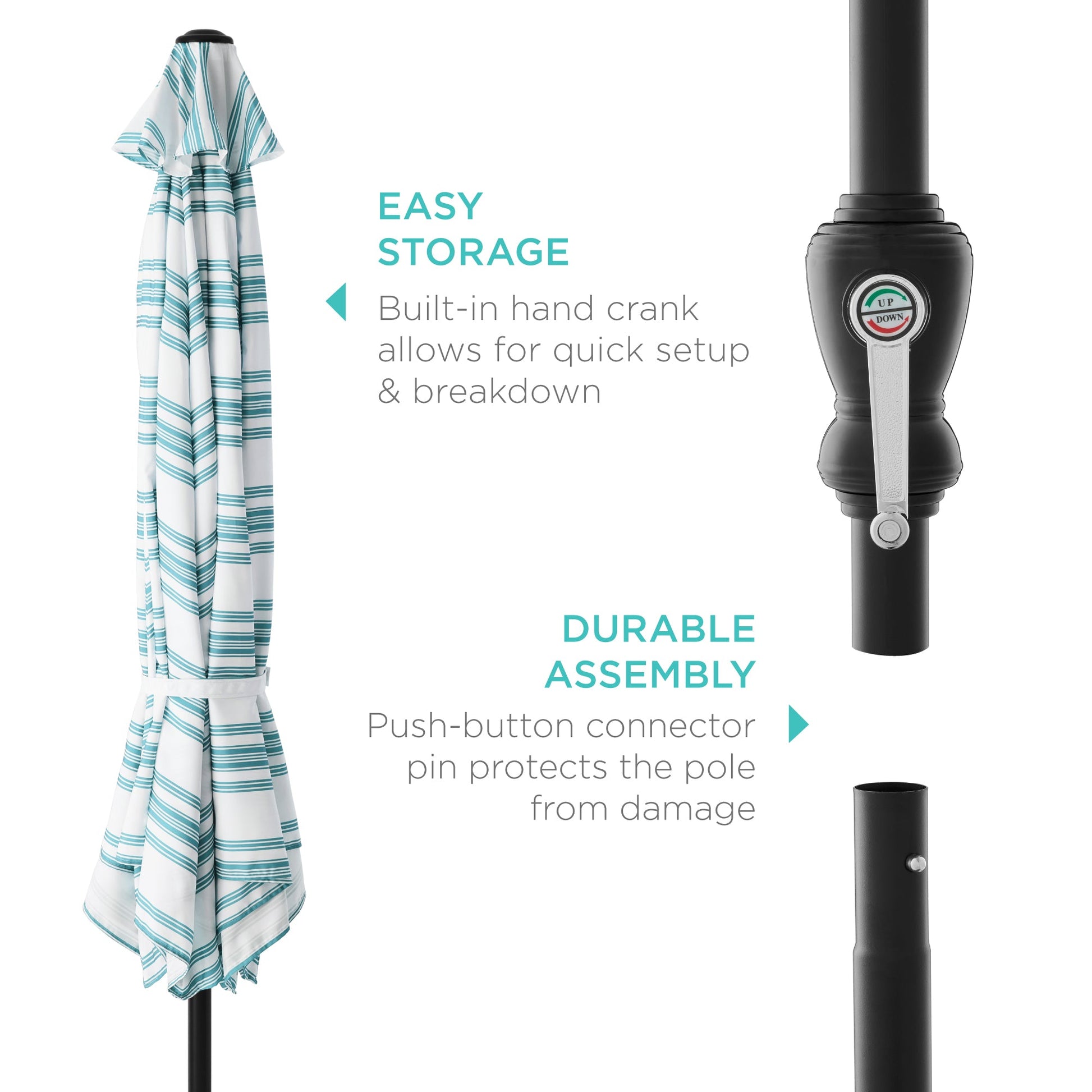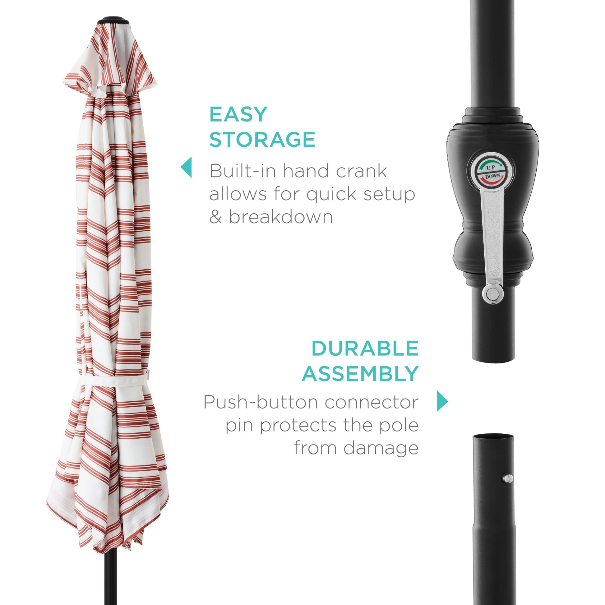 Outdoor Steel Striped Market Patio Umbrella w/ Tilt, Crank Lift - 10ft