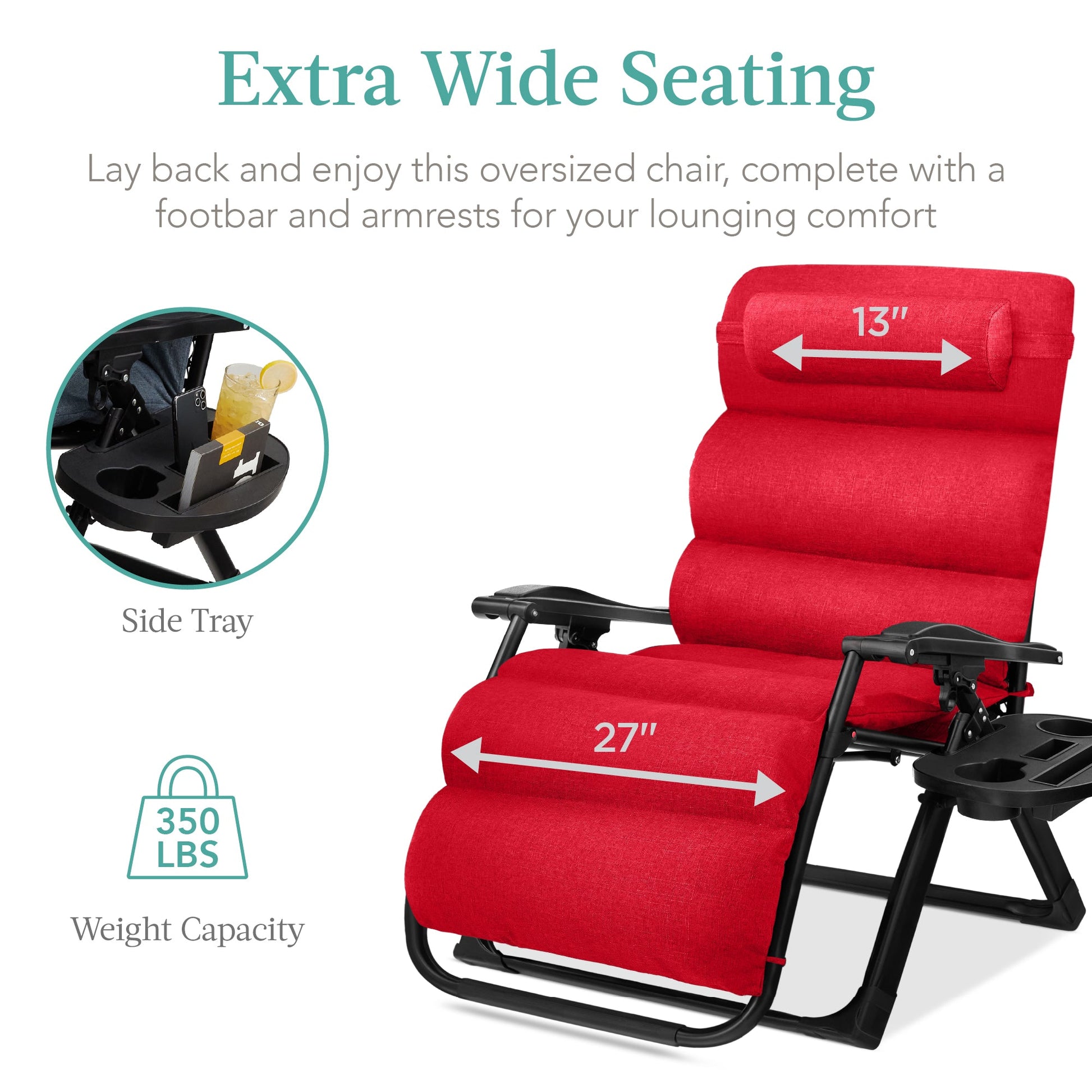 Oversized Zero Gravity Chair, Folding Outdoor Recliner w/ Removable Cushion