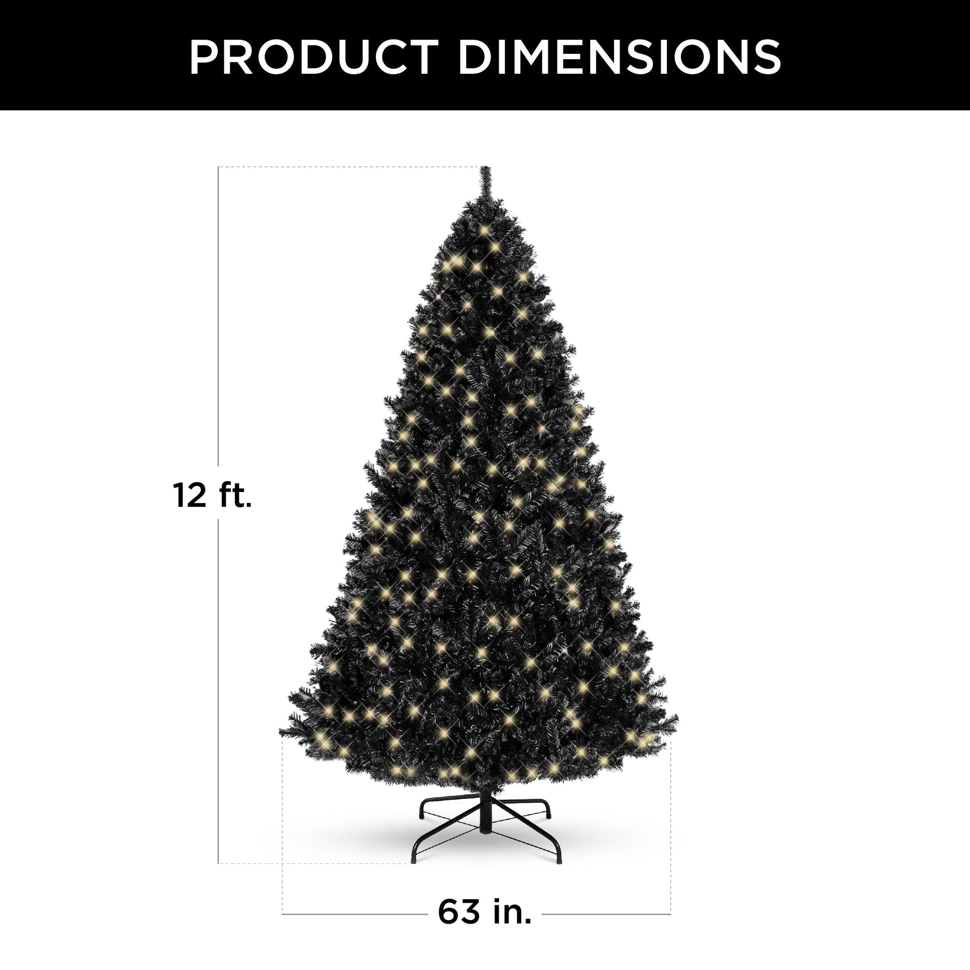 Pre-Lit Artificial Black Christmas Tree w/ Incandescent Lights, Metal Stand