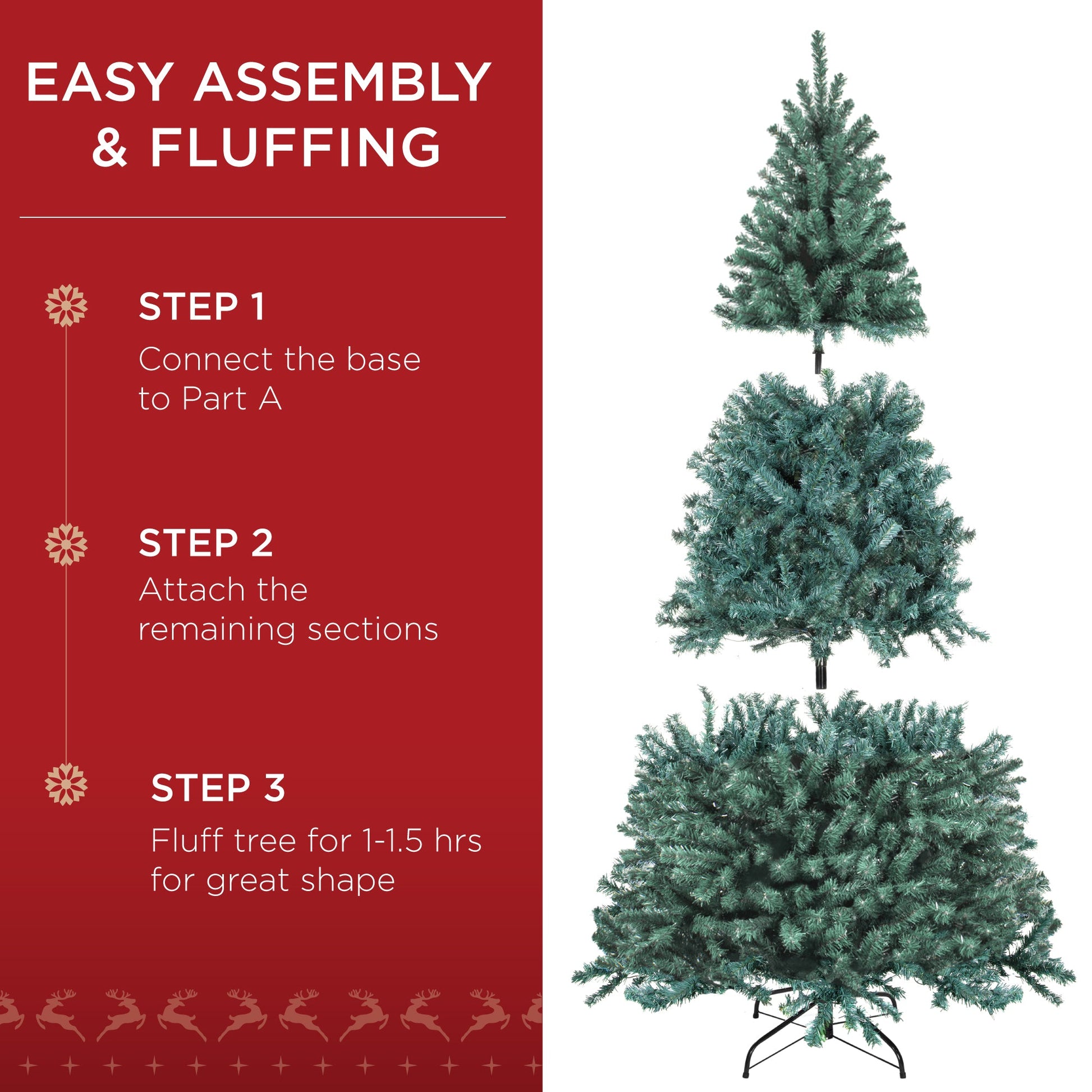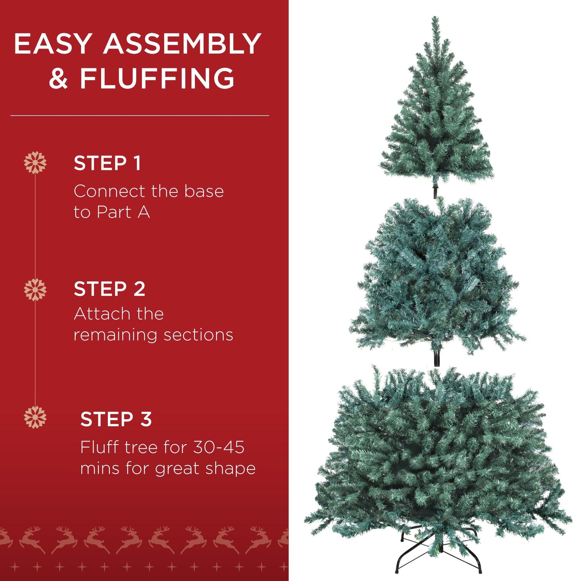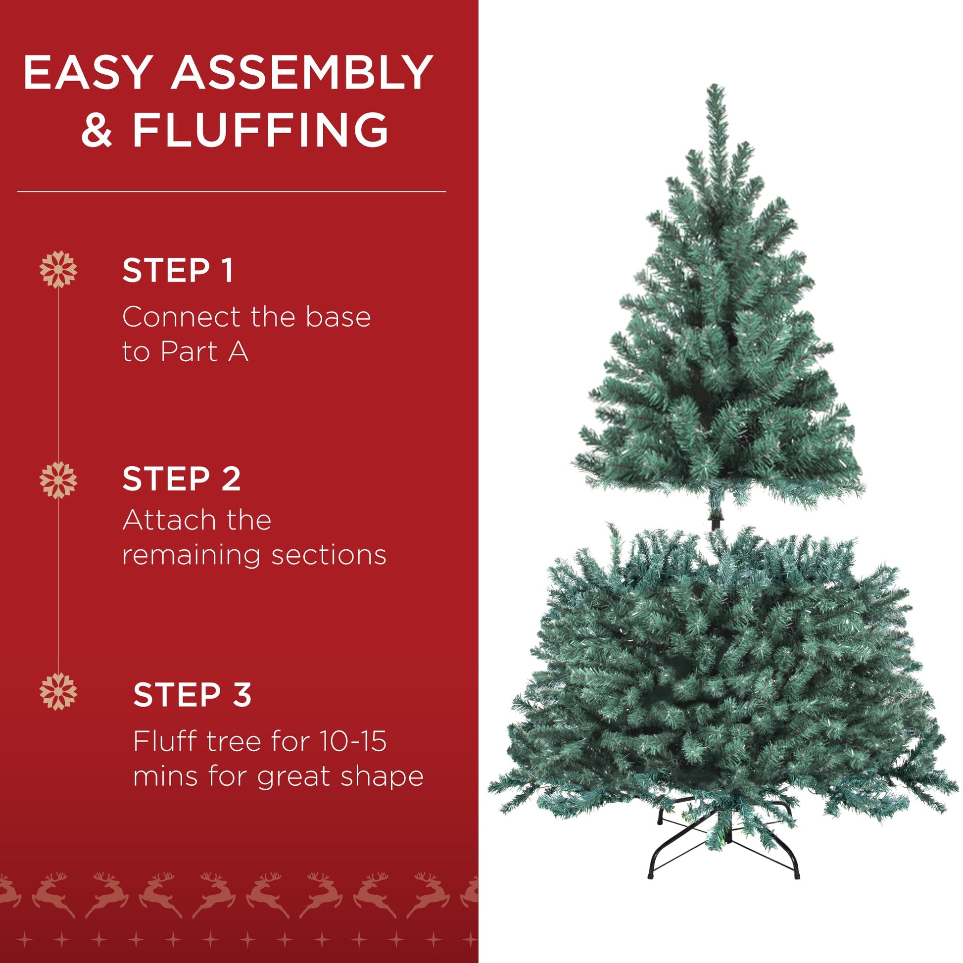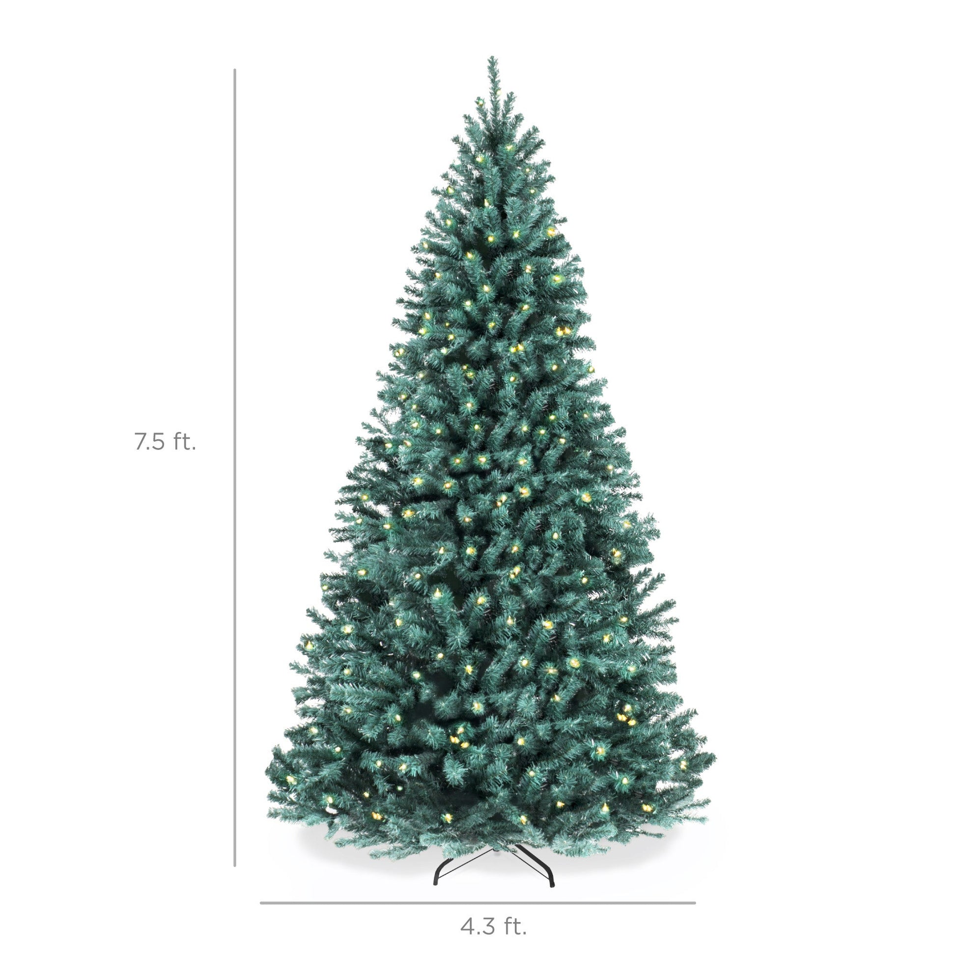 Pre-Lit Blue Spruce Christmas Tree w/ Foldable Base, Incandescent Lights