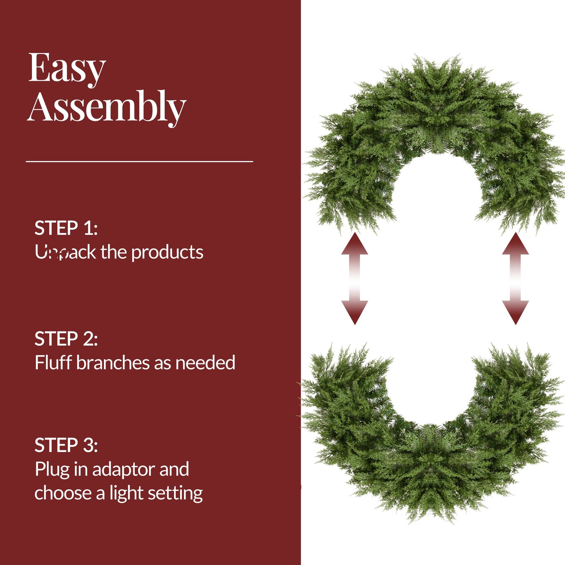 Pre-Lit Cedar Cypress Christmas Realistic Wreath w/ Twinkling LEDs