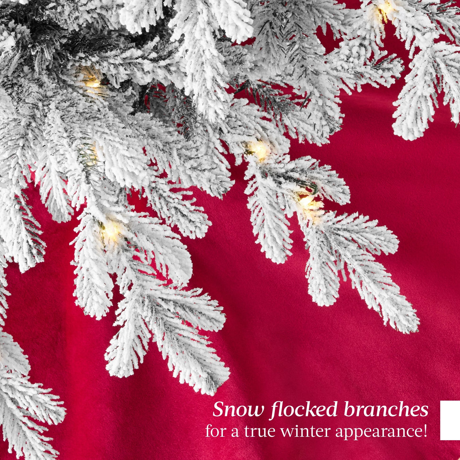 Pre-Lit Flocked Artificial Aspen Noble Fir Christmas Tree w/ Metal Stand