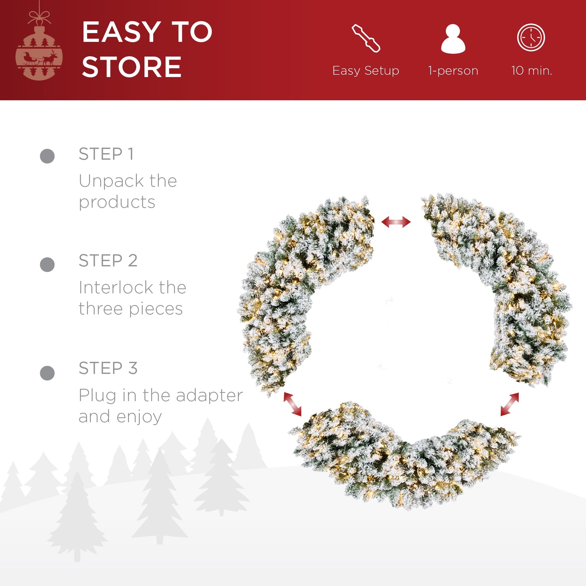 Pre-Lit Flocked Artificial Fir Christmas Wreath w/ 2-in-1 LED Lights