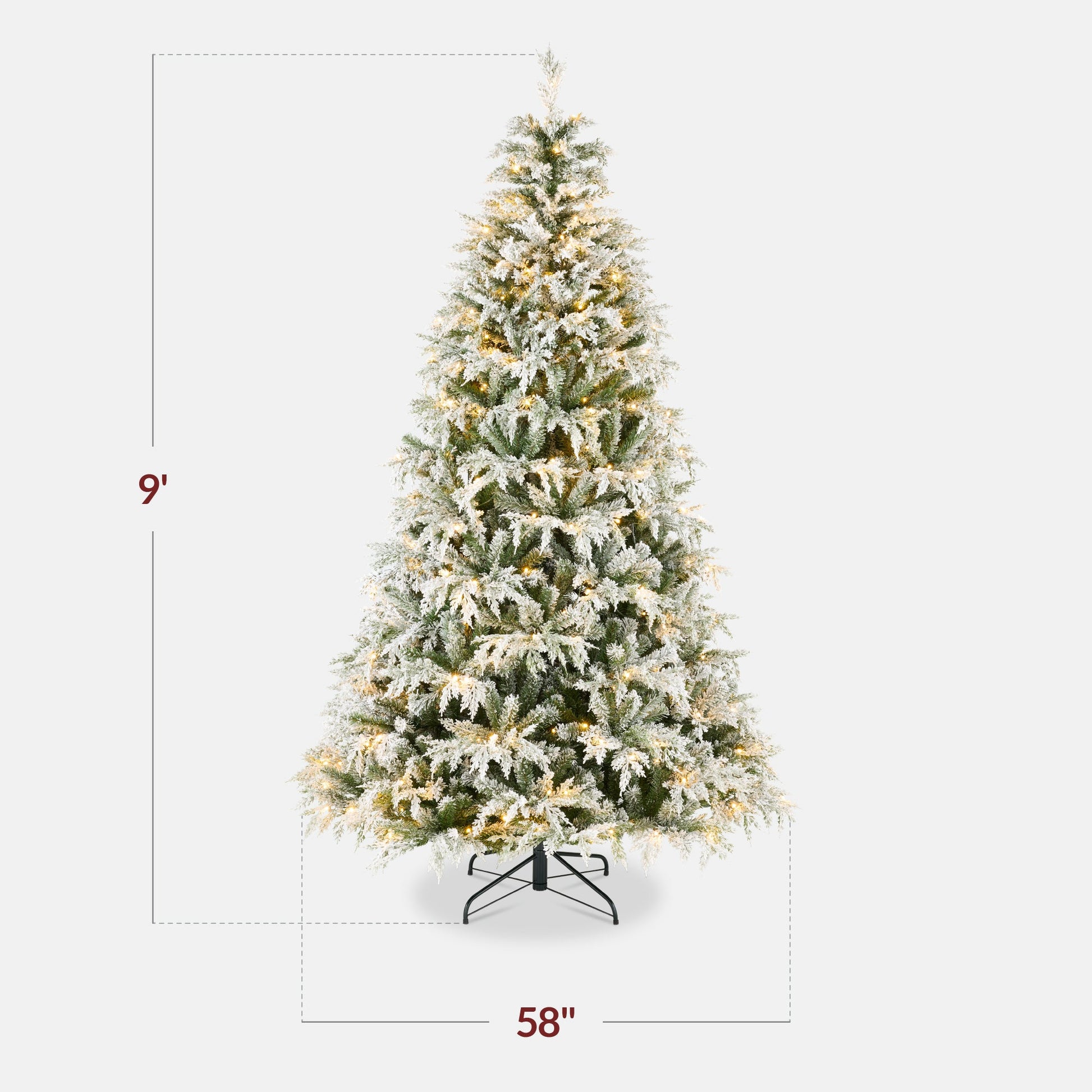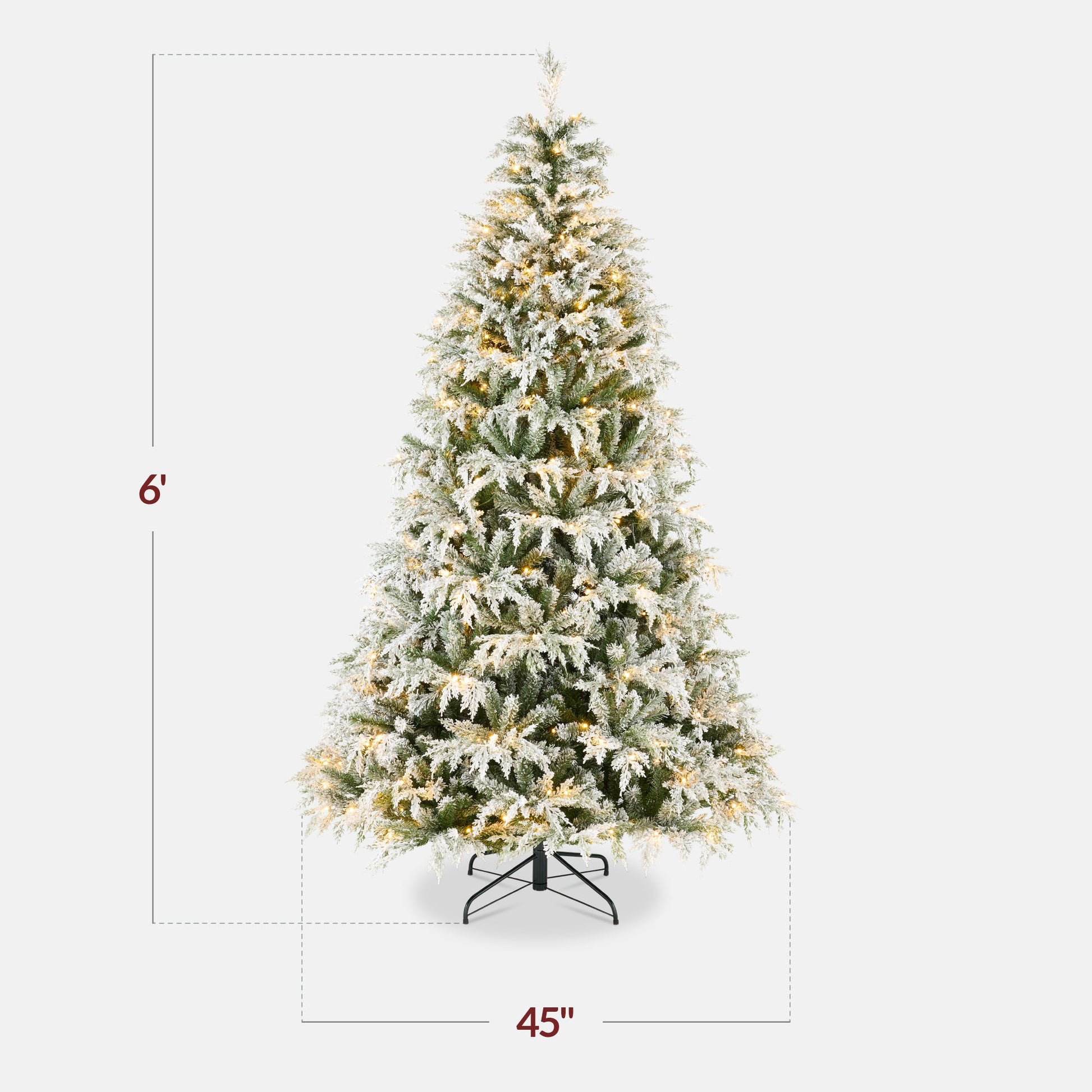 Pre-Lit Flocked Cedar Cypress Christmas Tree w/ Twinkling Lights
