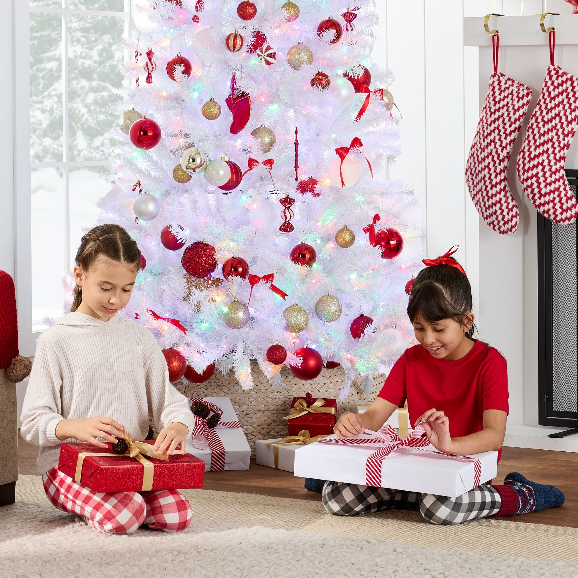 Pre-Lit Hinged Artificial White Pine Christmas Tree w/ Multicolor Lights