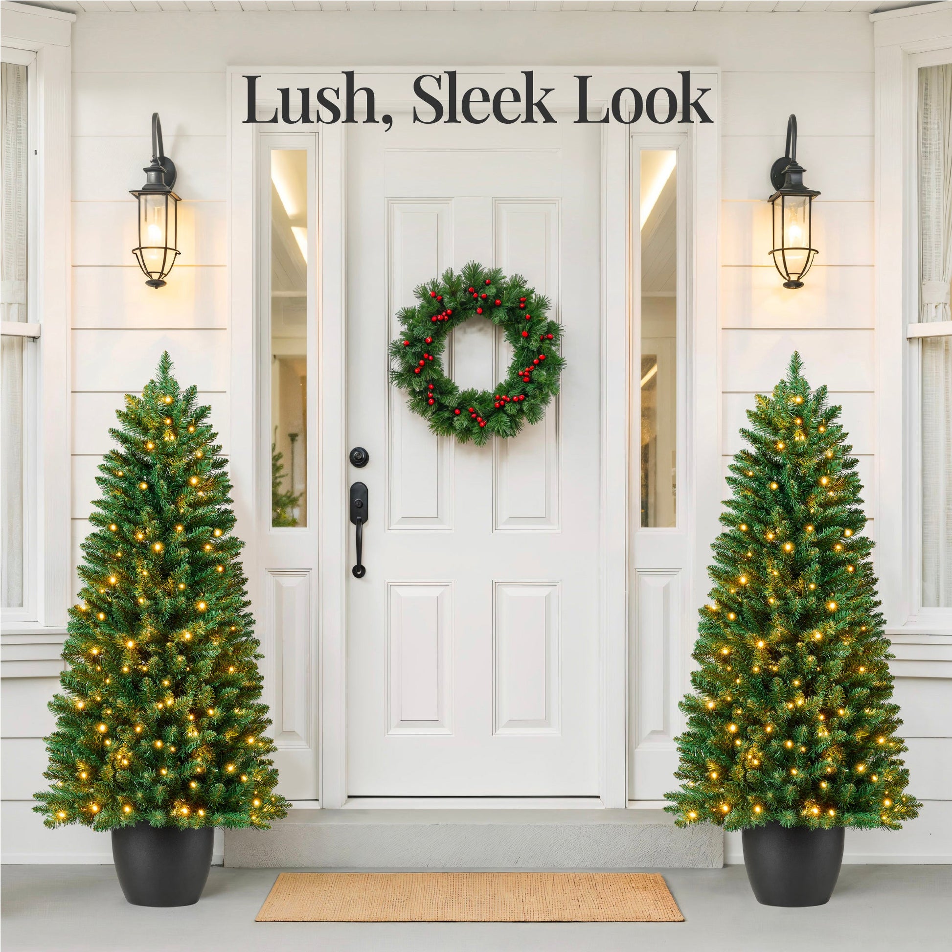 Pre-Lit Potted Christmas Tree w/ Twinkling White LEDs