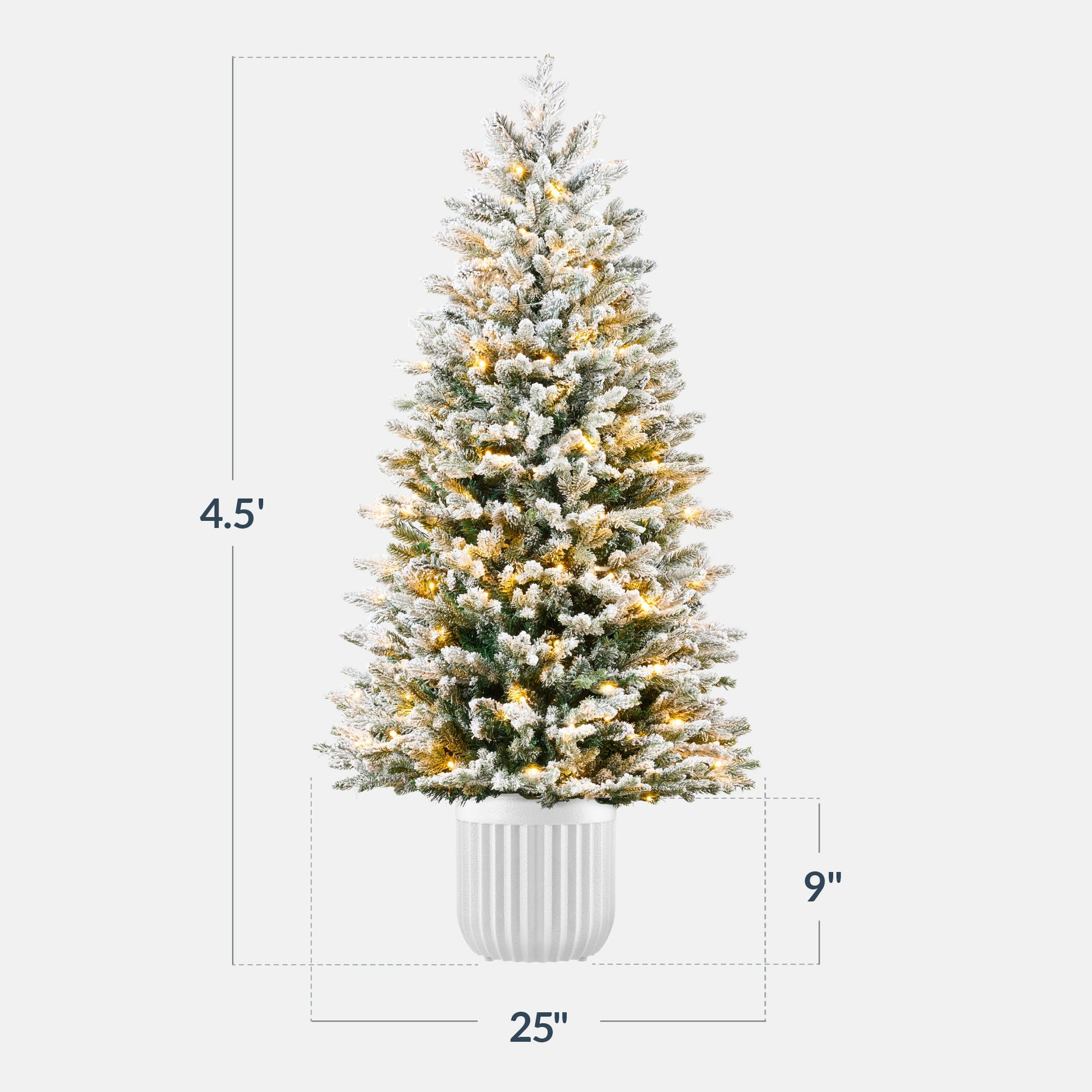 Pre-Lit Potted Flocked Christmas Tree w/Twinkling White & Multi LEDs