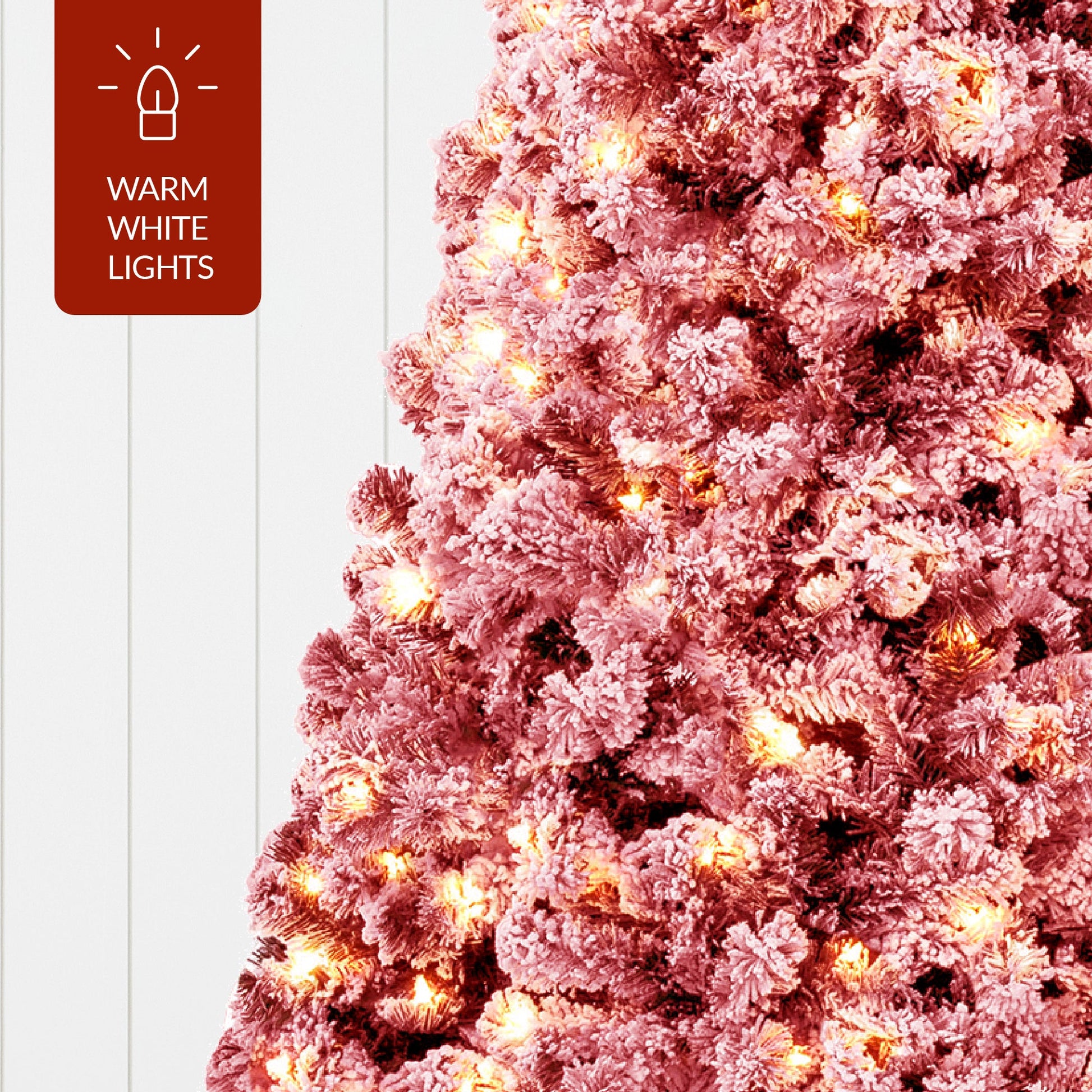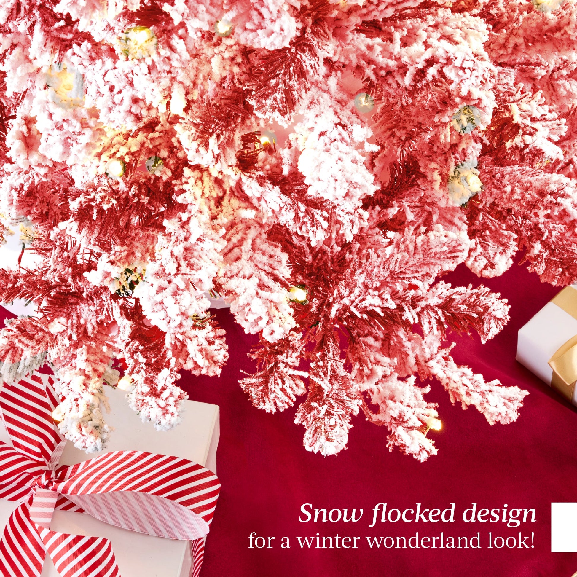 Pre-Lit Red Flocked Artificial Pine Christmas Tree w/ White Lights