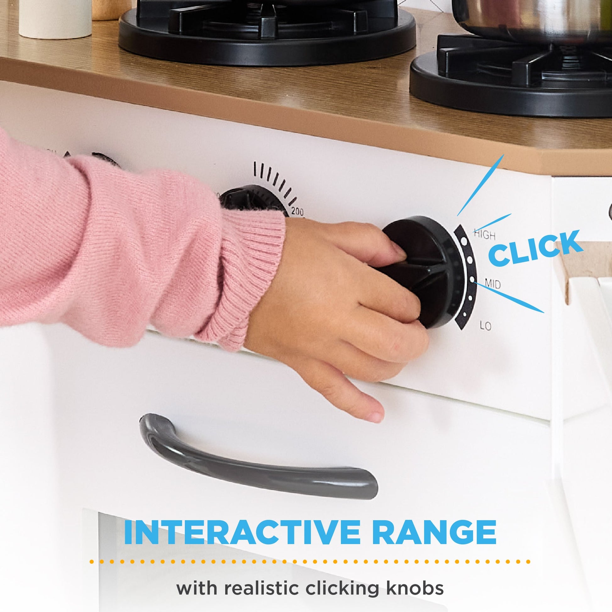 Pretend Play Corner Kitchen Wooden Toy Set for Kids w/ Lights, Sounds